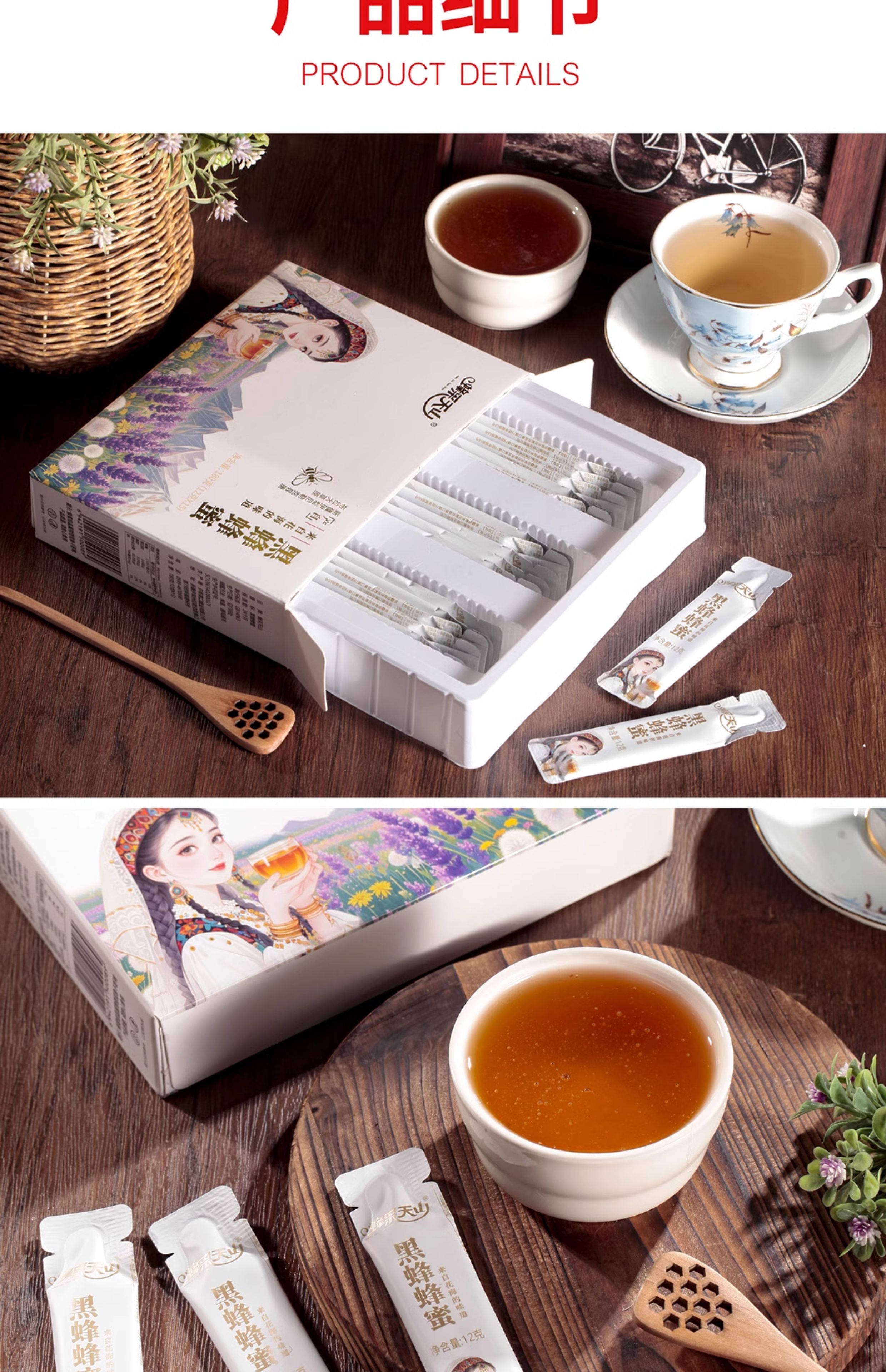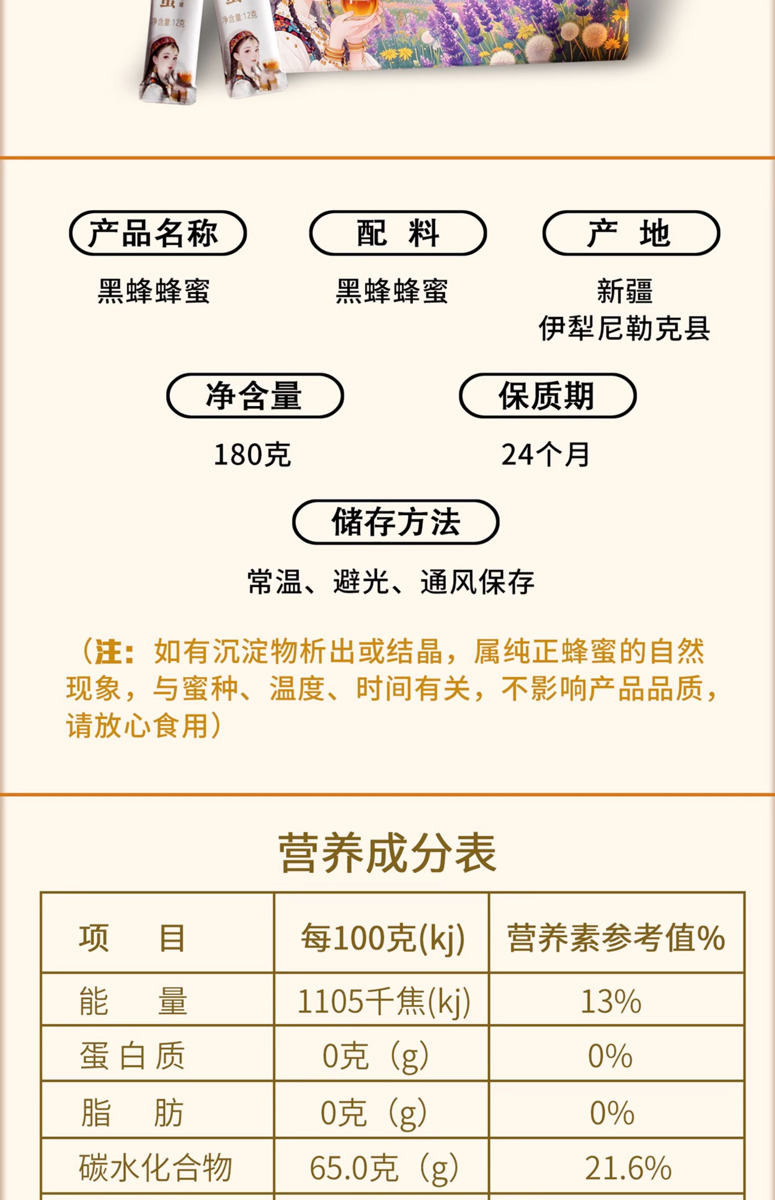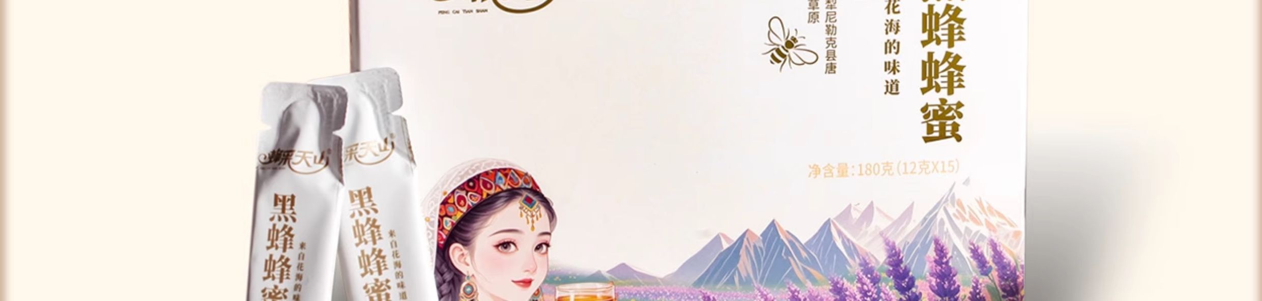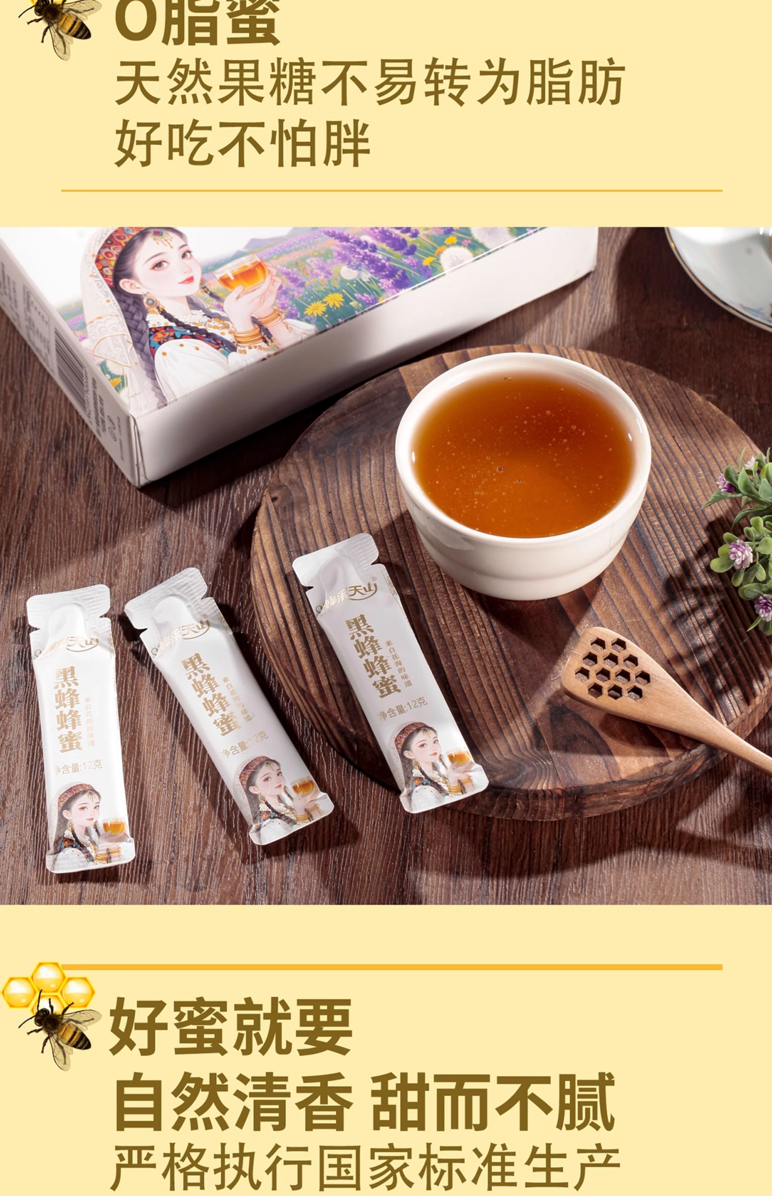 蜂采天山·新疆伊犁条装黑蜂蜂蜜礼盒(花海)12g*15条 富含天然活性酶
