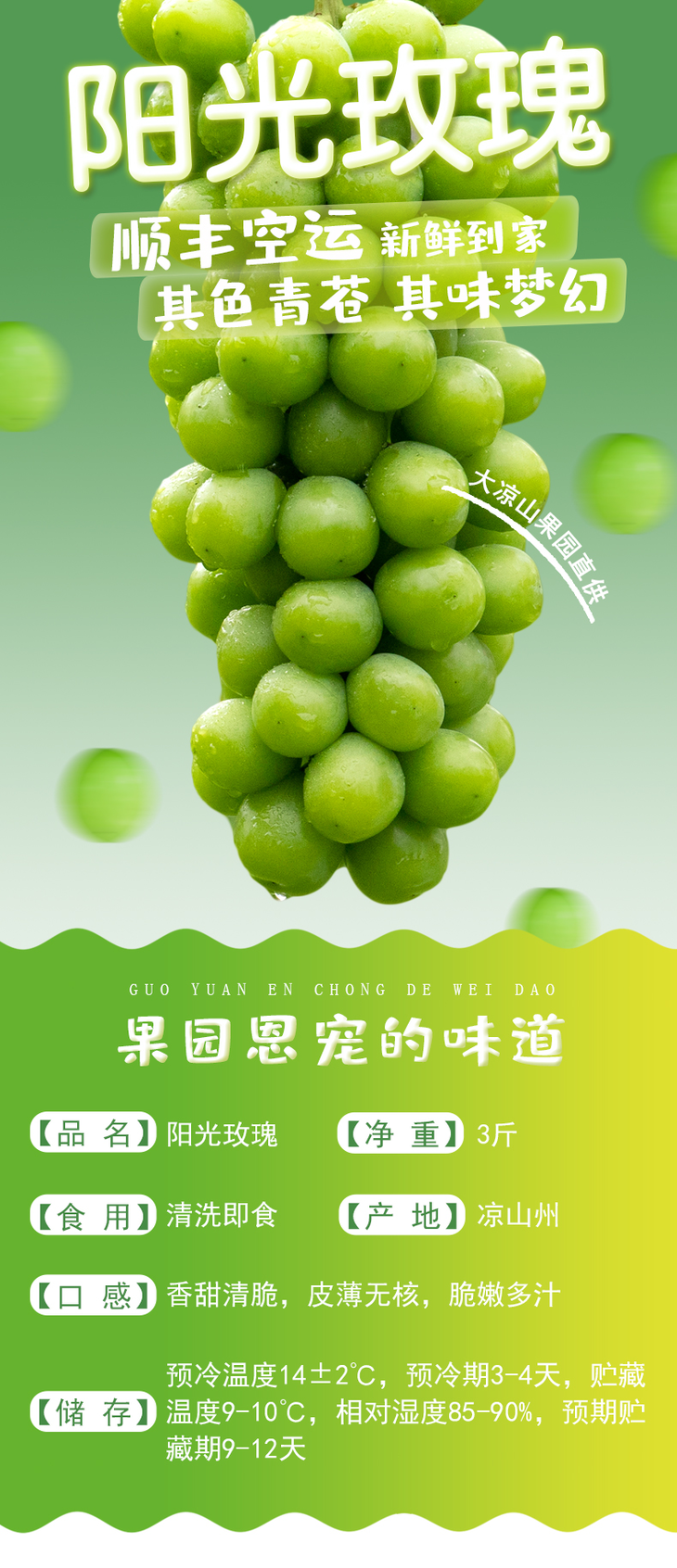 【品质精选】精品阳光玫瑰香印晴王3斤装大凉山果园