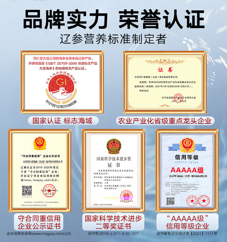 【正宗同仁堂品牌】北京同仁堂 即食海参500克(12-14只)/袋×3袋 固形物100%开袋即食 懒人优选SY
