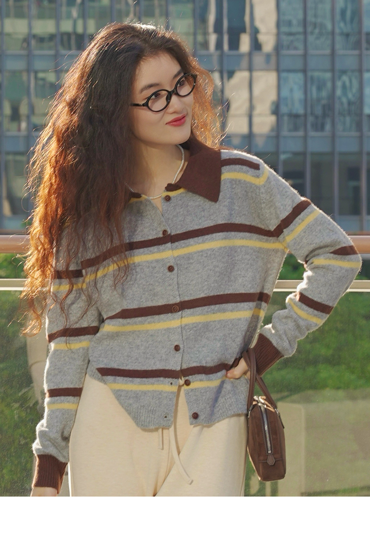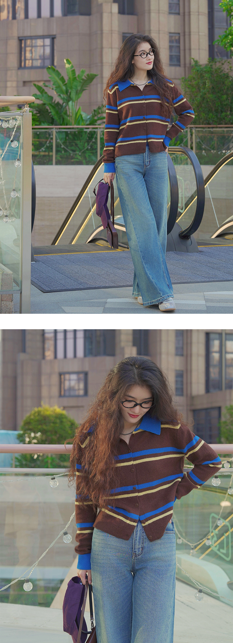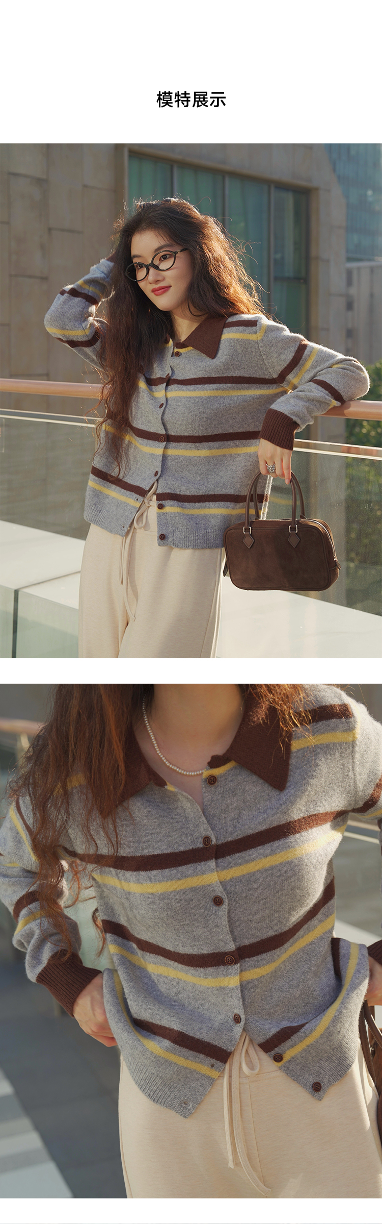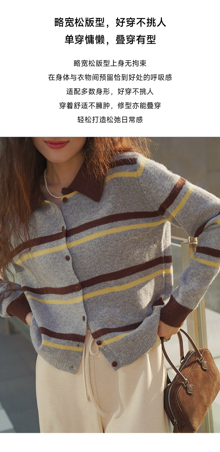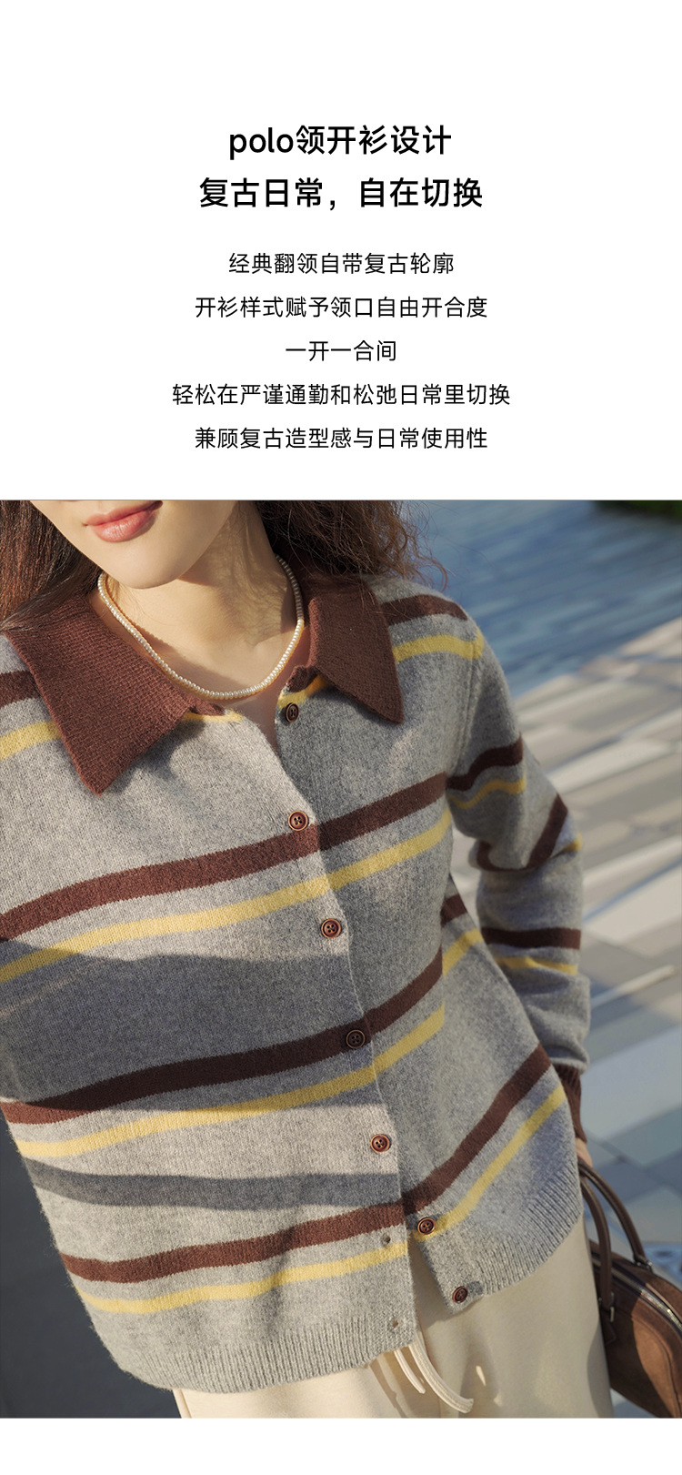 时髦老钱复古撞色条纹polo衫FCF3WSC128