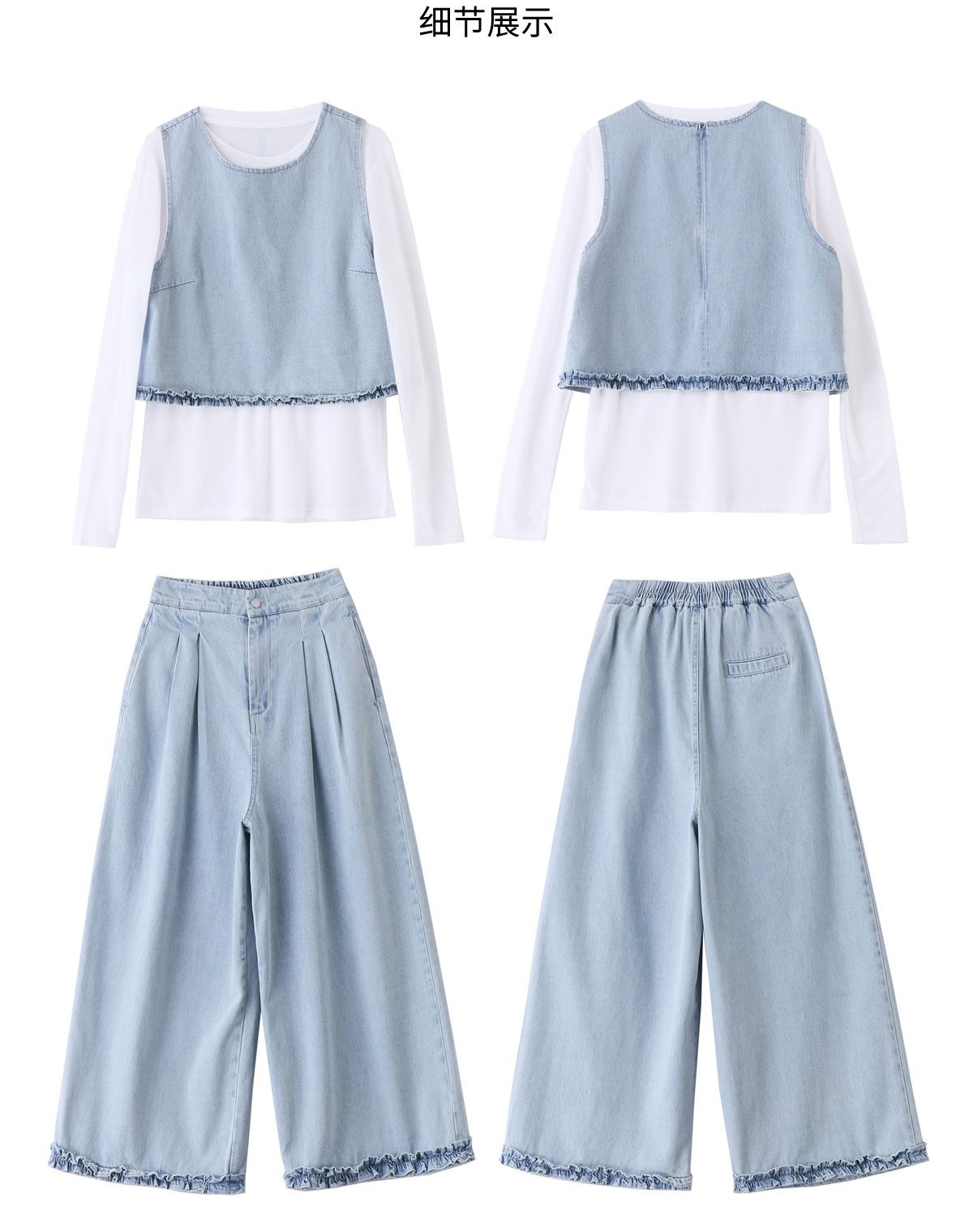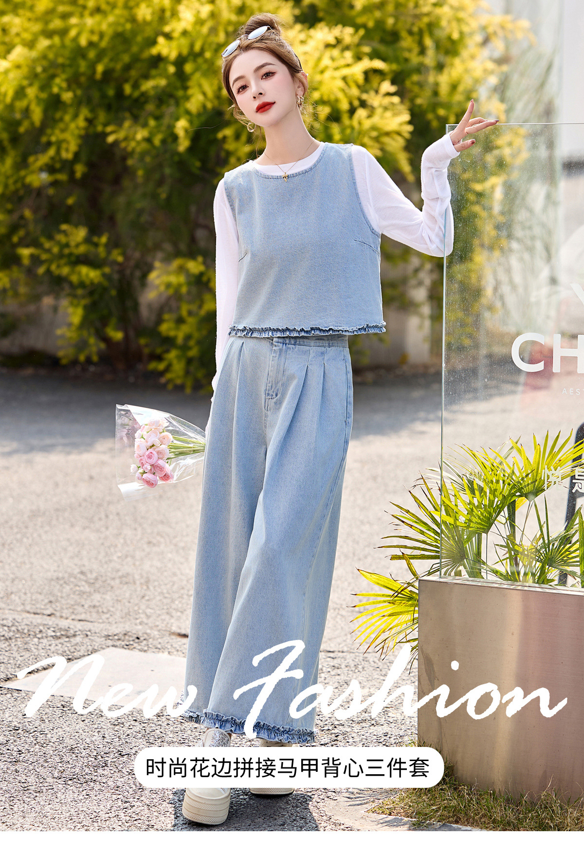 牛仔套装女2025年新款超火休闲洋气时尚减龄马甲阔腿裤三件套YDYX9317