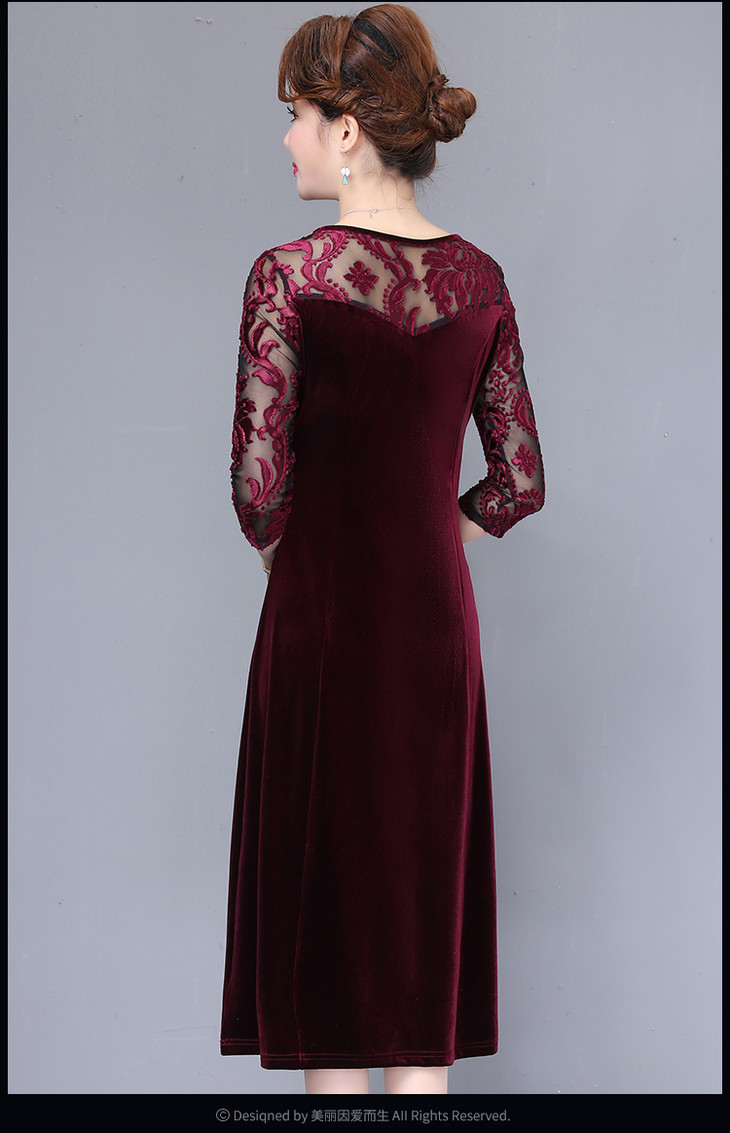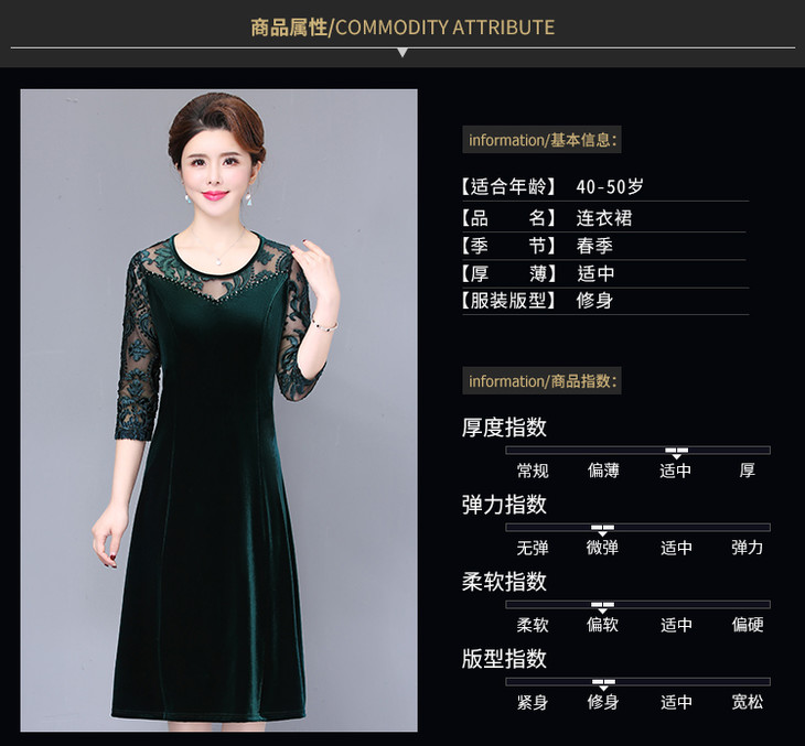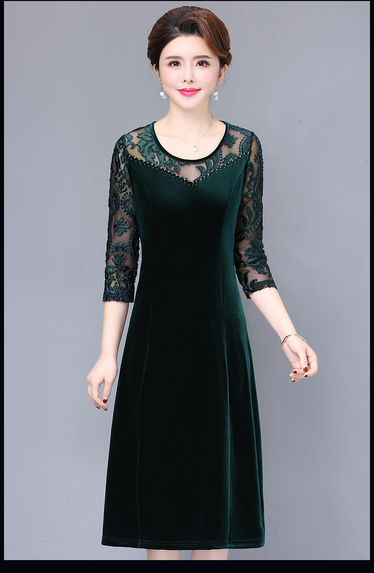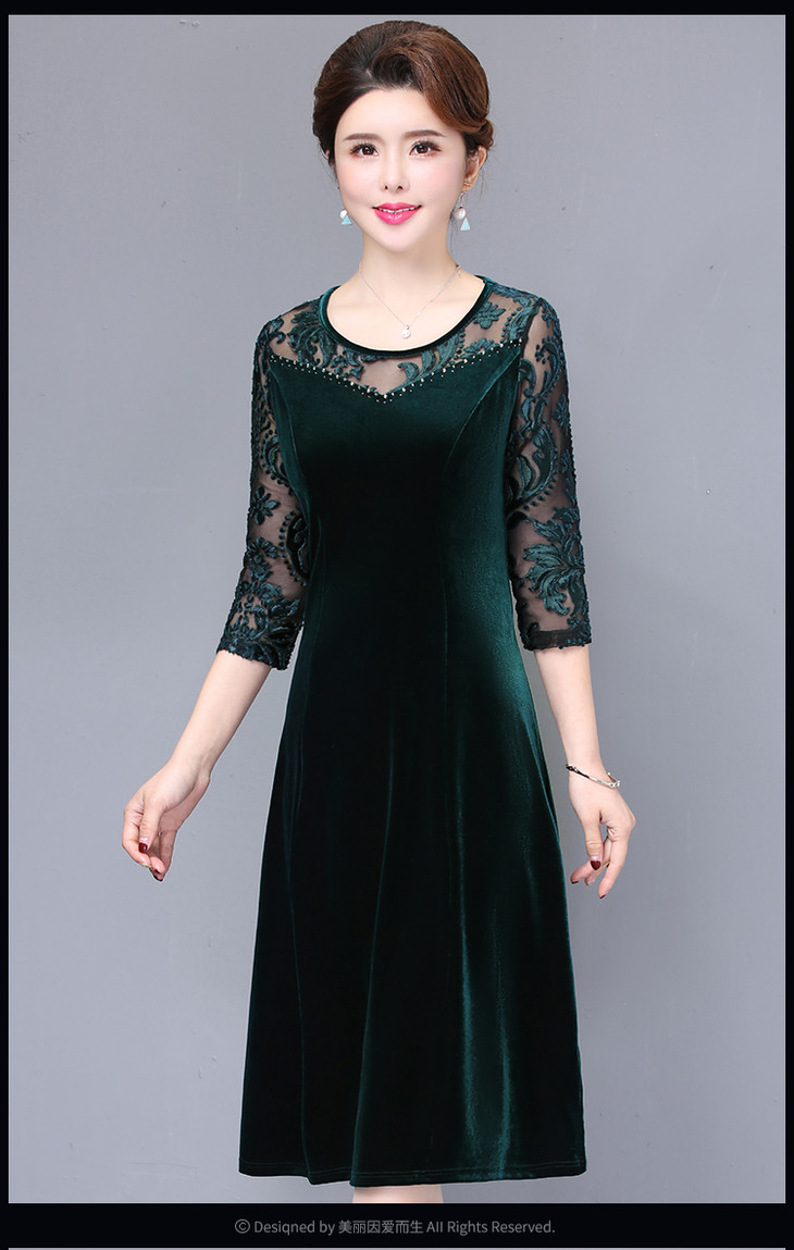 NP-85445新款洋气春秋金丝绒妈妈打底连衣裙