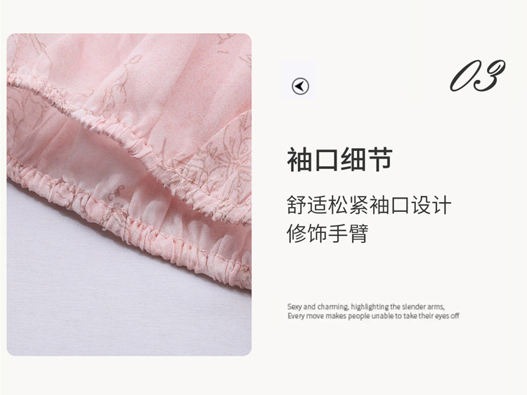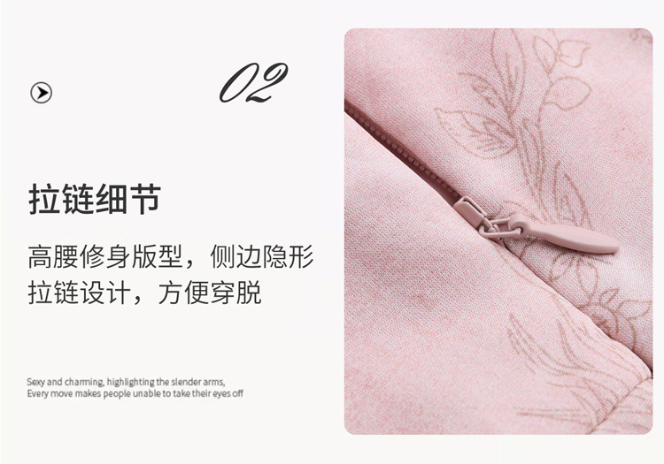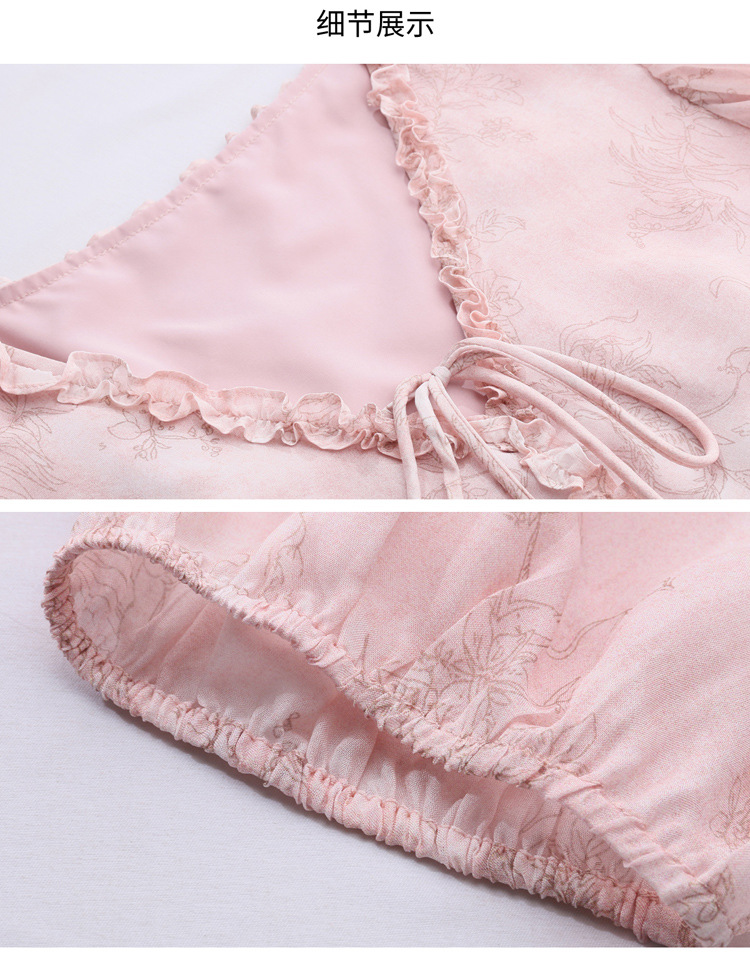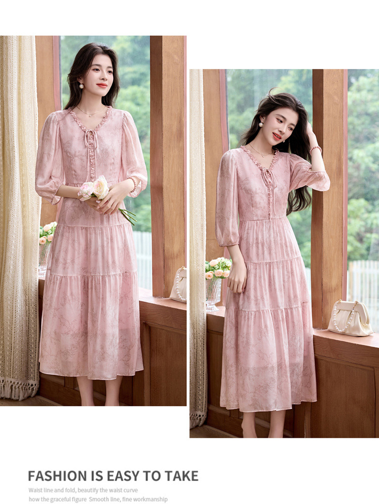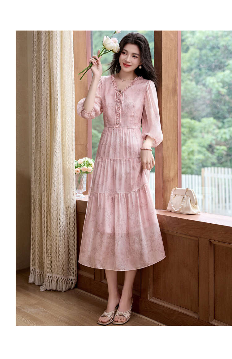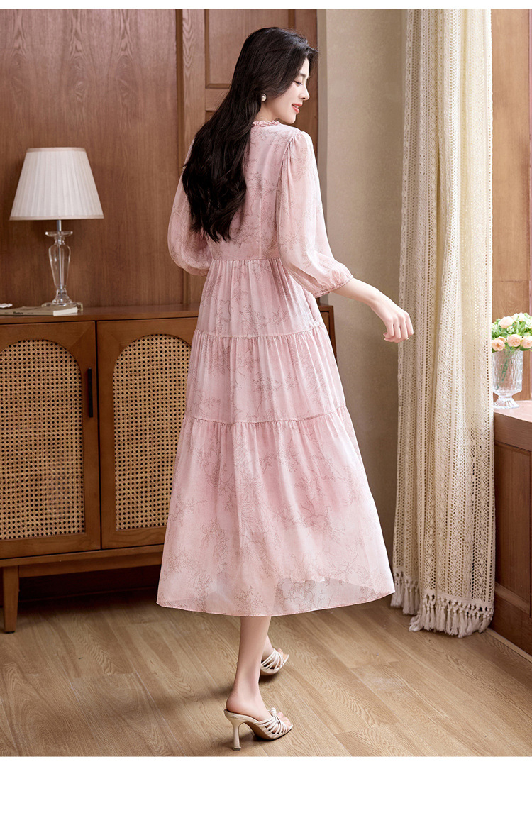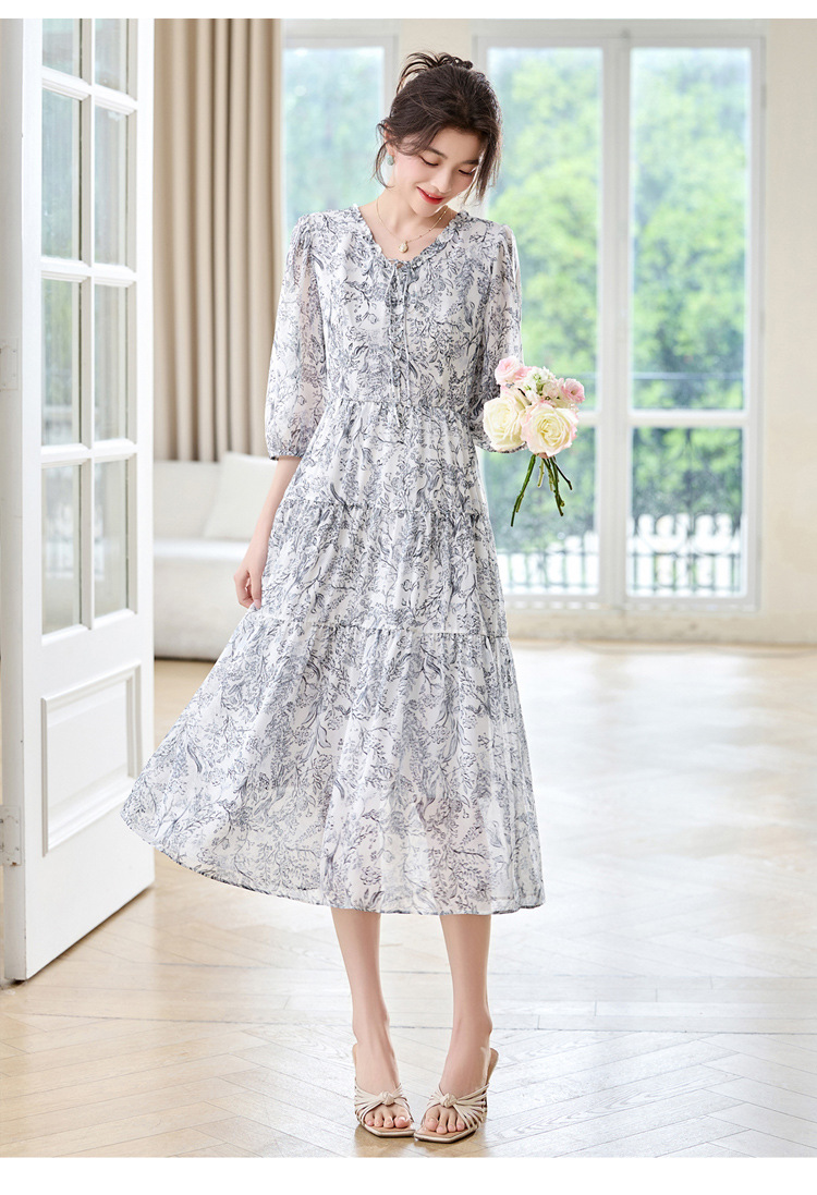 丁摩 印花木耳边时尚V领真丝连衣裙25029