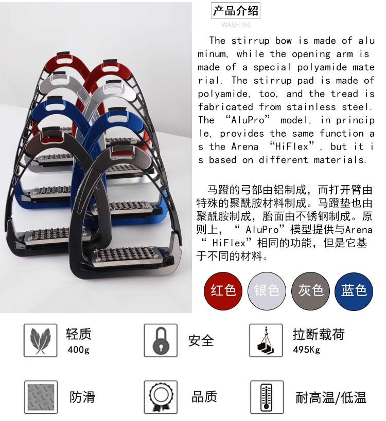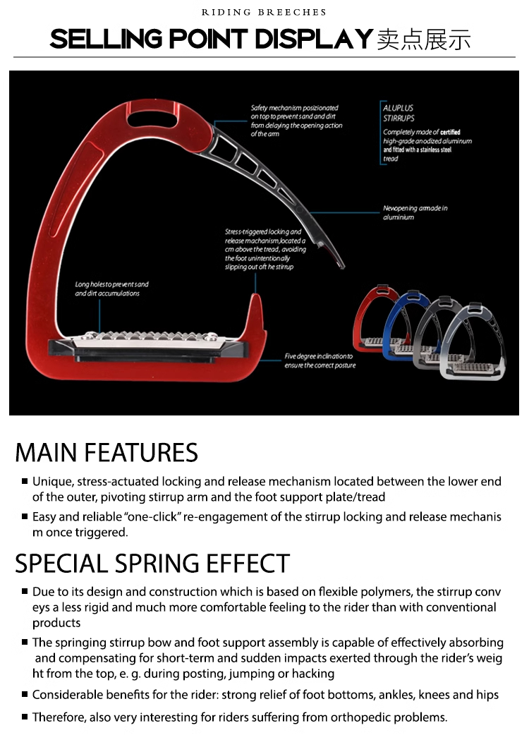 易于安装:设计有便捷的安装接口,使得骑手可以轻松地将安全马蹬铝条安装到马镫上,无需复杂的操作或工具。
