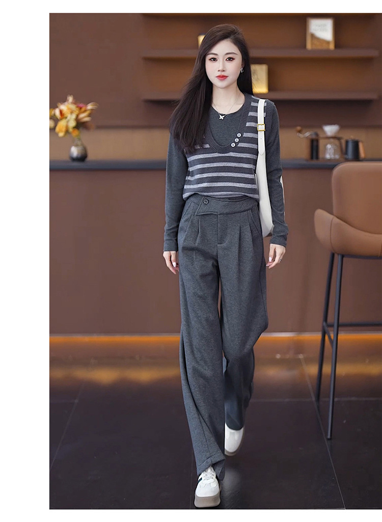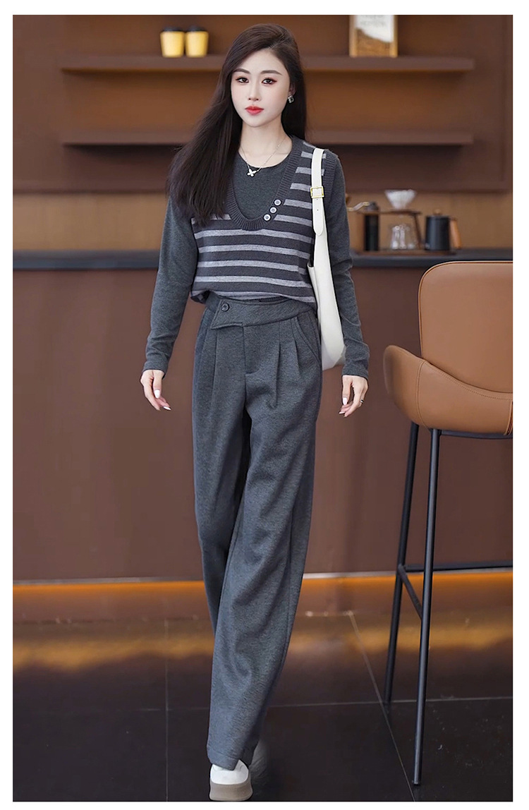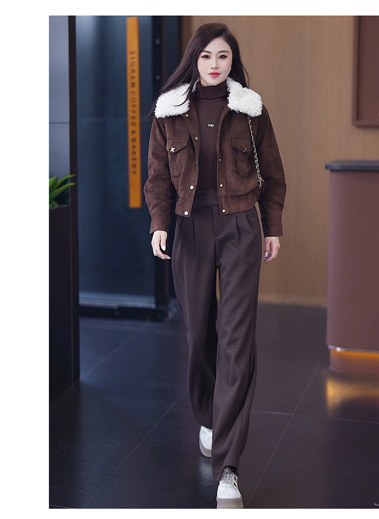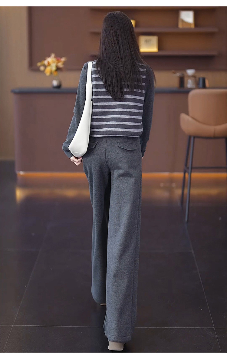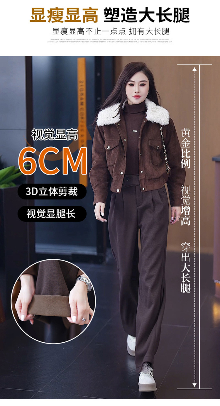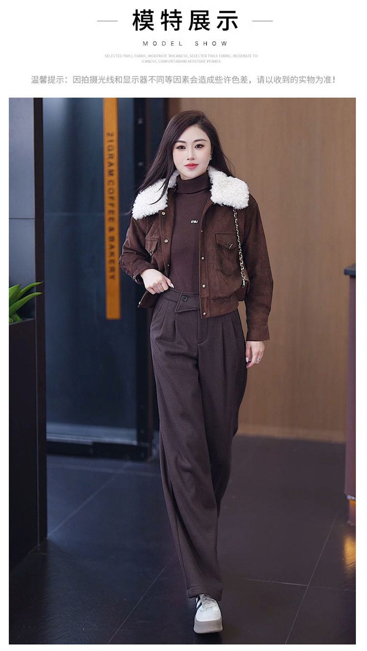 YM 8576高腰加绒毛呢阔腿裤宽松垂感休闲裤 商品图3