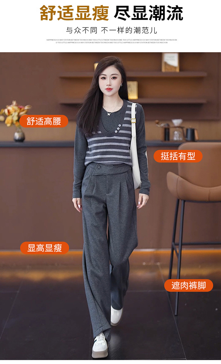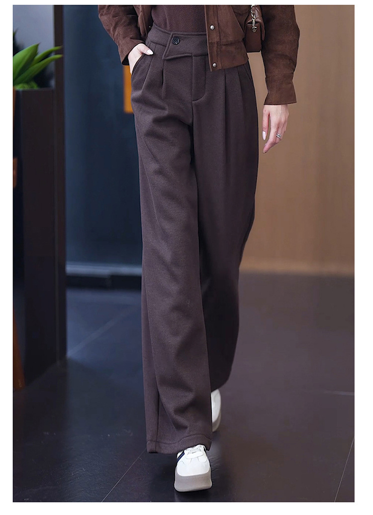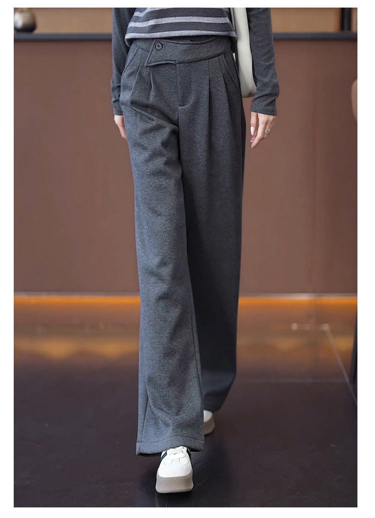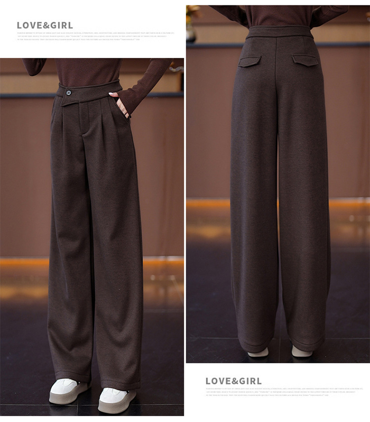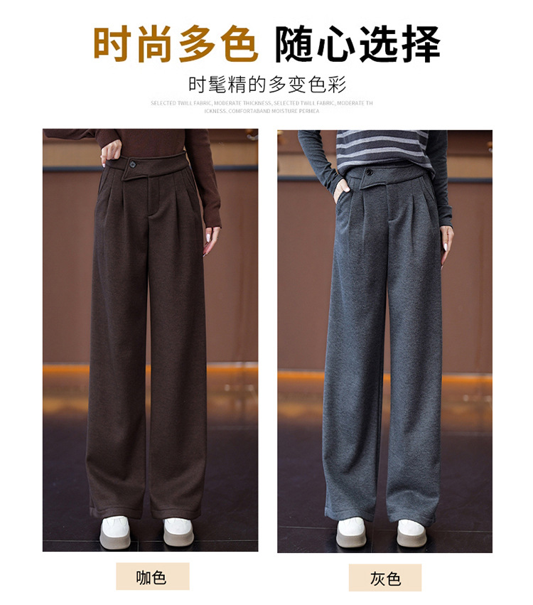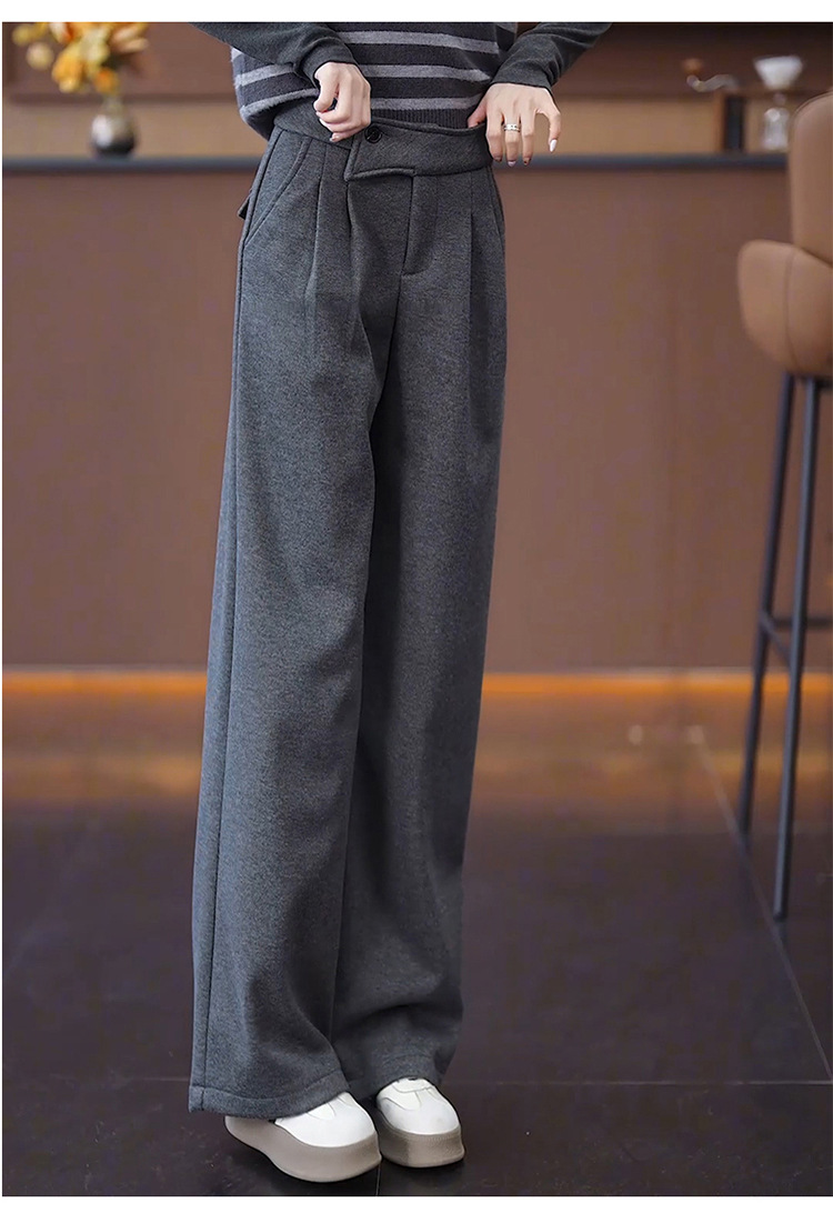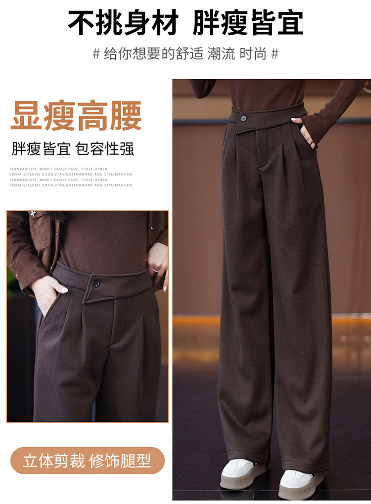 YM 8576高腰加绒毛呢阔腿裤宽松垂感休闲裤 商品图4