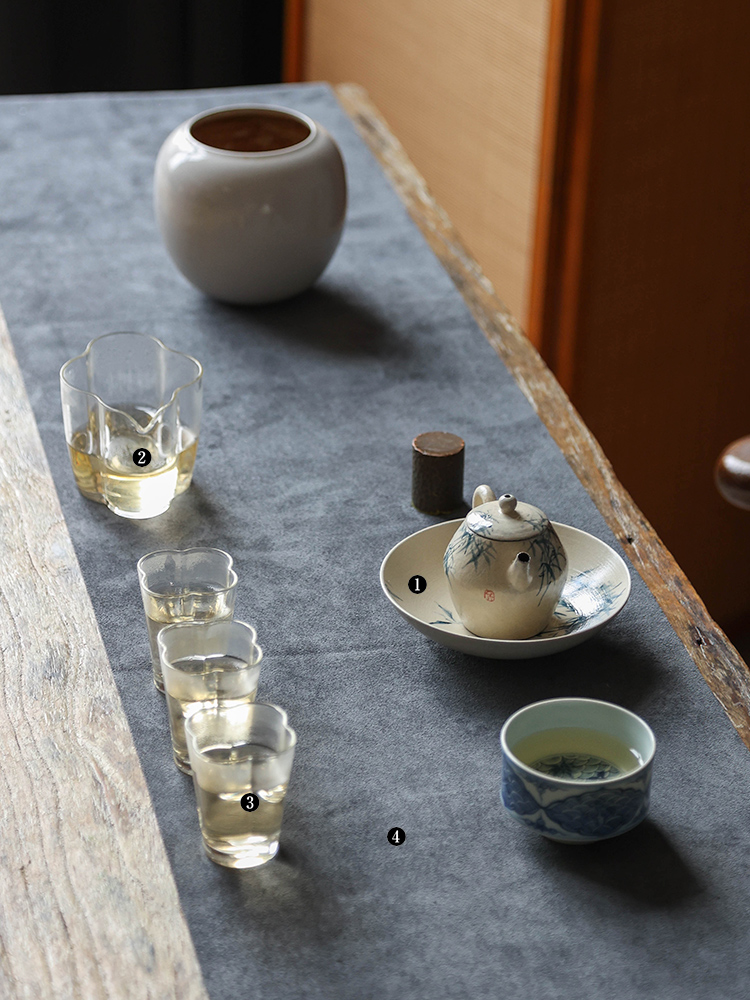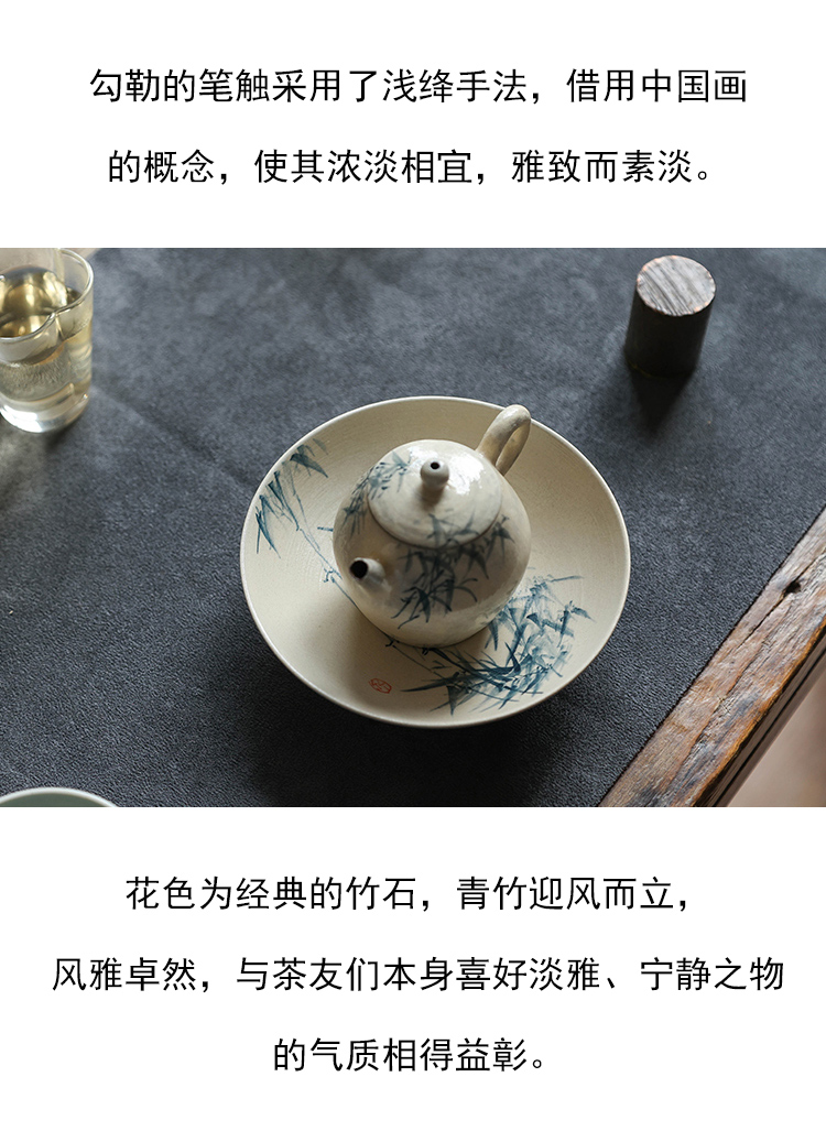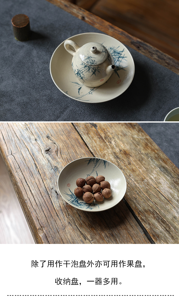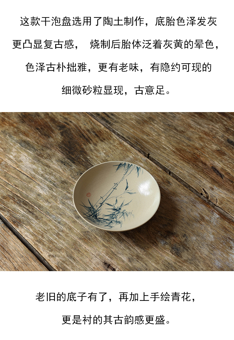 茶香记 手工陶土青花竹石干泡盘色泽古朴壶承老味茶盘一器多用