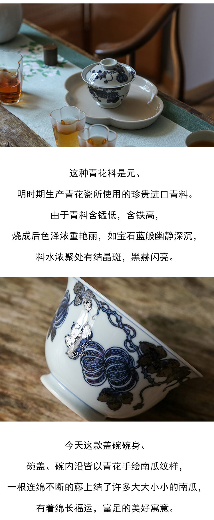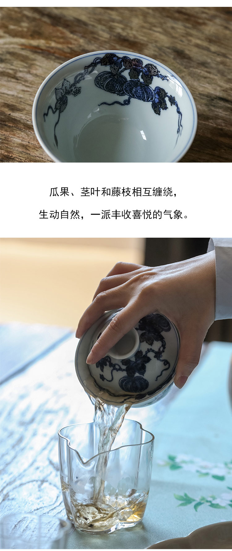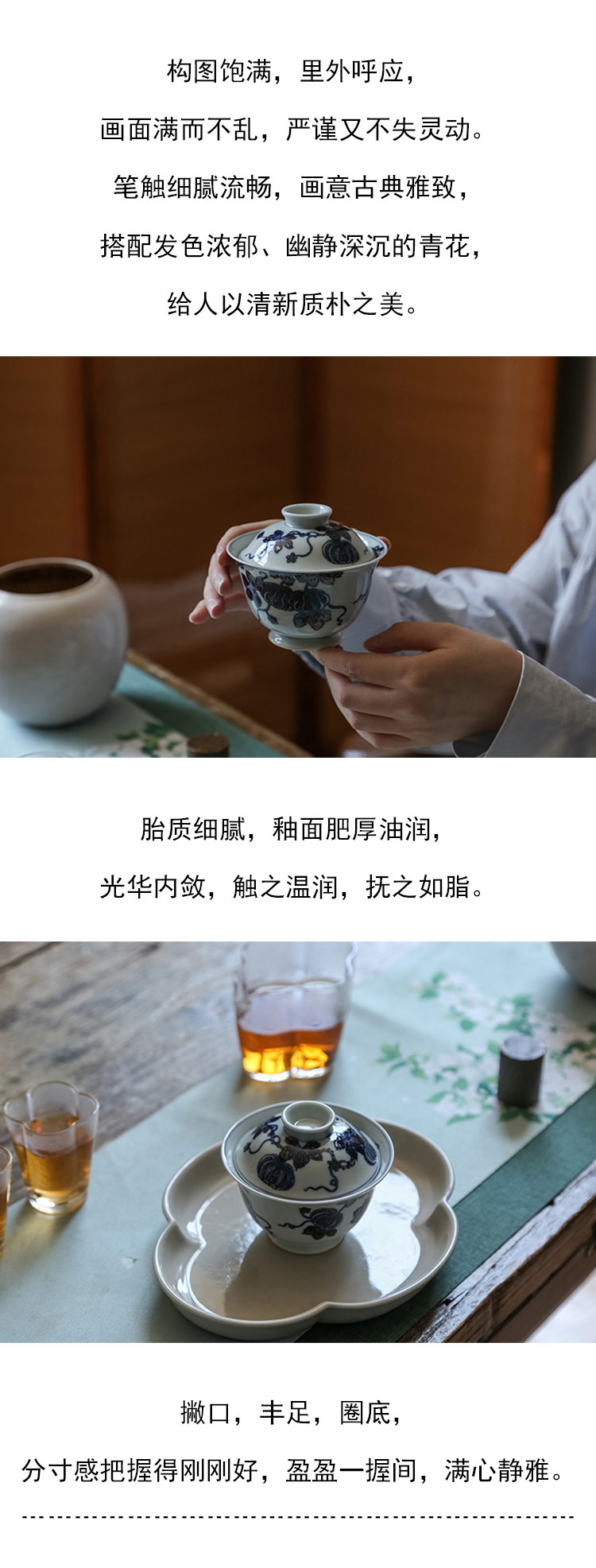 茶香记 青花南瓜盖碗 云诗慕古 青花手绘 南瓜纹 寓意美好 典雅大方