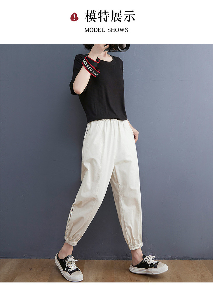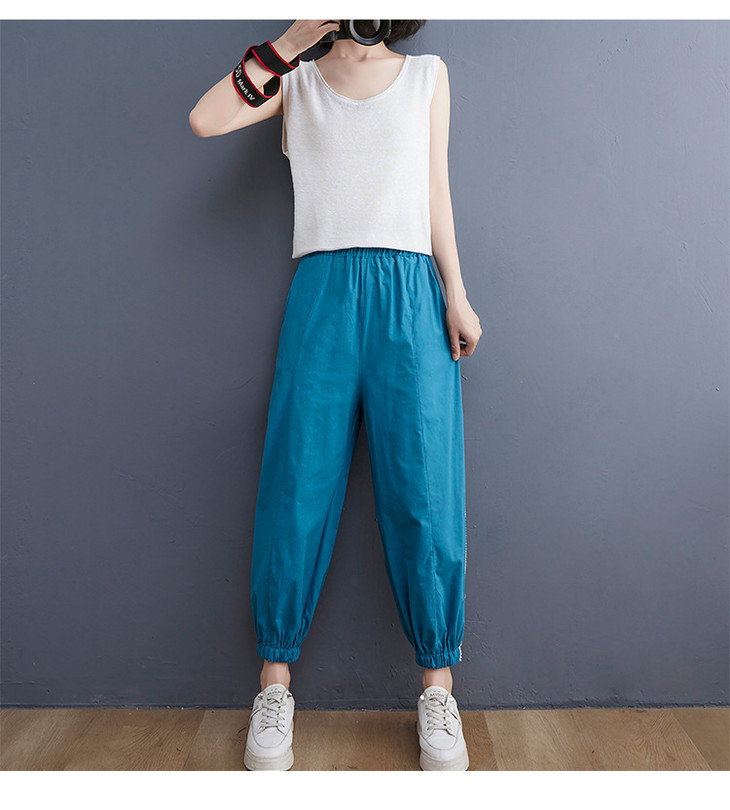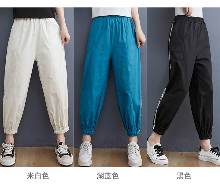 GYH 6090百搭休闲纯色拼接透气棉麻九分裤