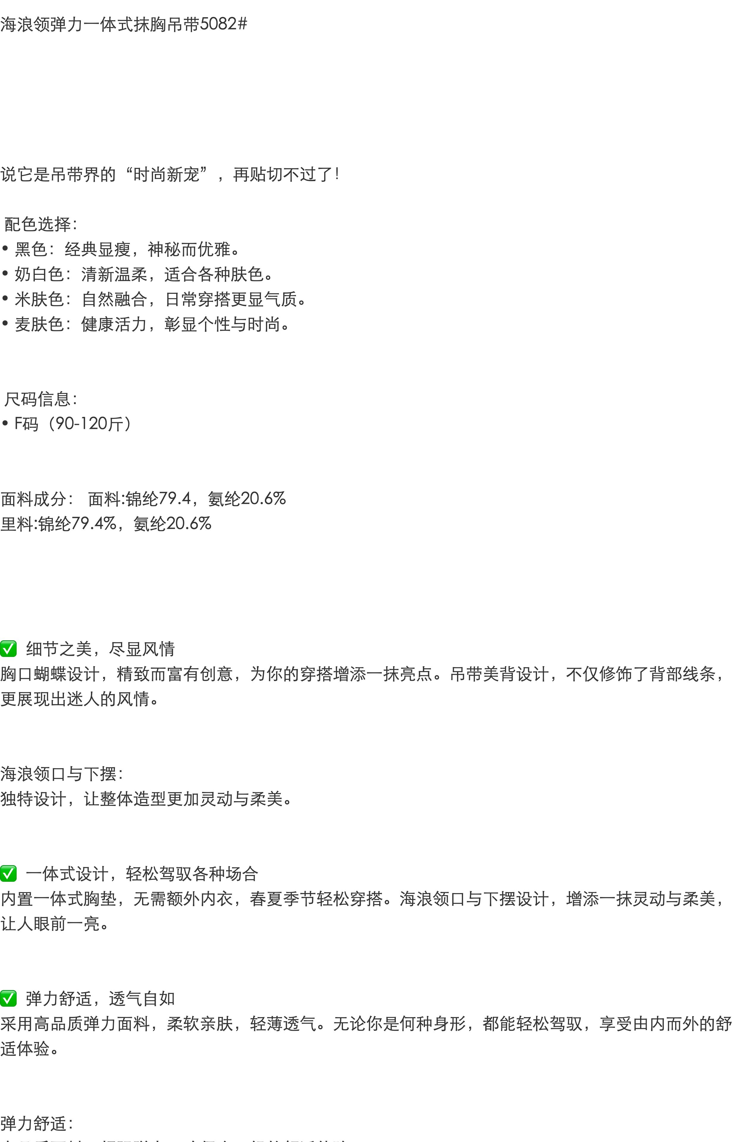 洛诗琳42103背心文胸一体式抹胸2025春夏新款防走光打底上衣5082