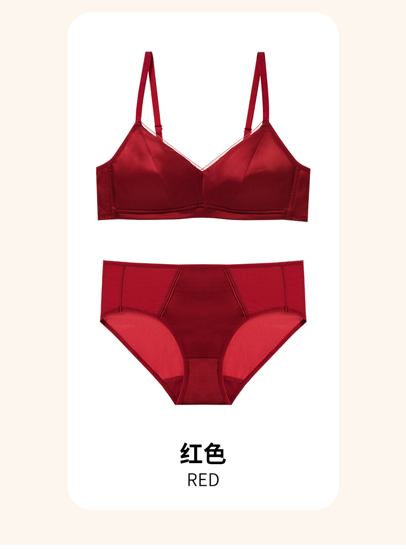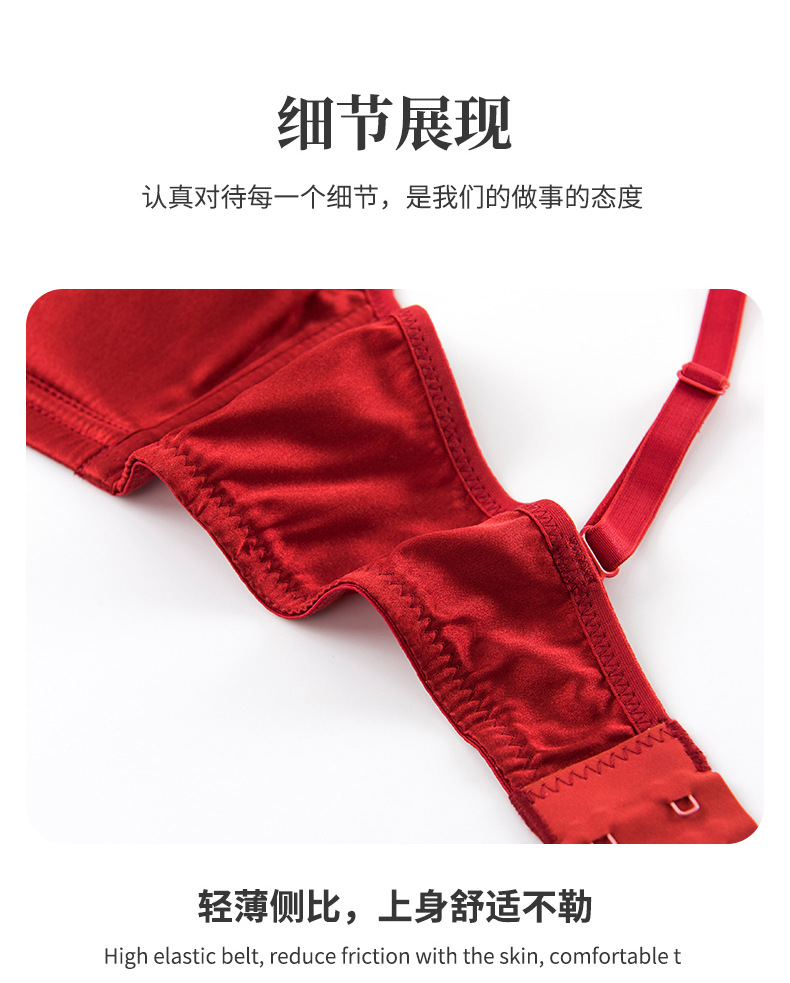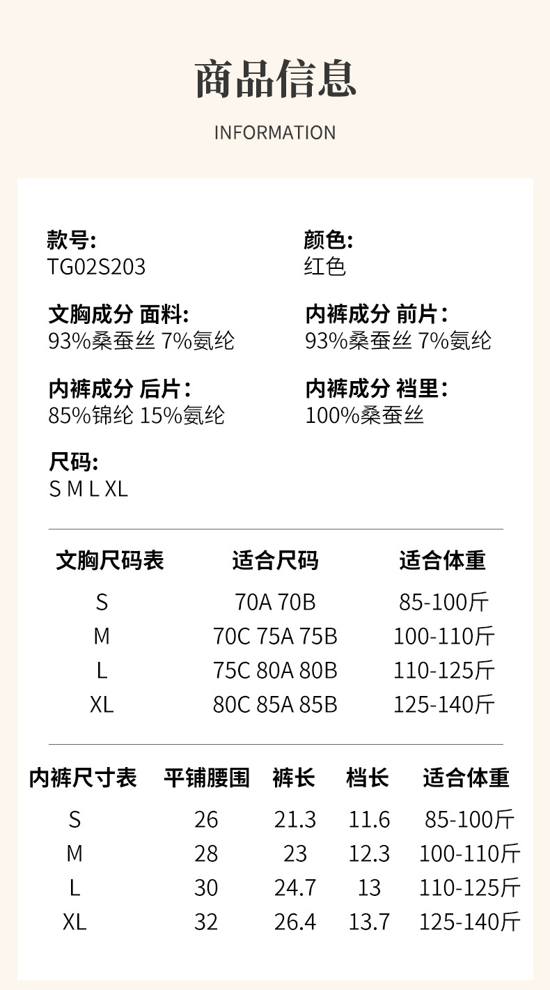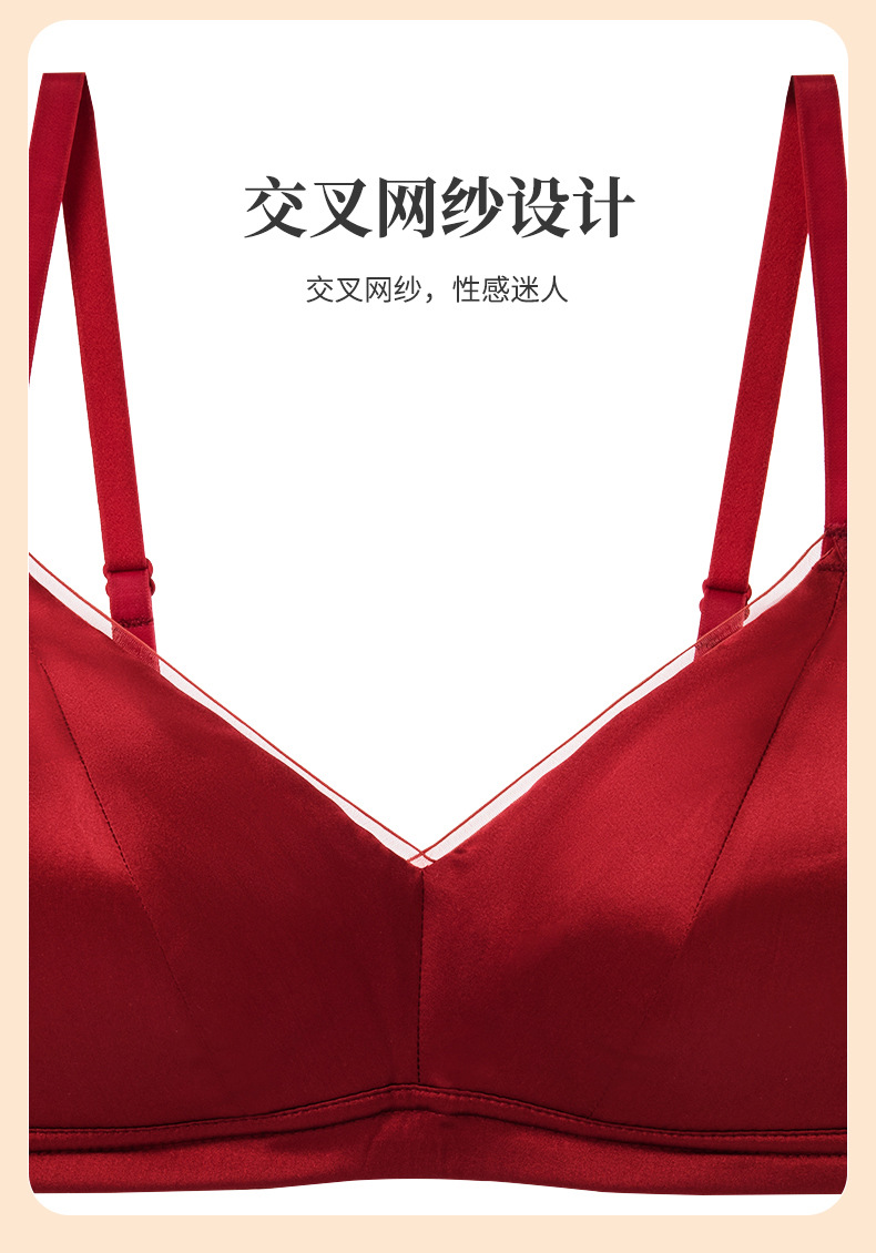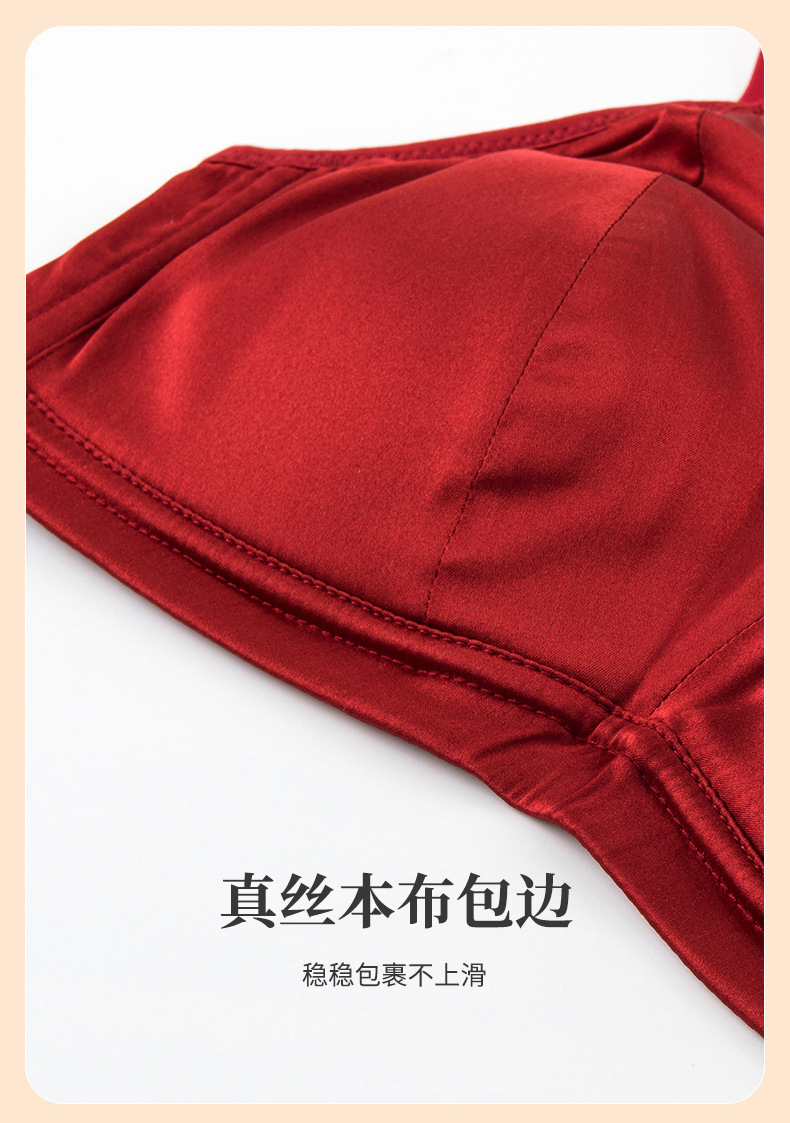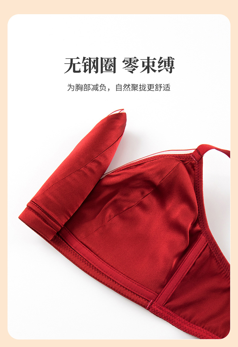 TG-TG02S203 本命年大红色真丝内衣套装女 薄款结婚新娘性感桑蚕丝文胸