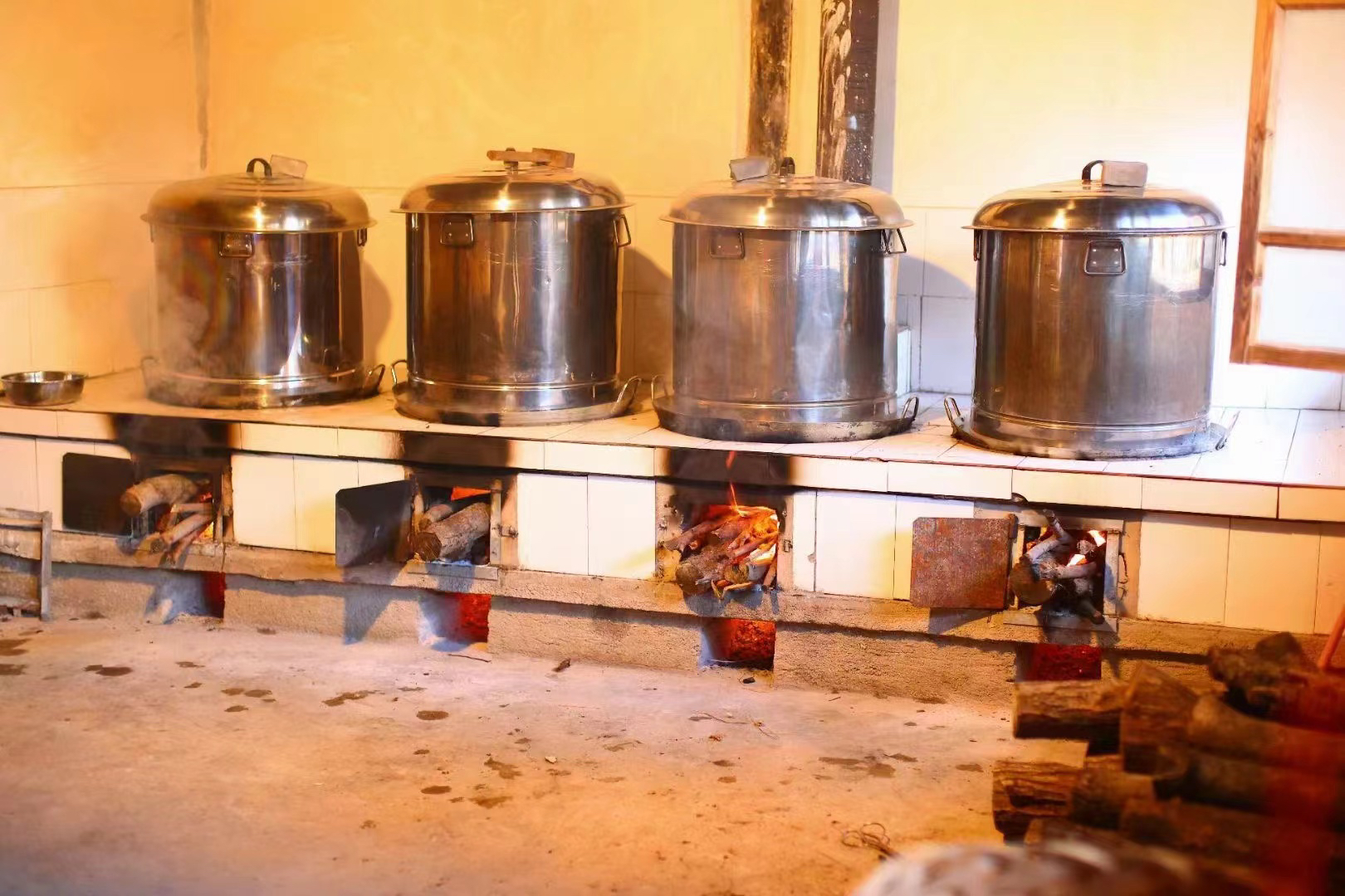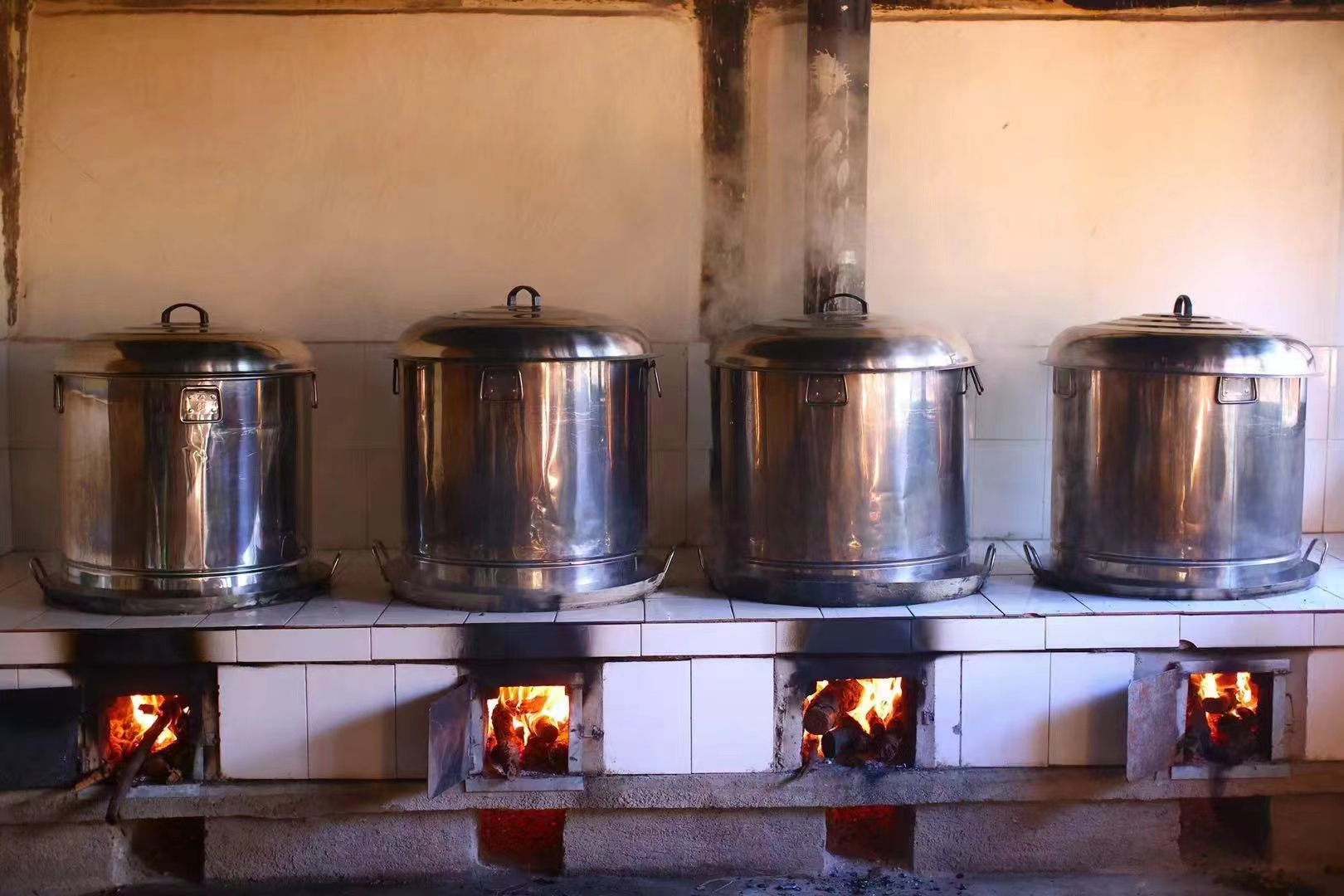 玉灵膏的整个制作过程,沿袭了传统的制作方法,把桂圆肉、西洋参、白糖按10:1:1的比例放在不锈钢容器锅里,用柴火烧大火蒸45余小时。
