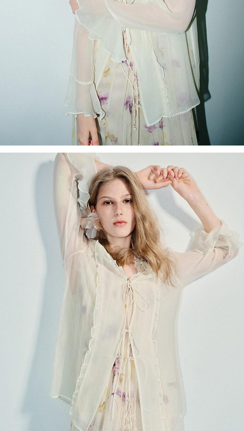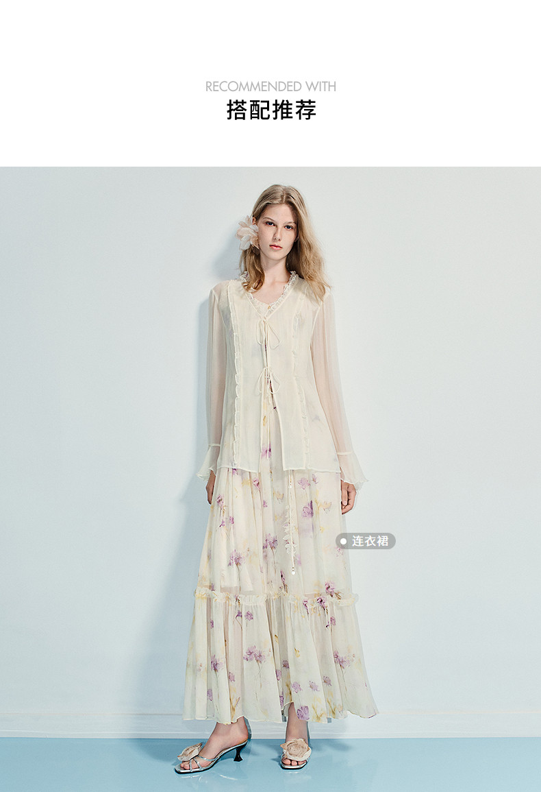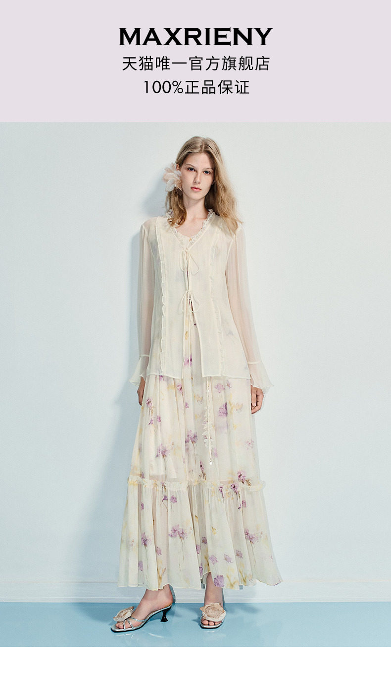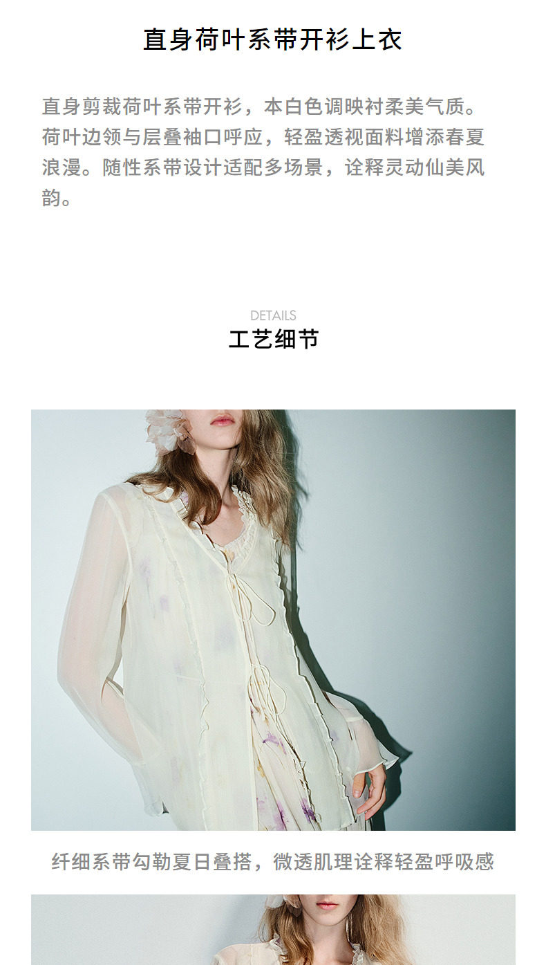 【商场同款】MAXRIENY仙美浪漫感直身荷叶系带开衫桑蚕丝上衣25夏(货号:MC86TP315)