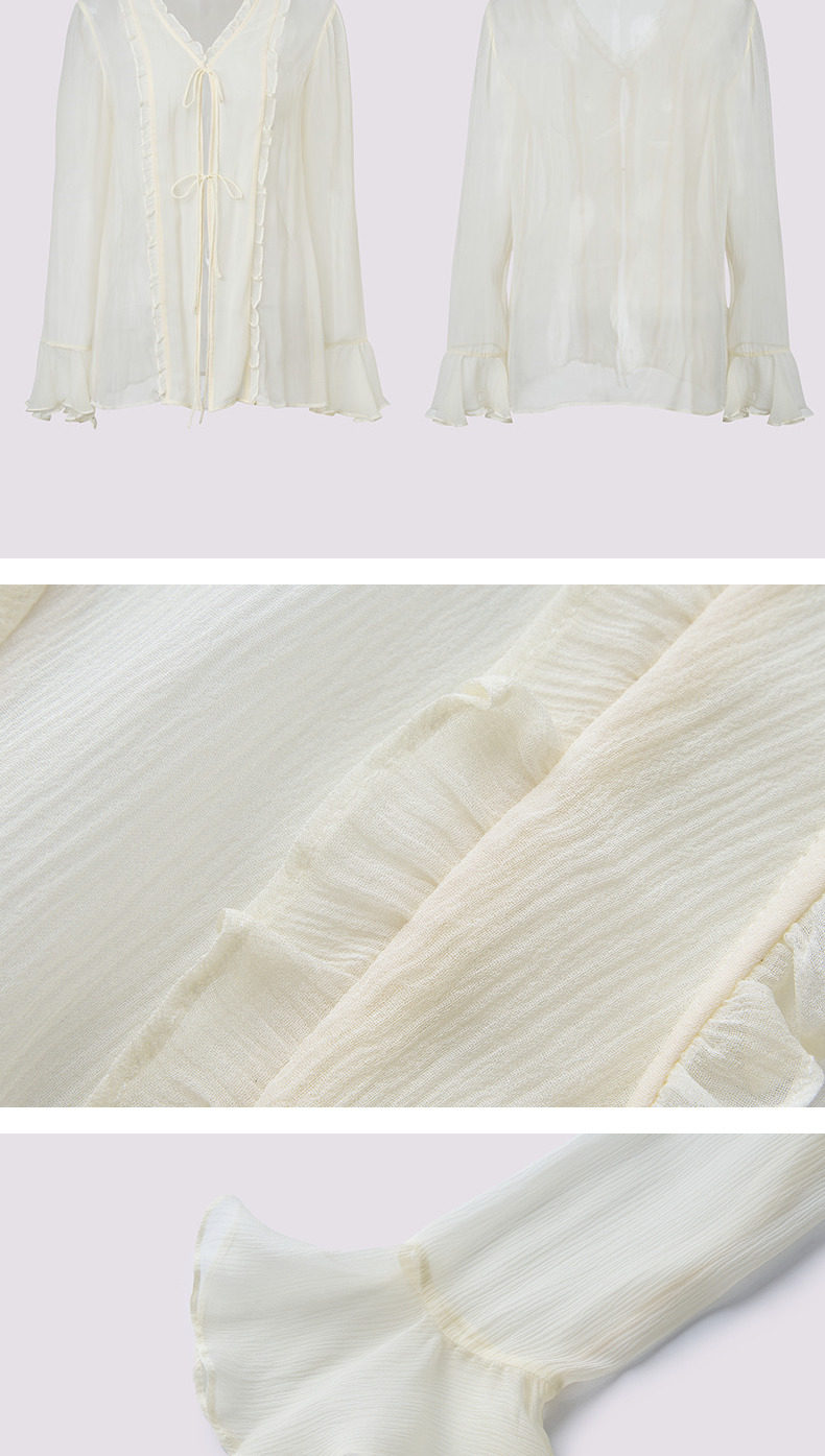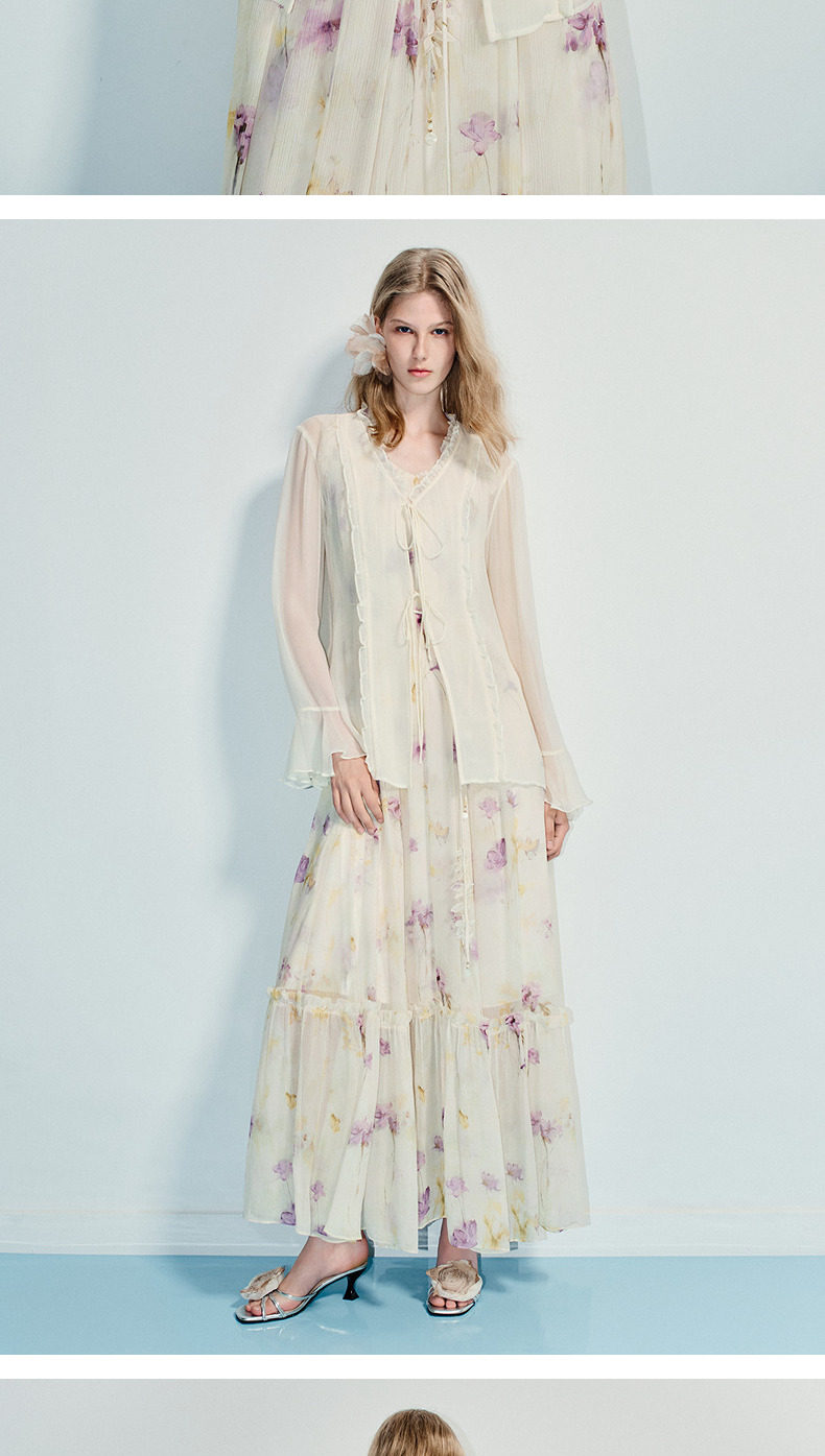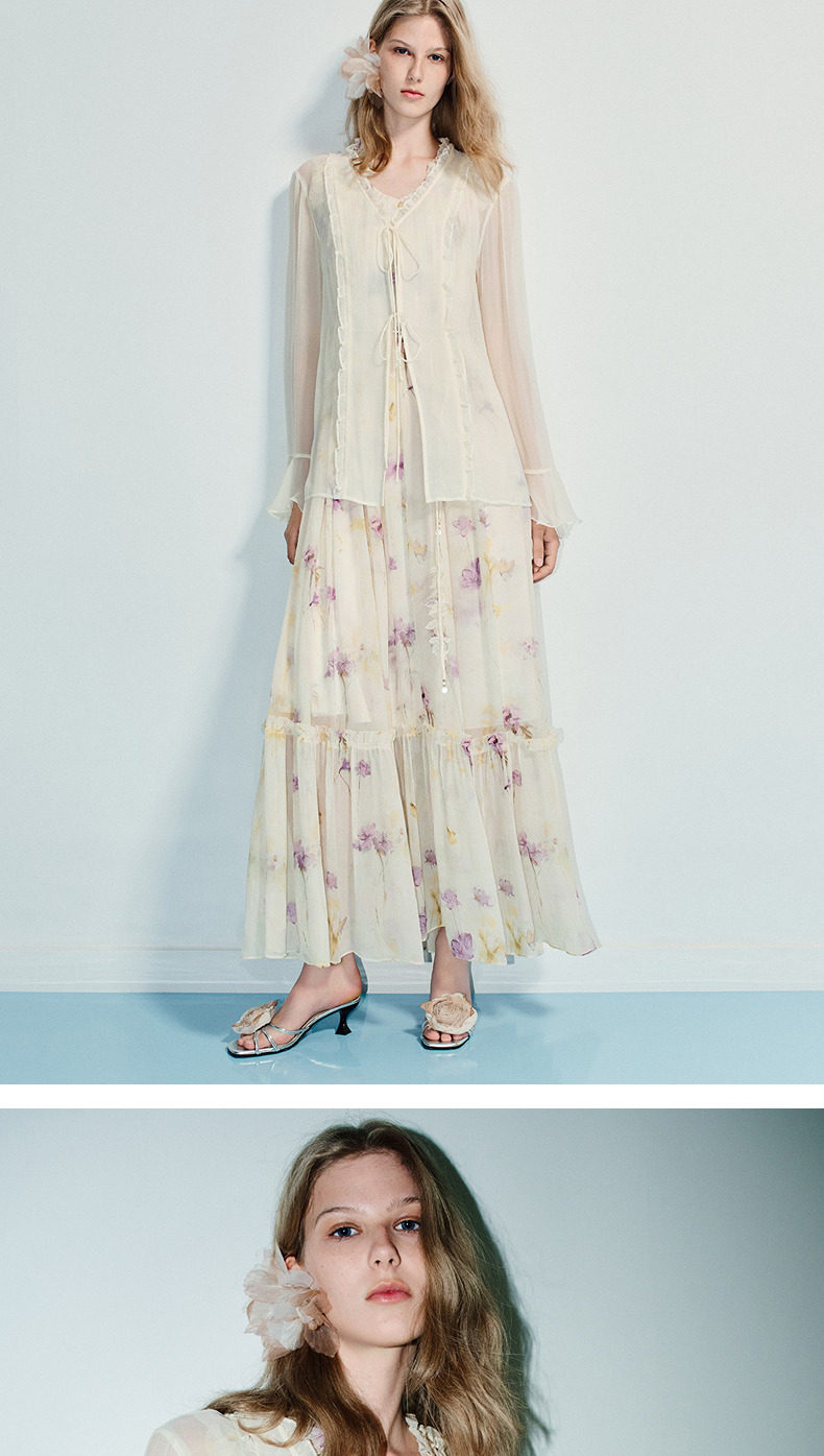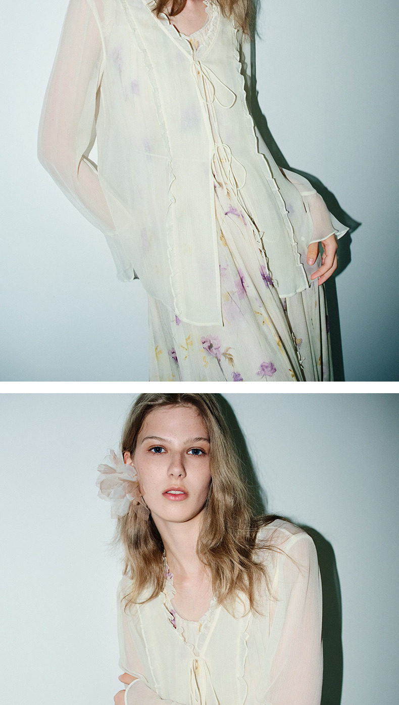 【商场同款】MAXRIENY仙美浪漫感直身荷叶系带开衫桑蚕丝上衣25夏(货号:MC86TP315)