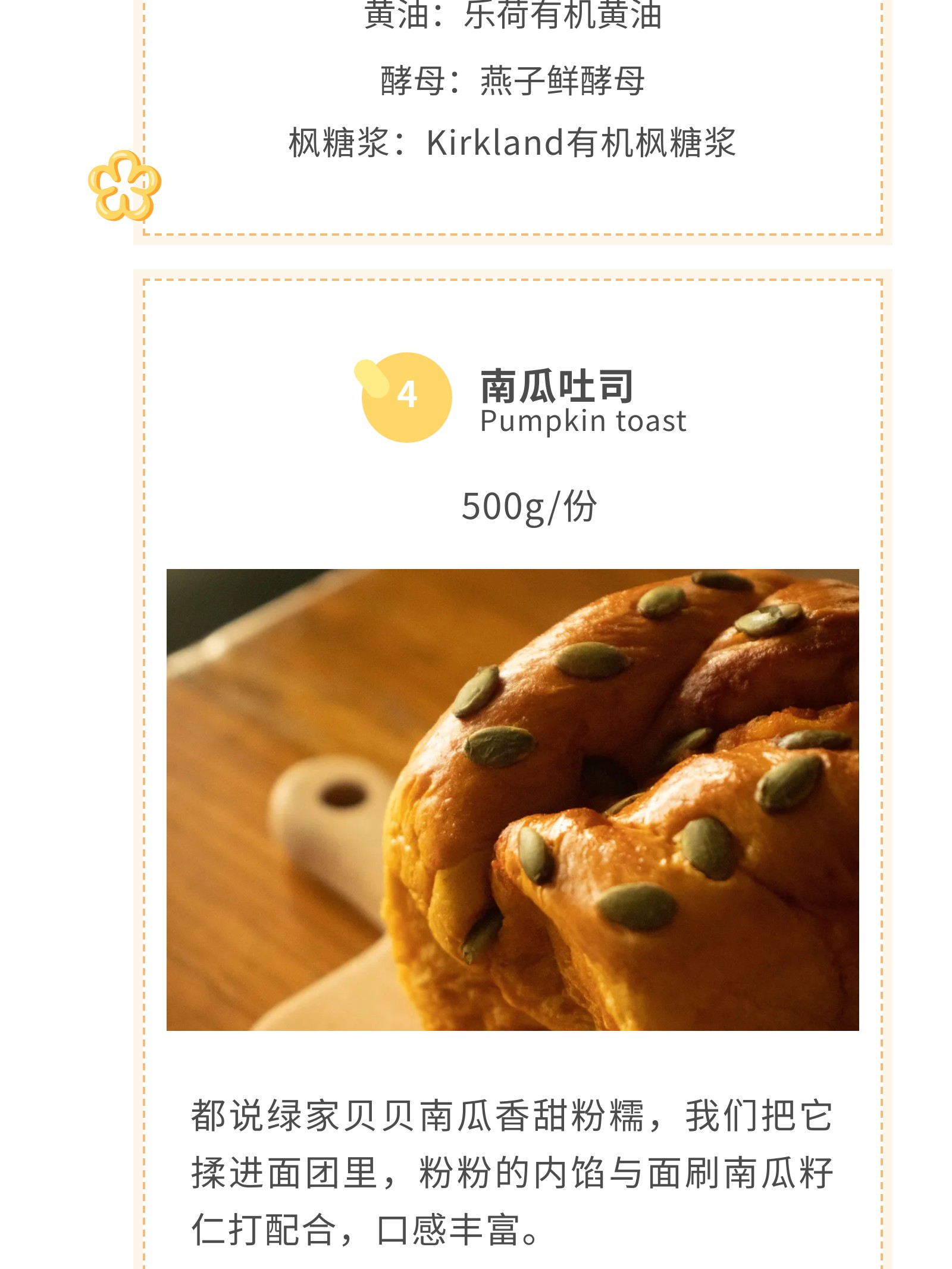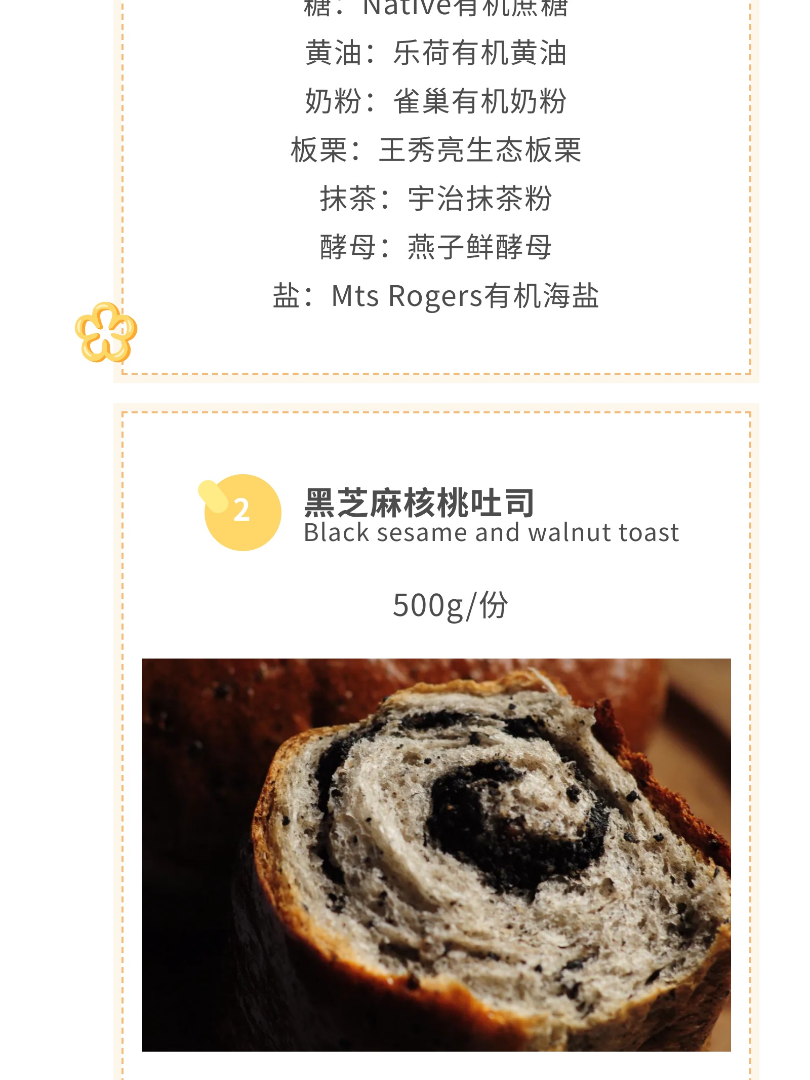 2、我们会根据当季产出的有机食材研发吐司口味,部分口味无法全年供应。