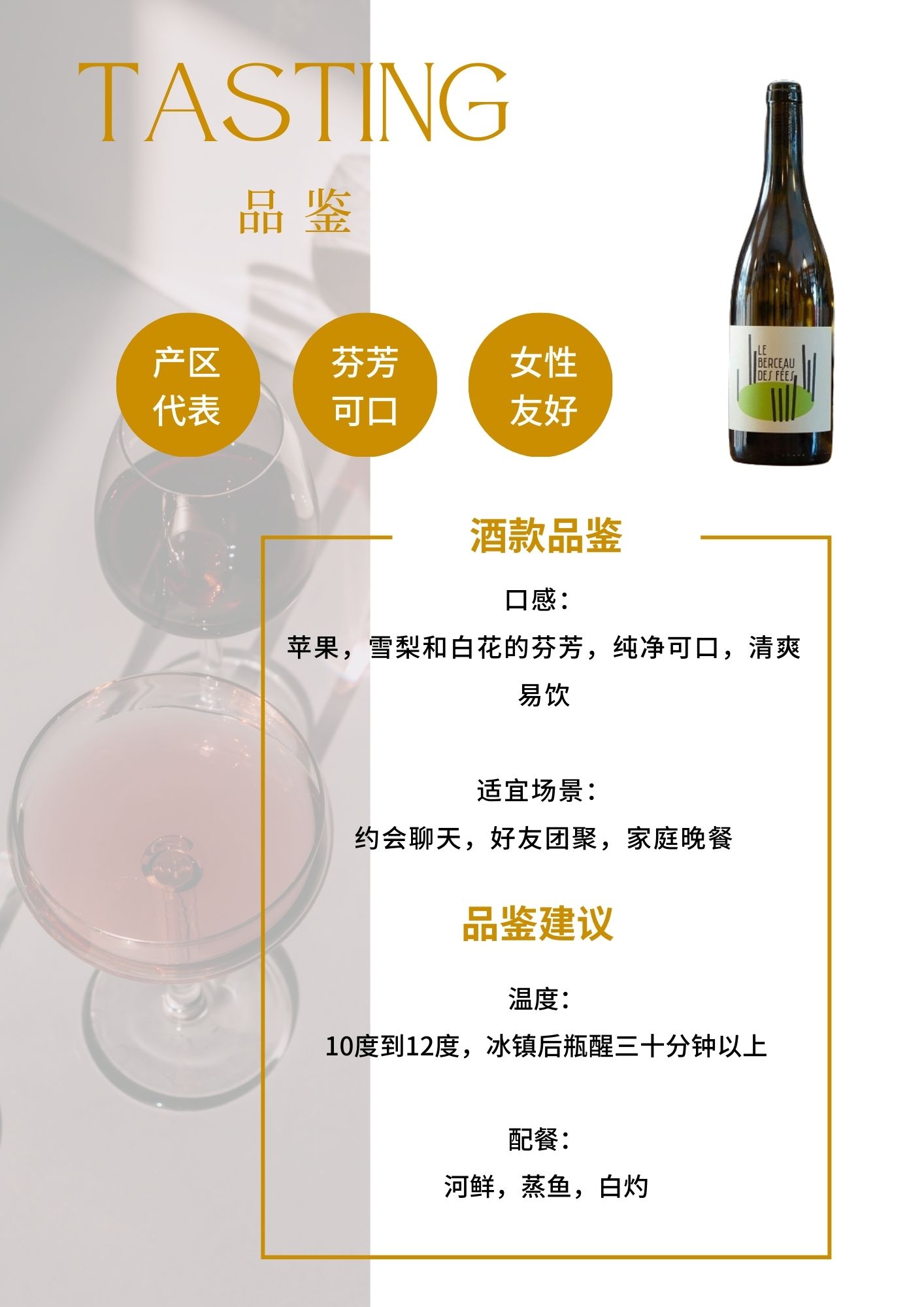 仙女摇篮干白 2023:森林包围的年轻藤,爆汁青苹果和白花香,冰镇后像果汁般爽口。