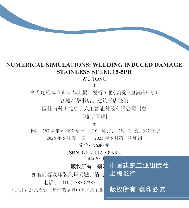 书名:NUMERICAL SIMULATIONS: WELDING INDUCED DAMAGE STAINLESS STEEL 15-5PH