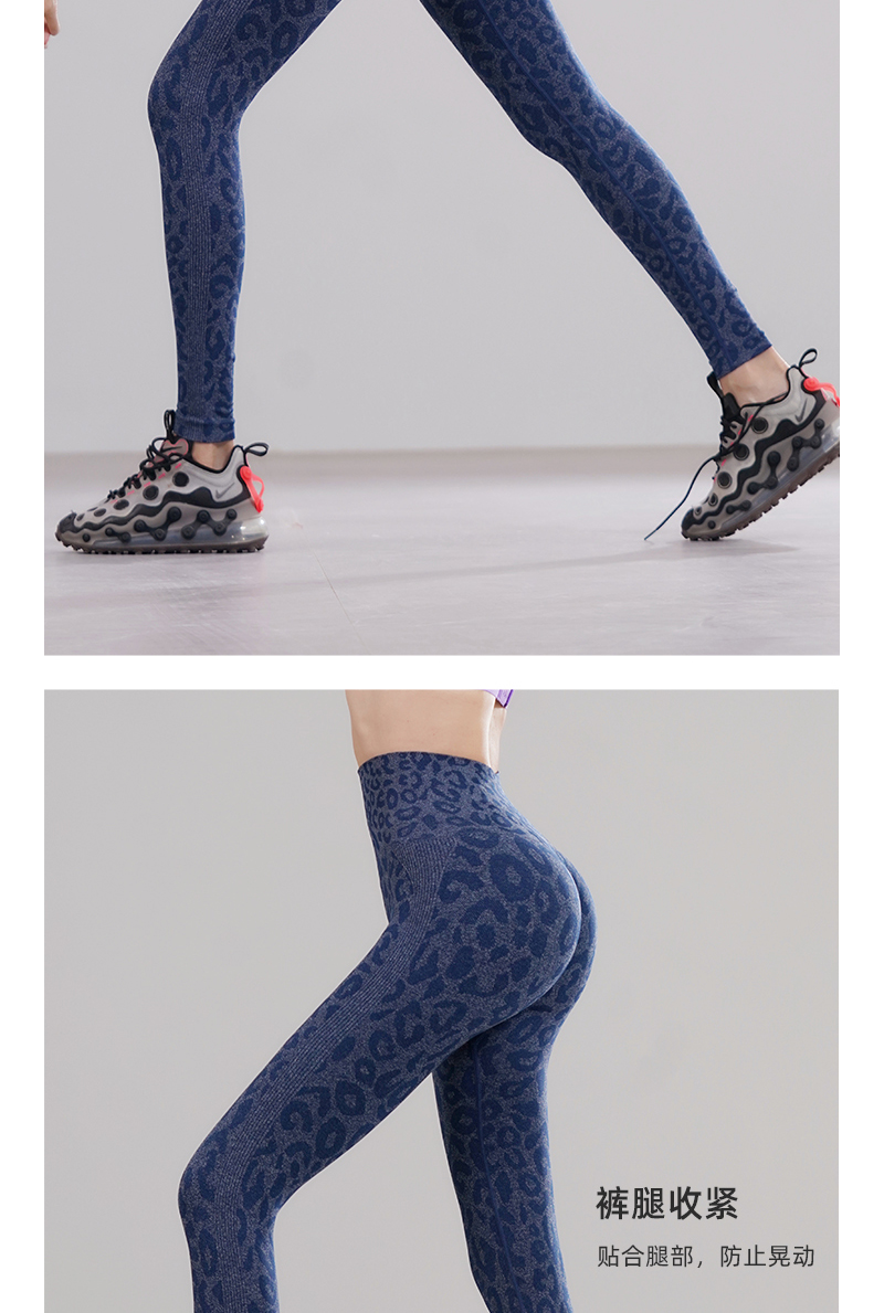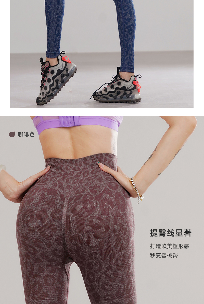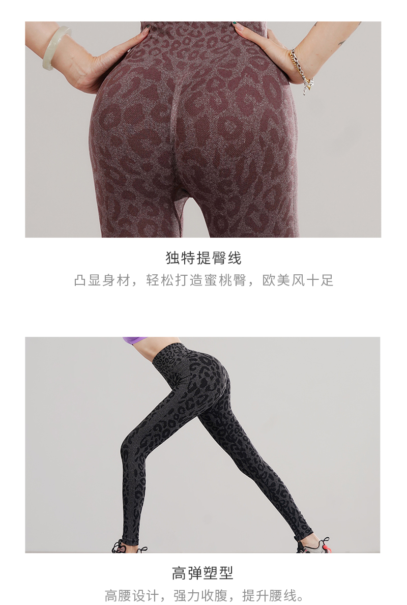 新款无缝高腰收腹弹力修身蜜桃臀运动速干透气舒适糯米豹纹瑜伽裤