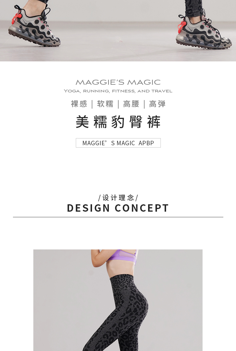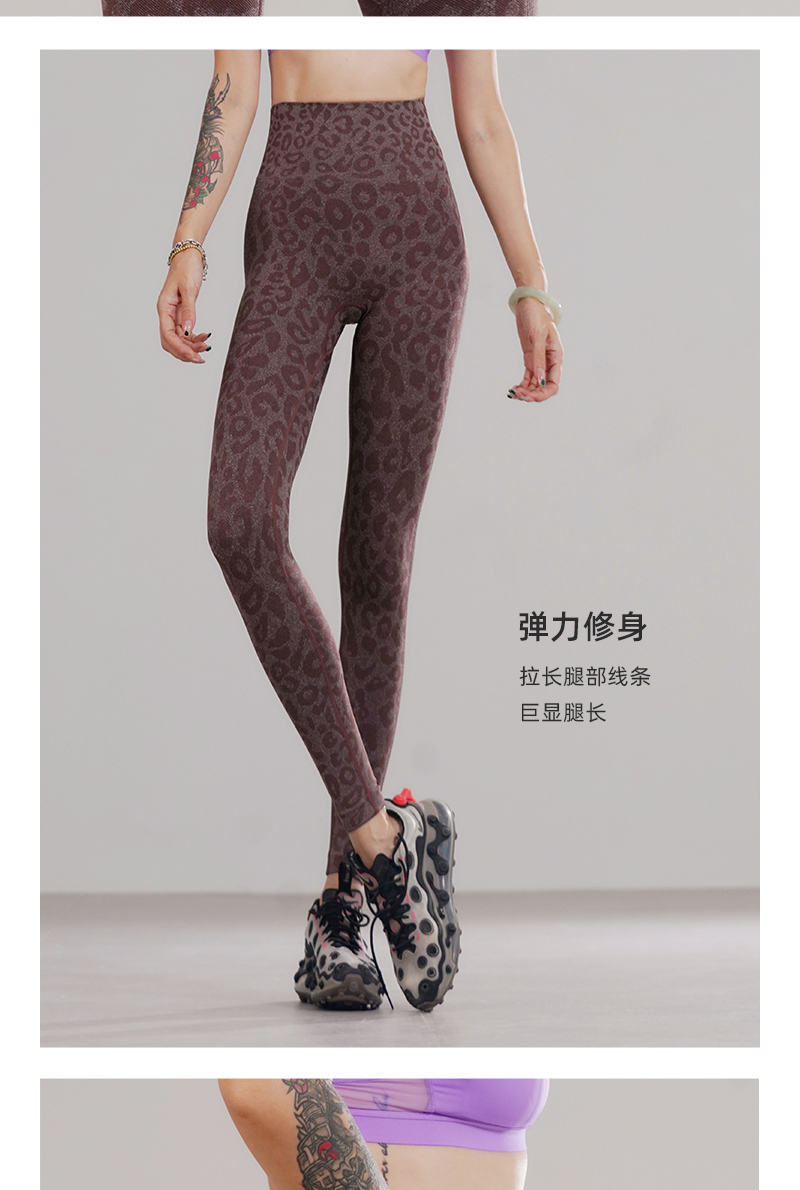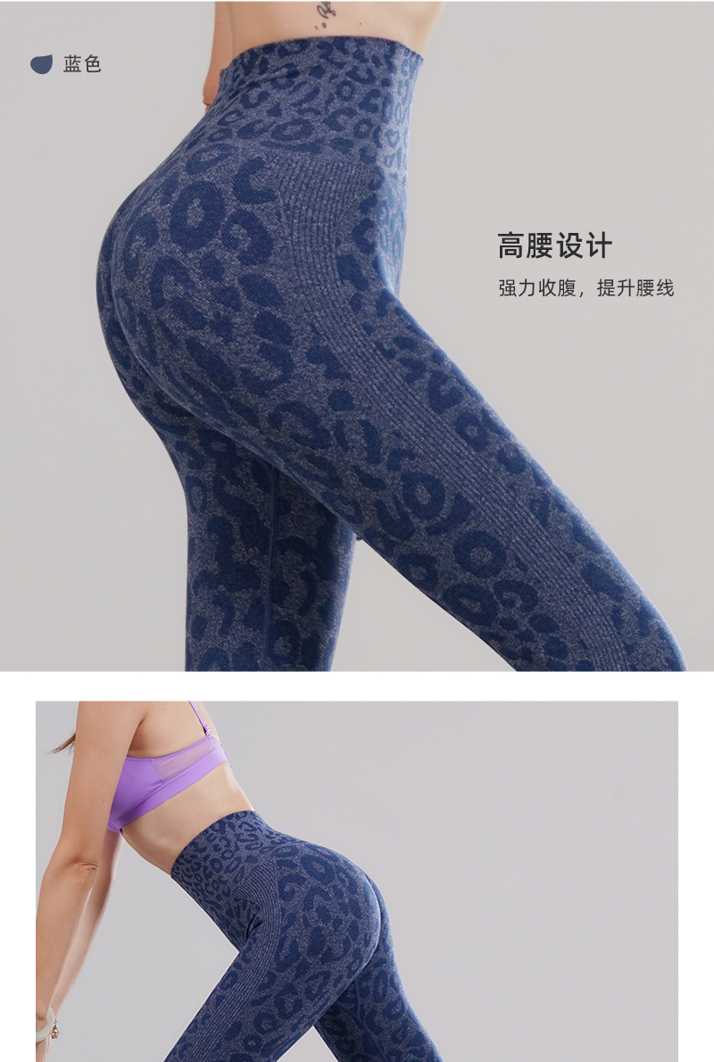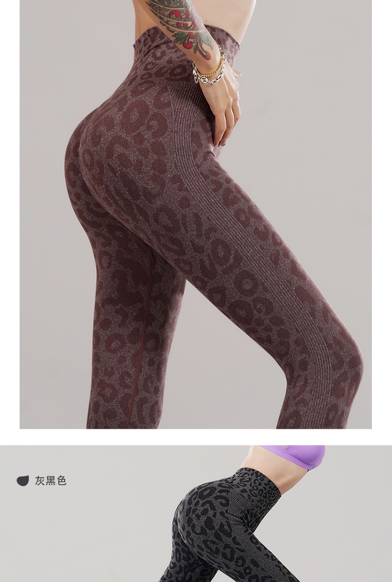 新款无缝高腰收腹弹力修身蜜桃臀运动速干透气舒适糯米豹纹瑜伽裤