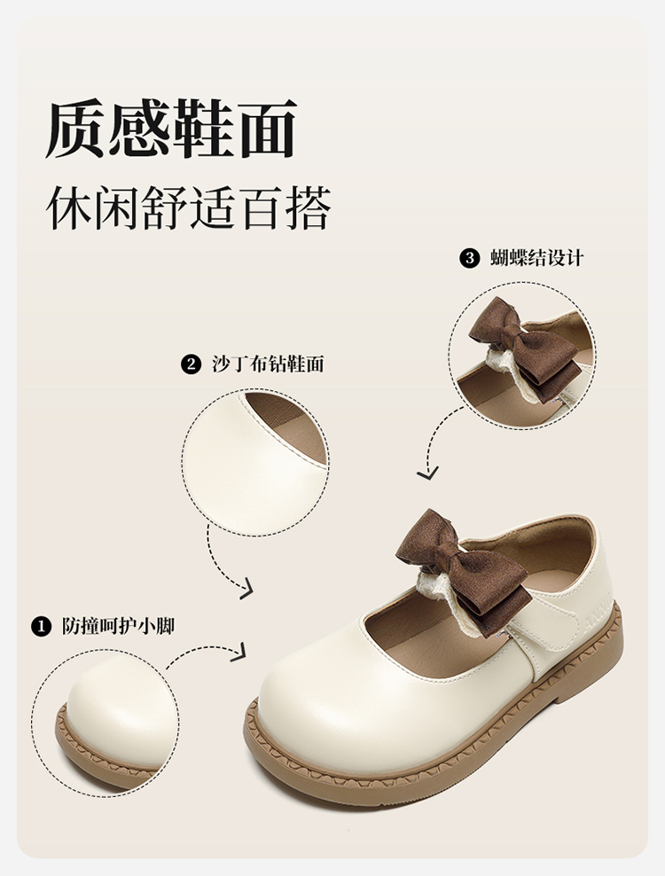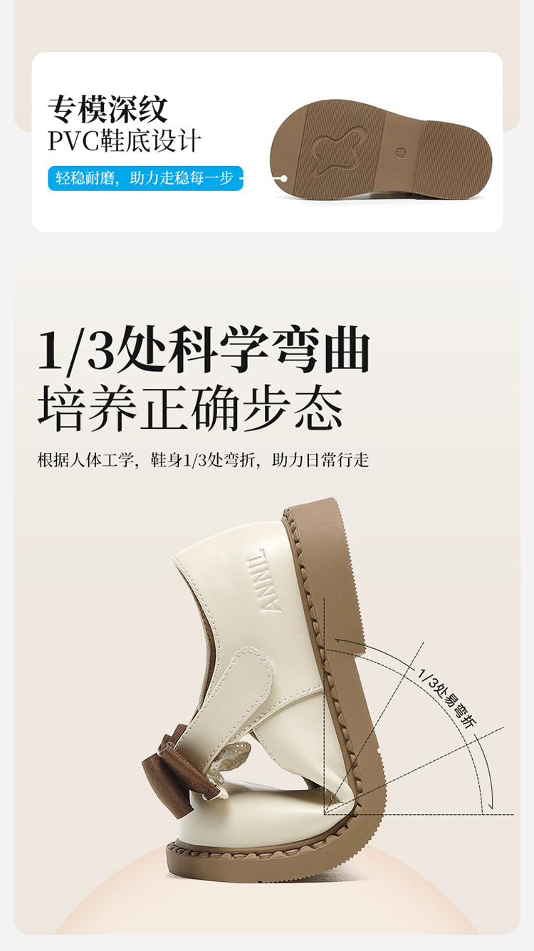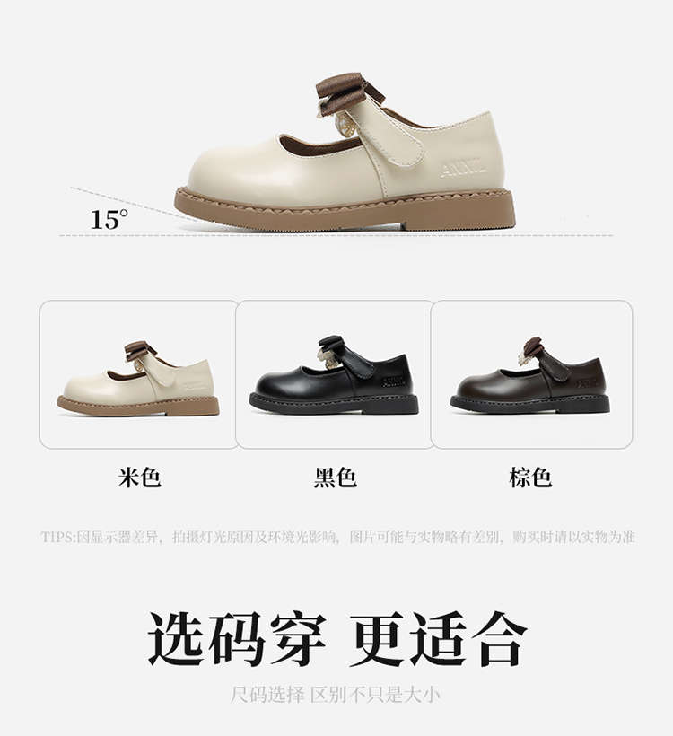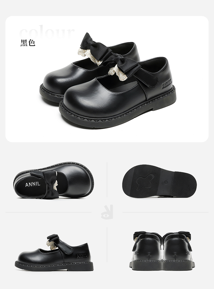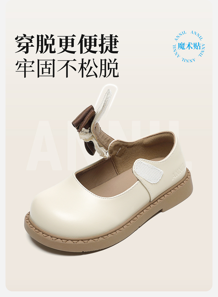 ANNIL/安奈儿韩版蝴蝶结女童皮鞋2024秋季新款儿童软底公主鞋潮HM4301066
