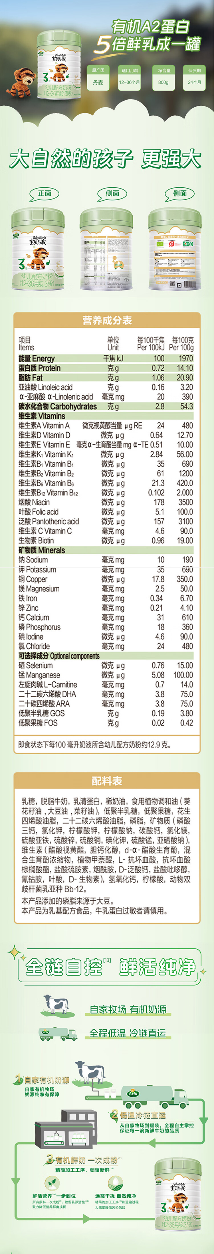 Arla宝贝与我有机幼儿配方奶粉3段800克