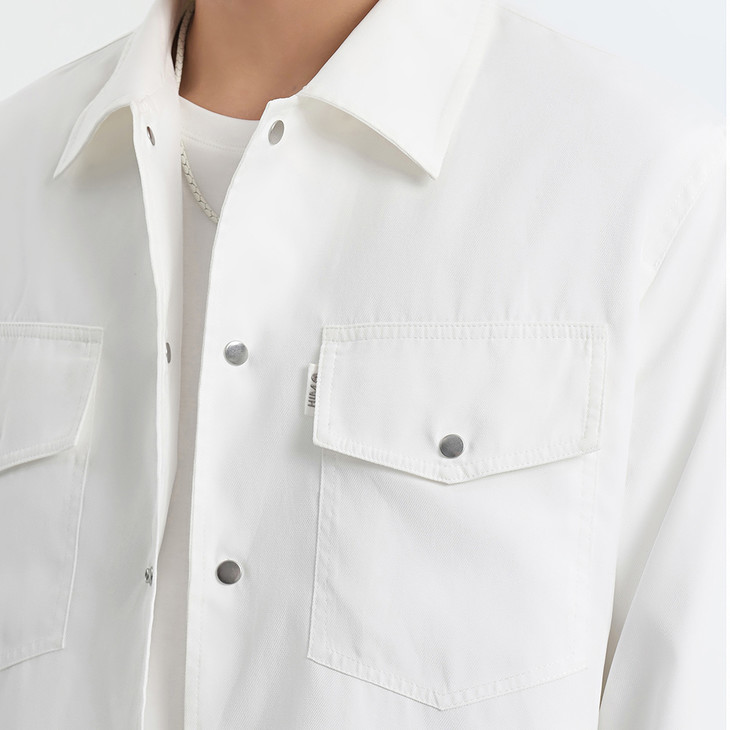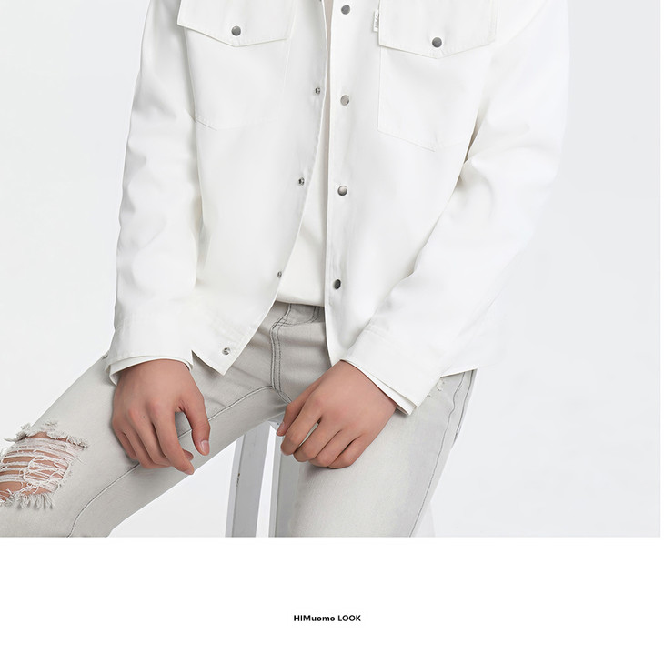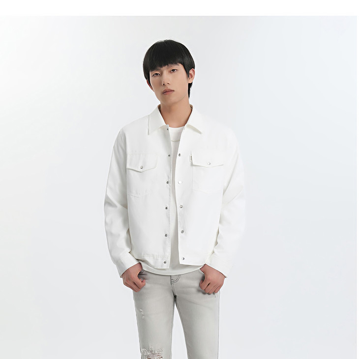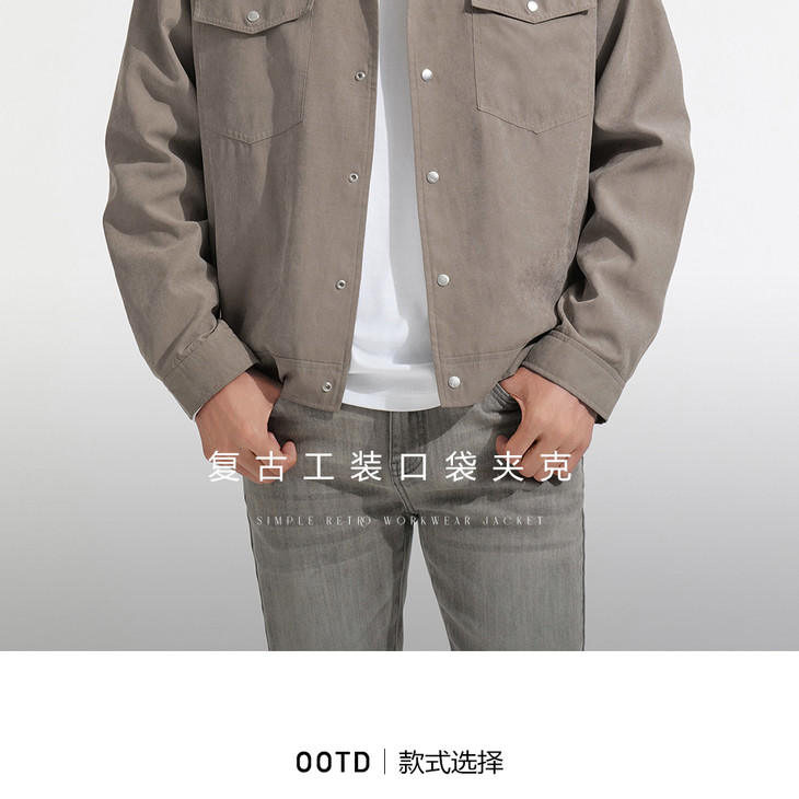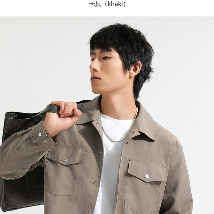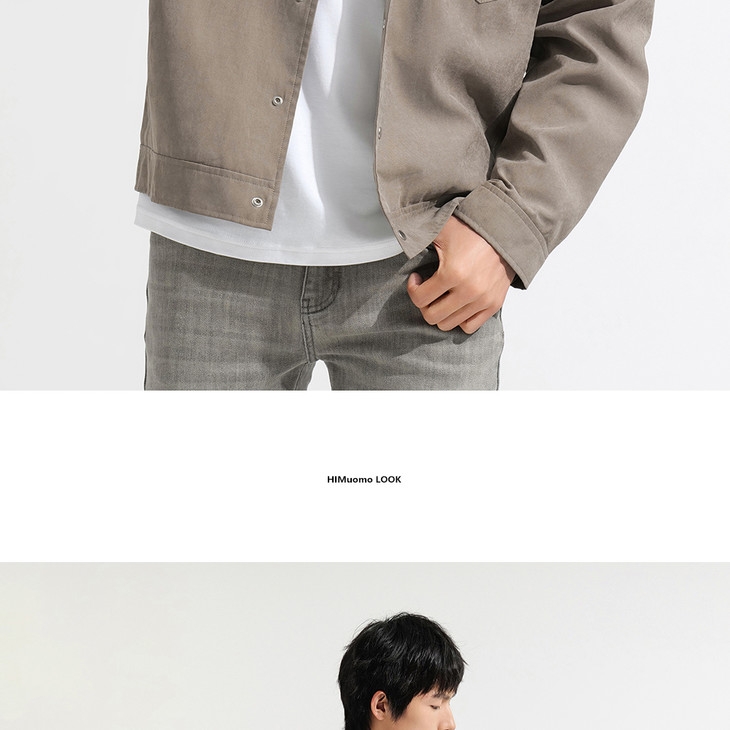 HIM漢崇 经典方领夹克男潮流舒适休闲工装排扣牛仔外套 2025秋季