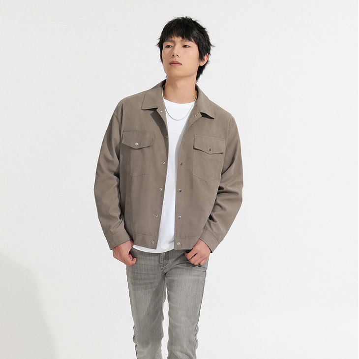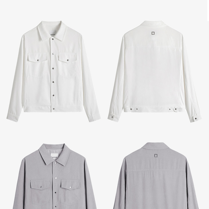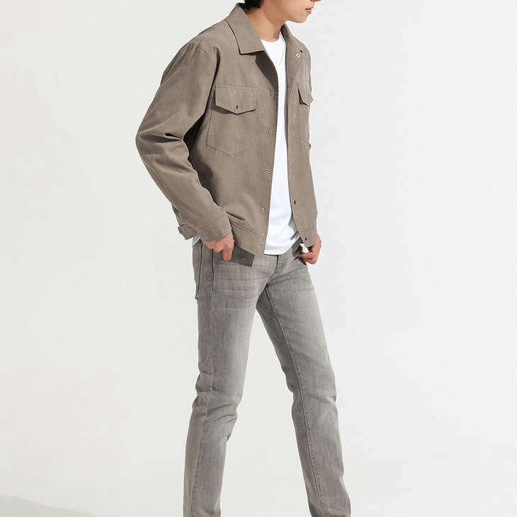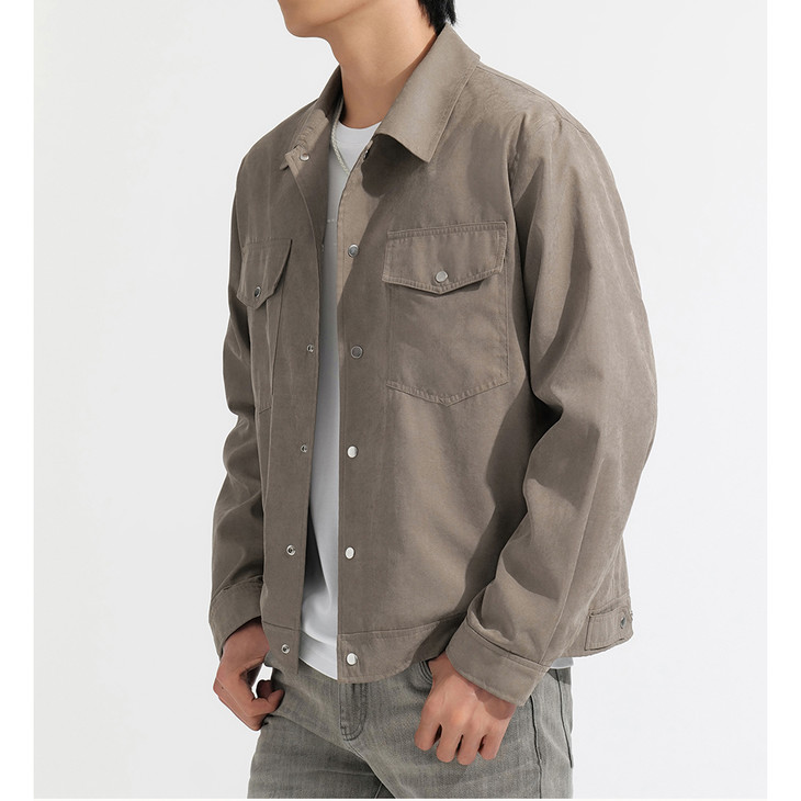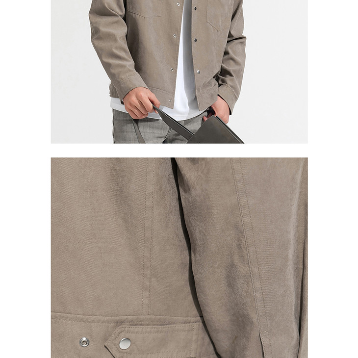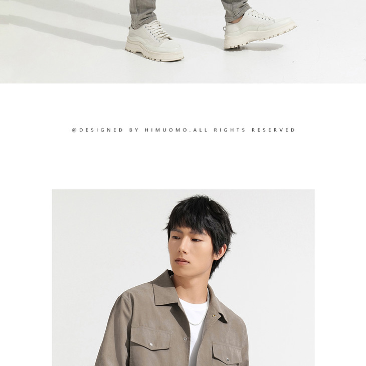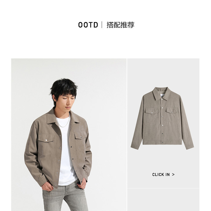HIM漢崇 经典方领夹克男潮流舒适休闲工装排扣牛仔外套 2025秋季