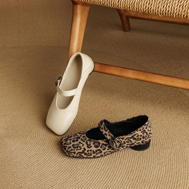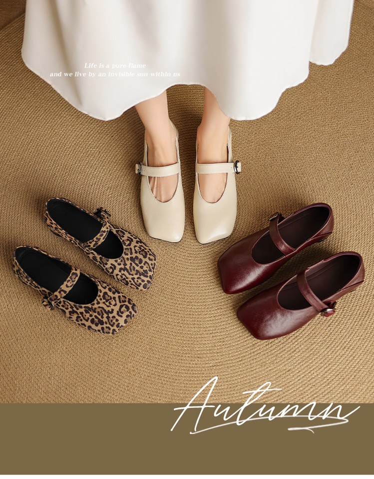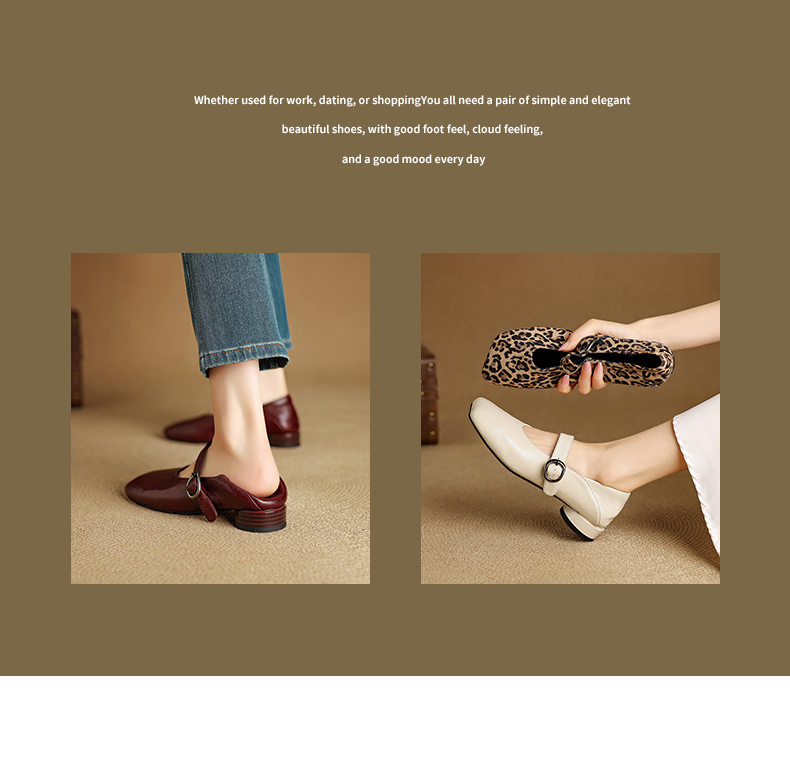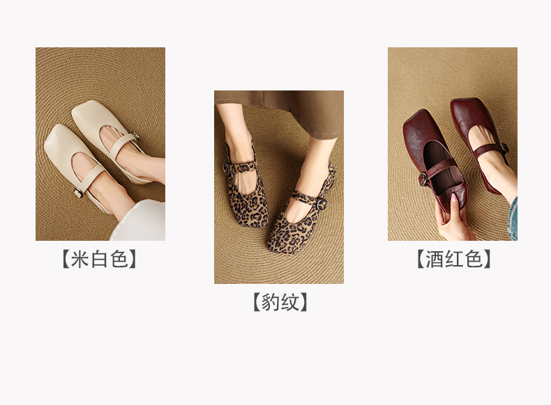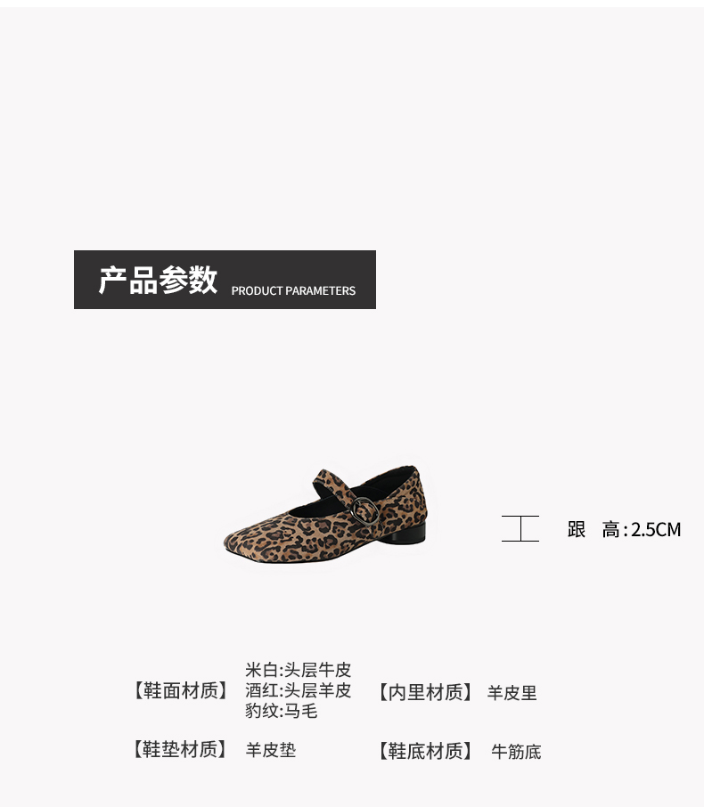 【帮面材质】米白头层牛皮、酒红头层羊皮、豹纹马毛