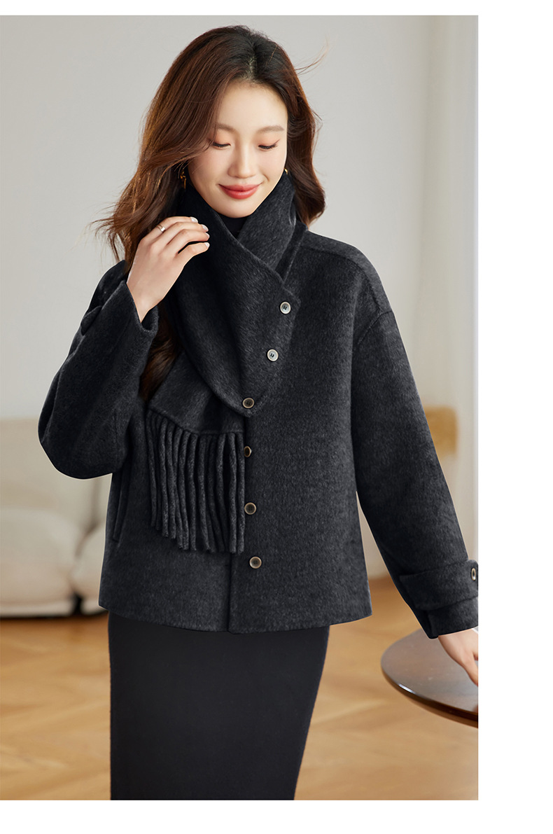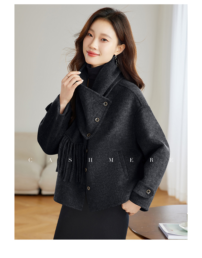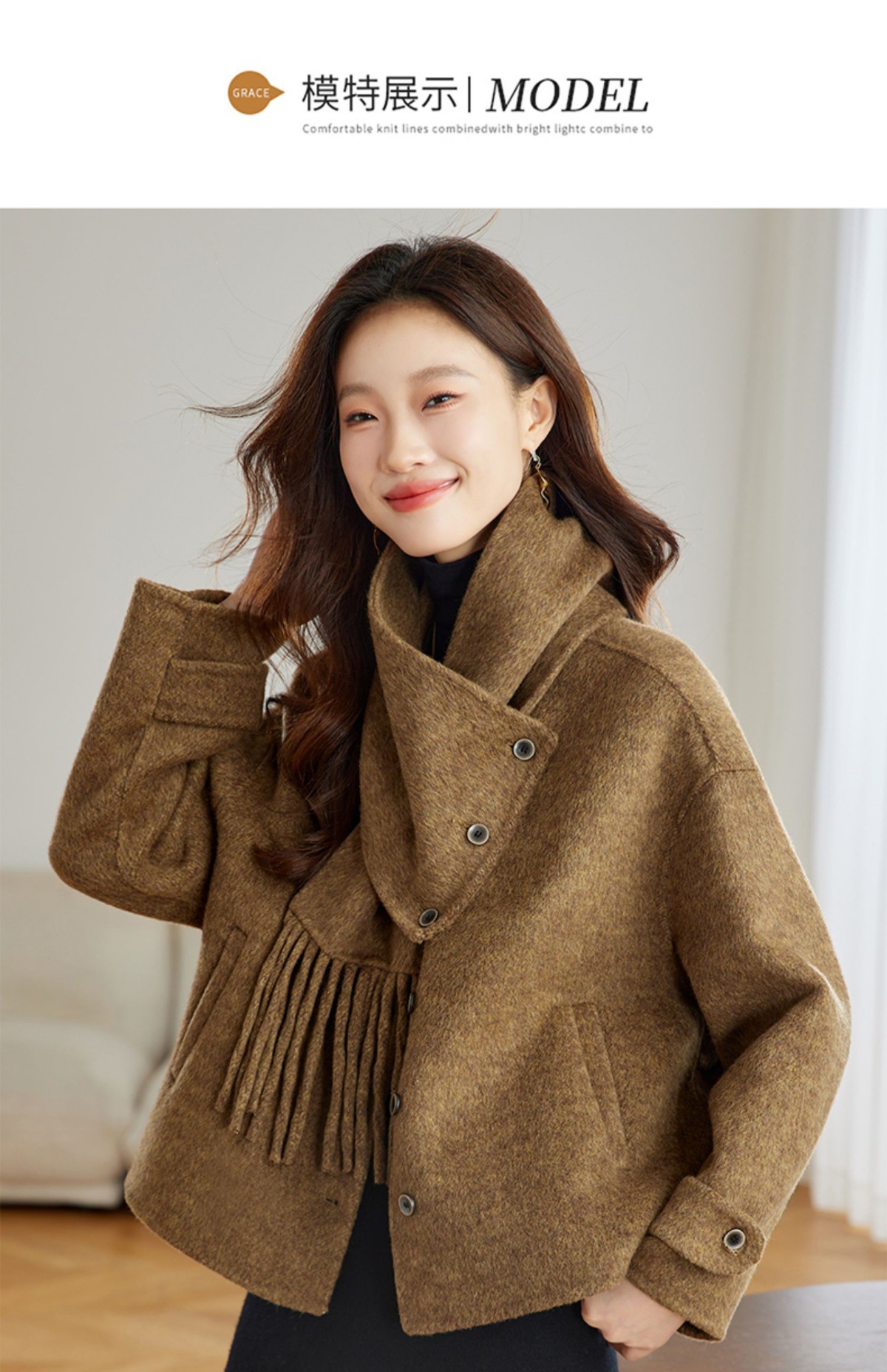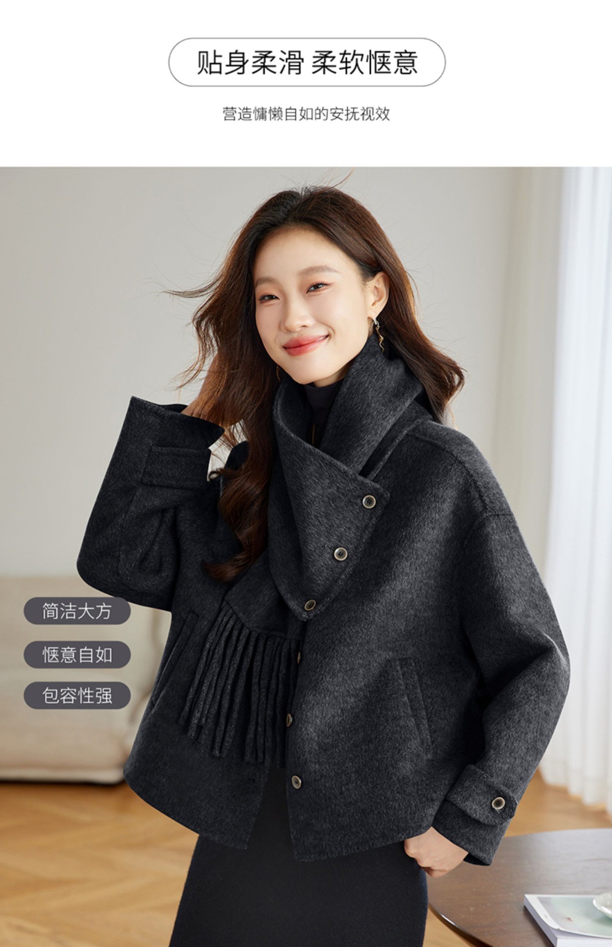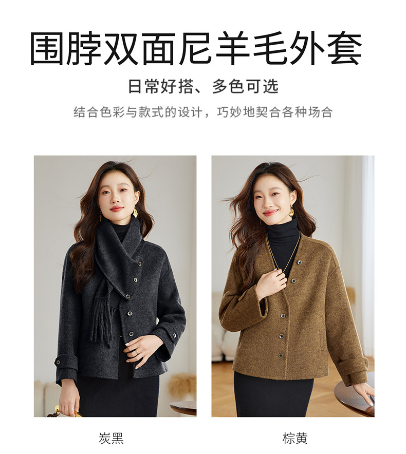 双面羊绒大衣设计感减龄,围巾领斗篷毛呢外套短款HR-ZYIF1120