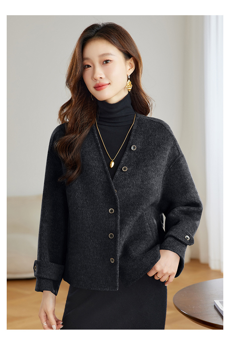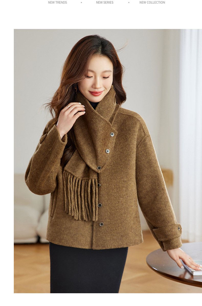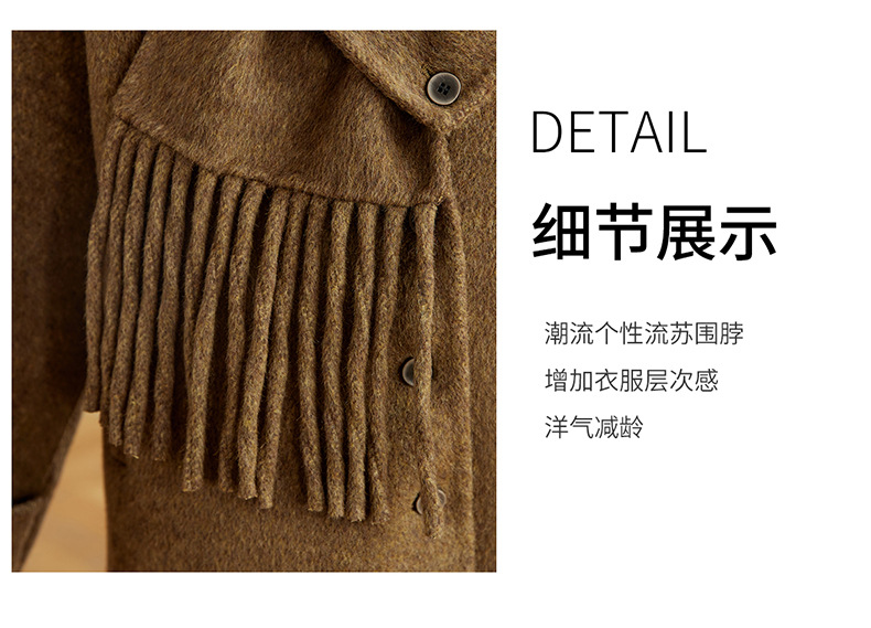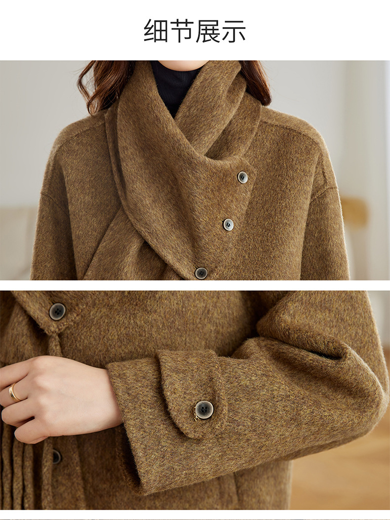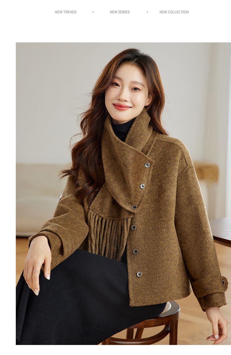 双面羊绒大衣设计感减龄,围巾领斗篷毛呢外套短款HR-ZYIF1120
