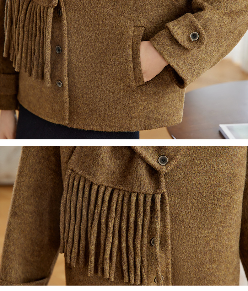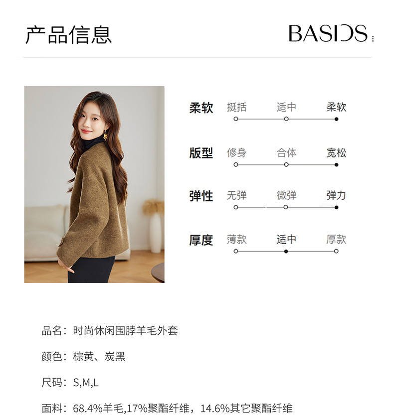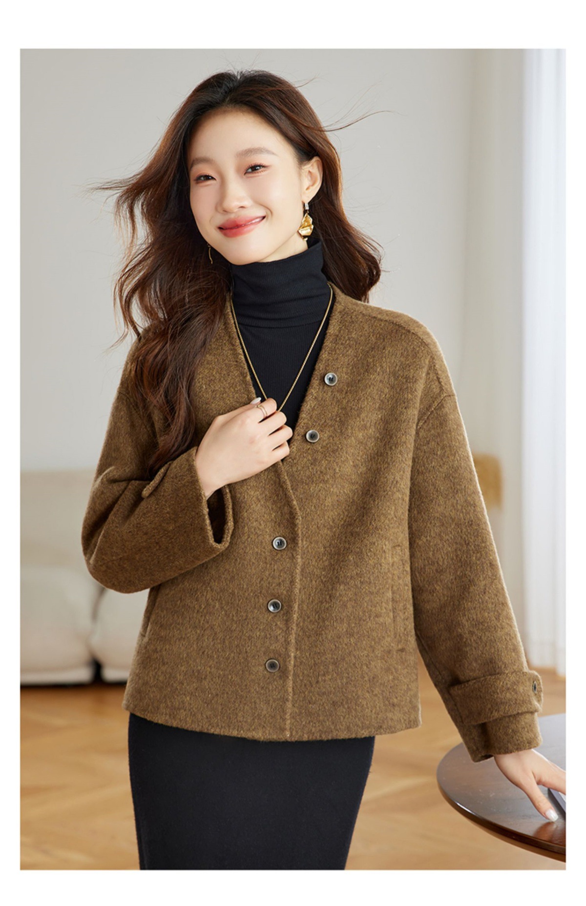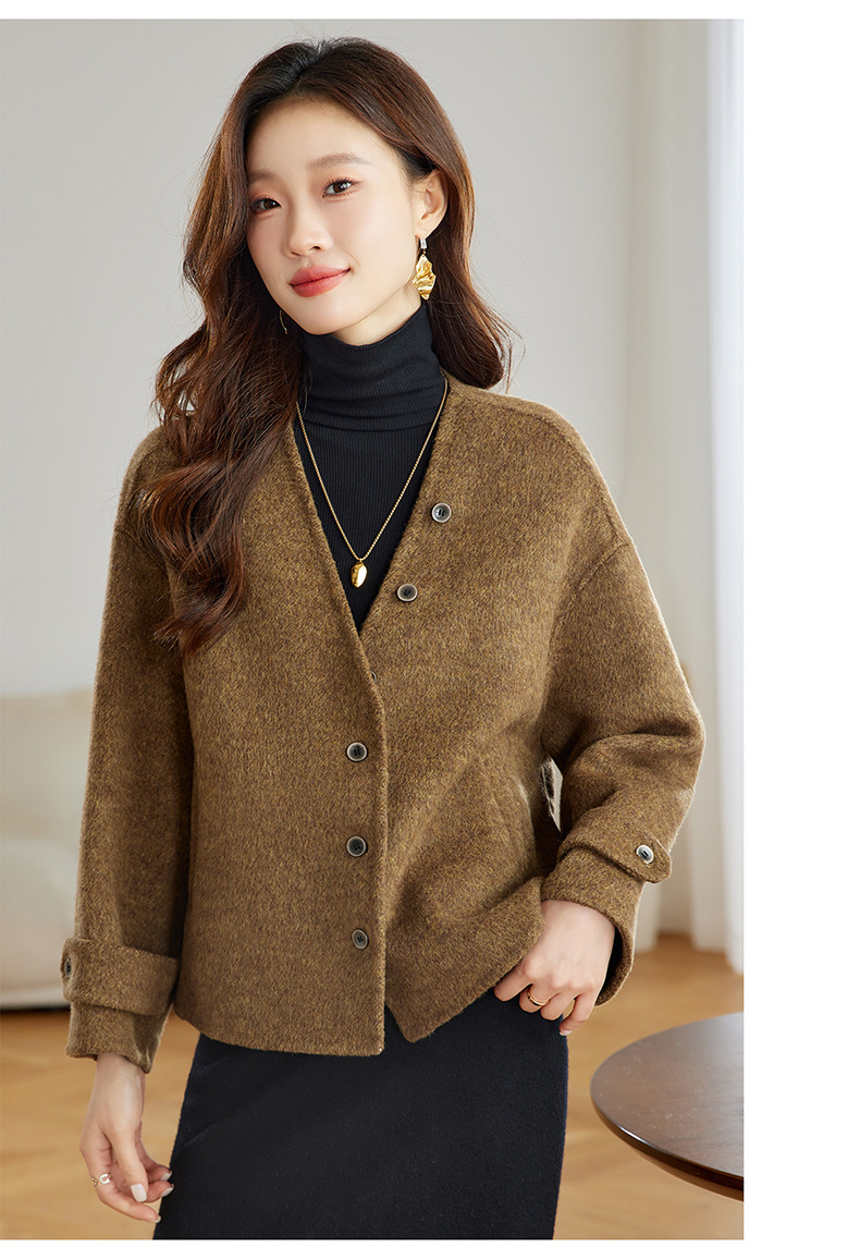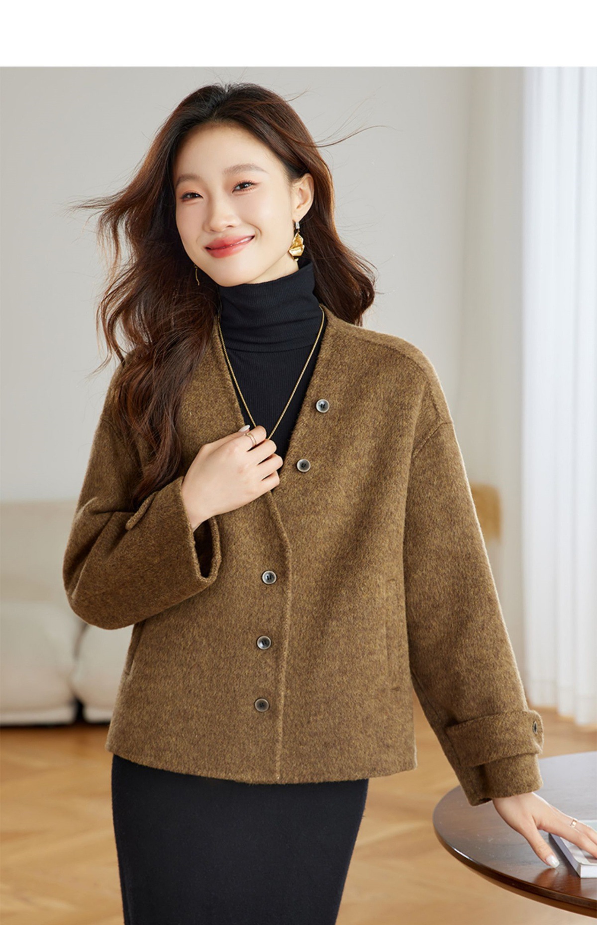 双面羊绒大衣设计感减龄,围巾领斗篷毛呢外套短款HR-ZYIF1120