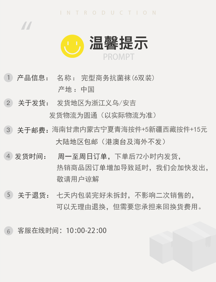 【无缝脚趾线 加固后跟】完型商务抗菌袜(6双装) 透气不臭脚 磁能导电纤维