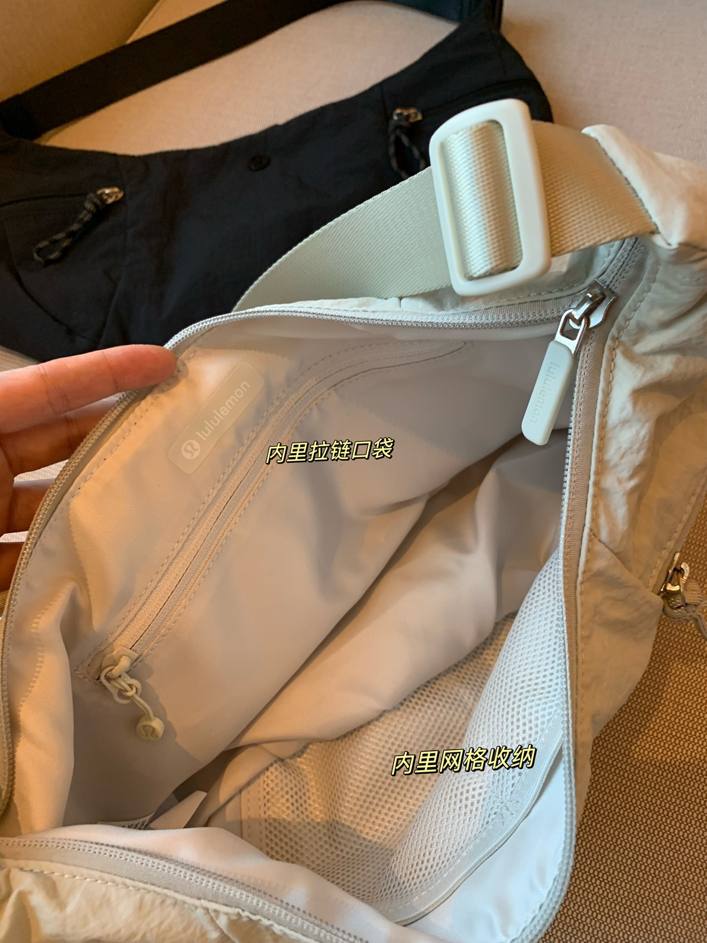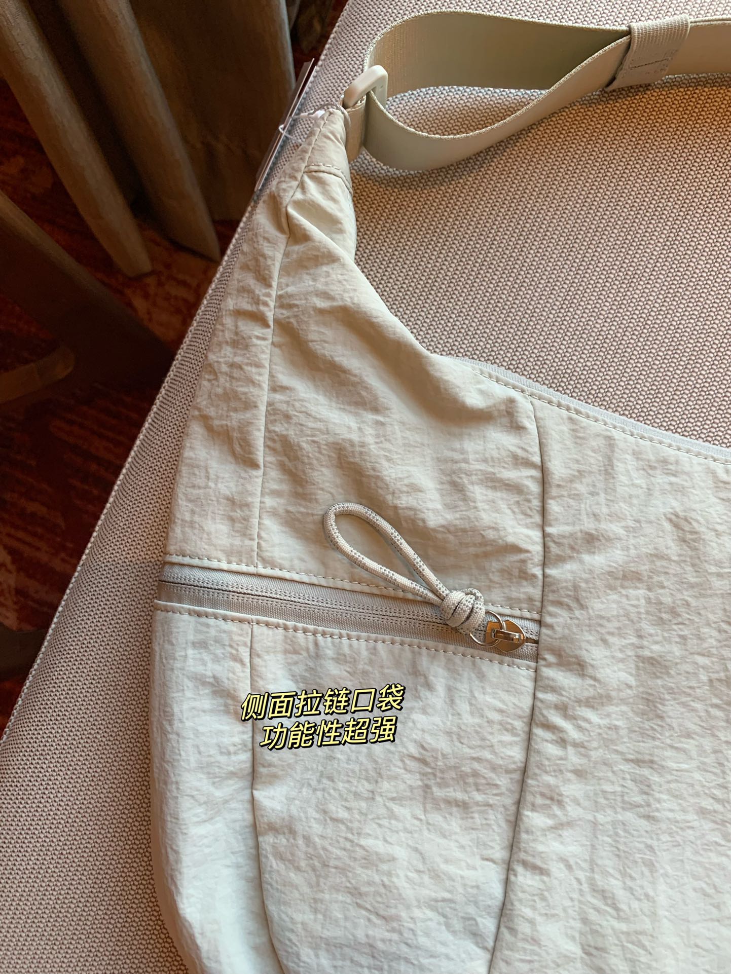 细节~ 功能性超强! 设计太贴心了。内里设计也很贴心 拉链口袋 ,网格收纳都有,出差背它,很舒服,轻便,不勒人,