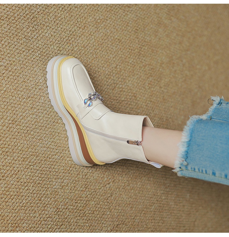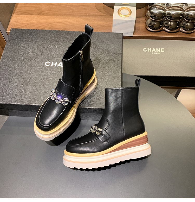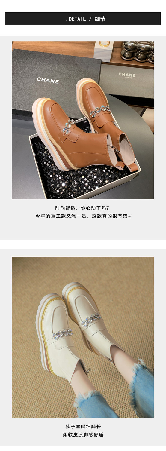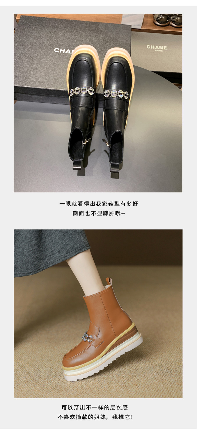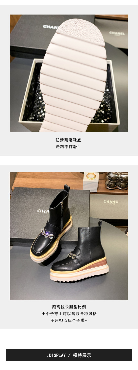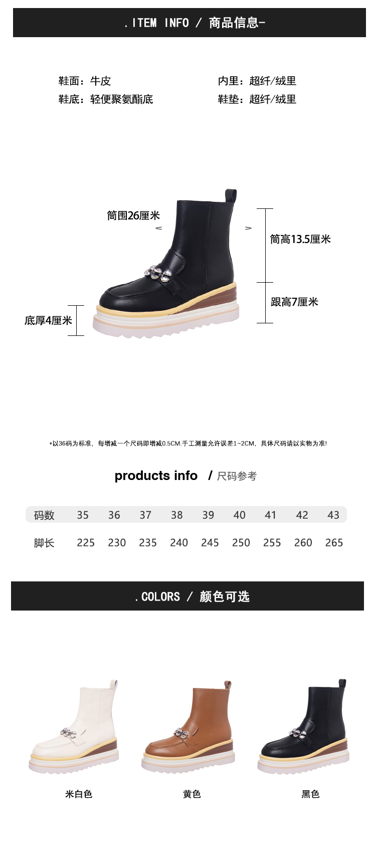 【预售5天】英伦风高跟坡跟松糕底短靴女侧拉链秋冬新款加绒马丁靴ZMXY&ZM2583-1