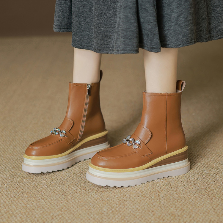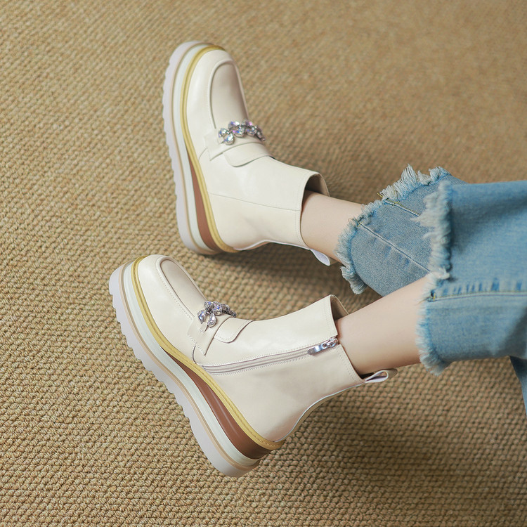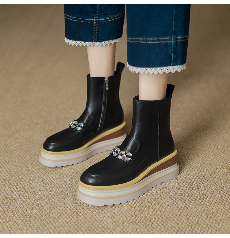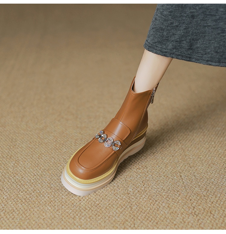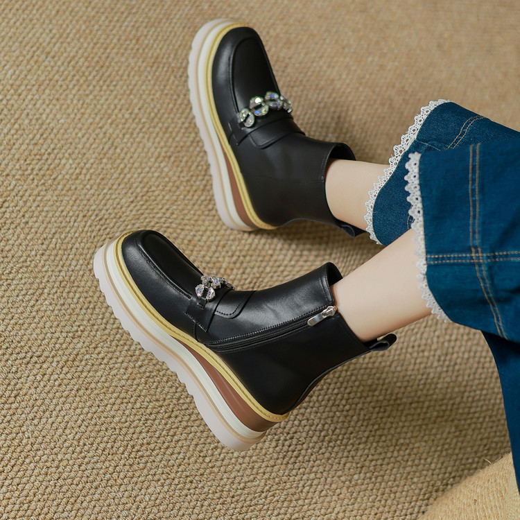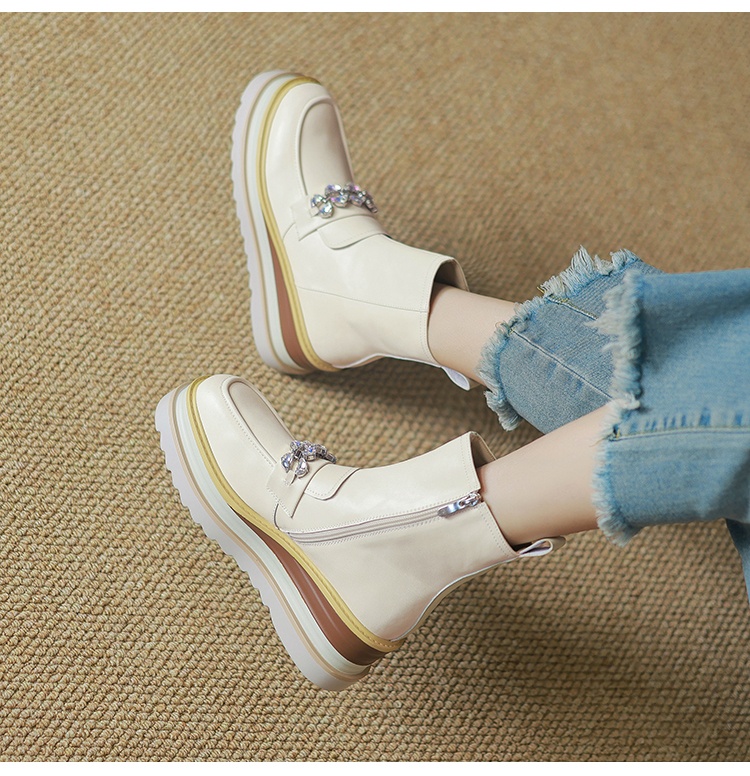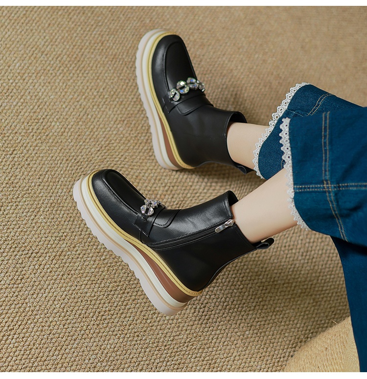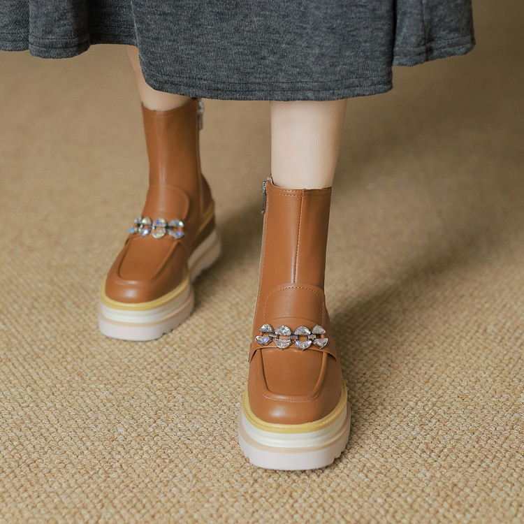【预售5天】英伦风高跟坡跟松糕底短靴女侧拉链秋冬新款加绒马丁靴ZMXY&ZM2583-1