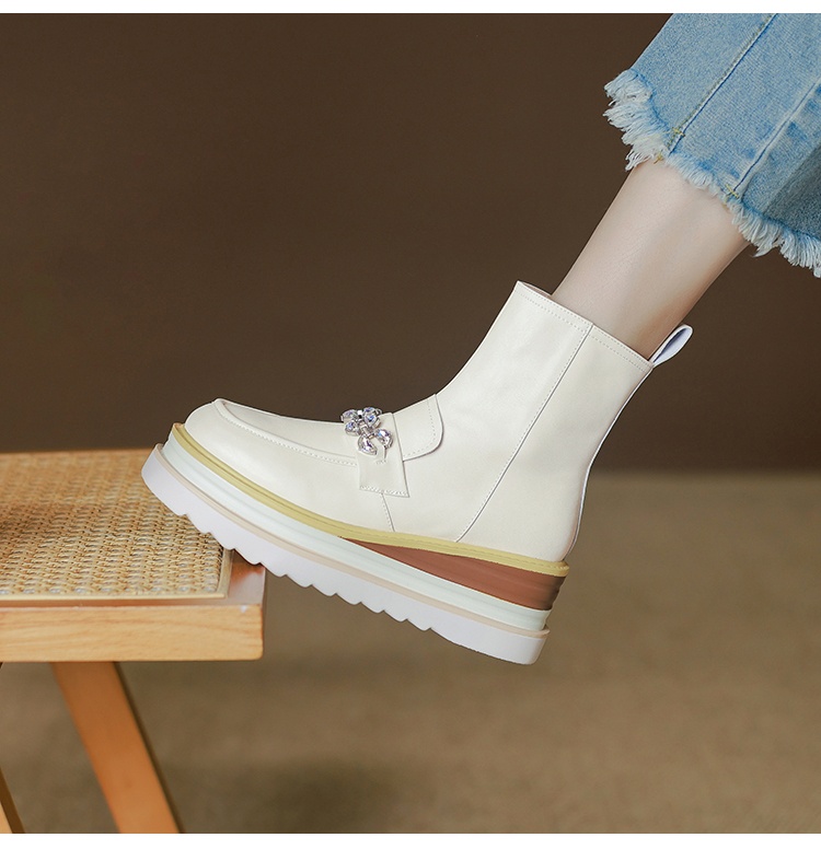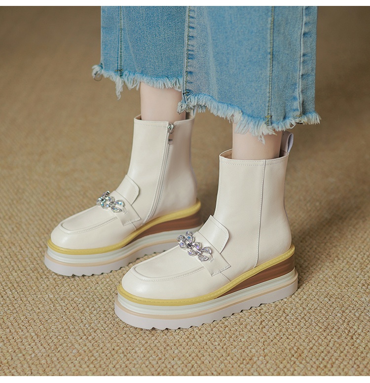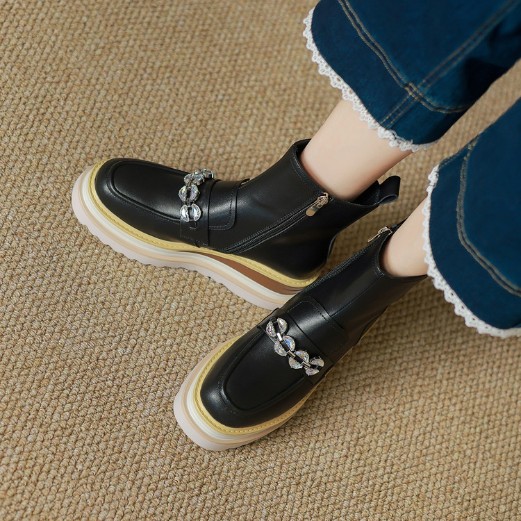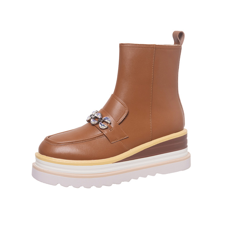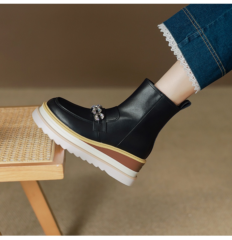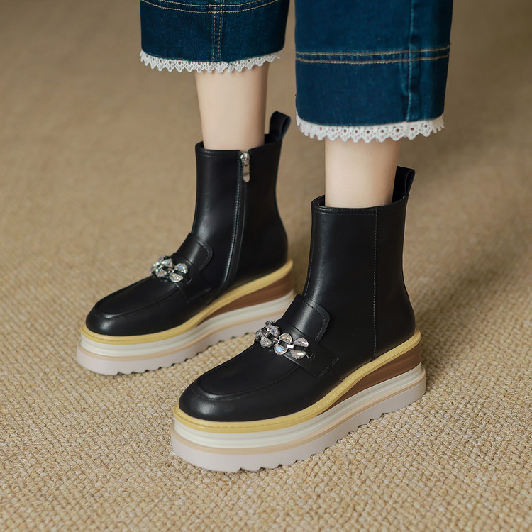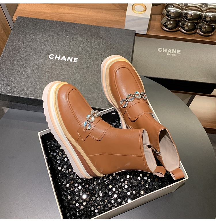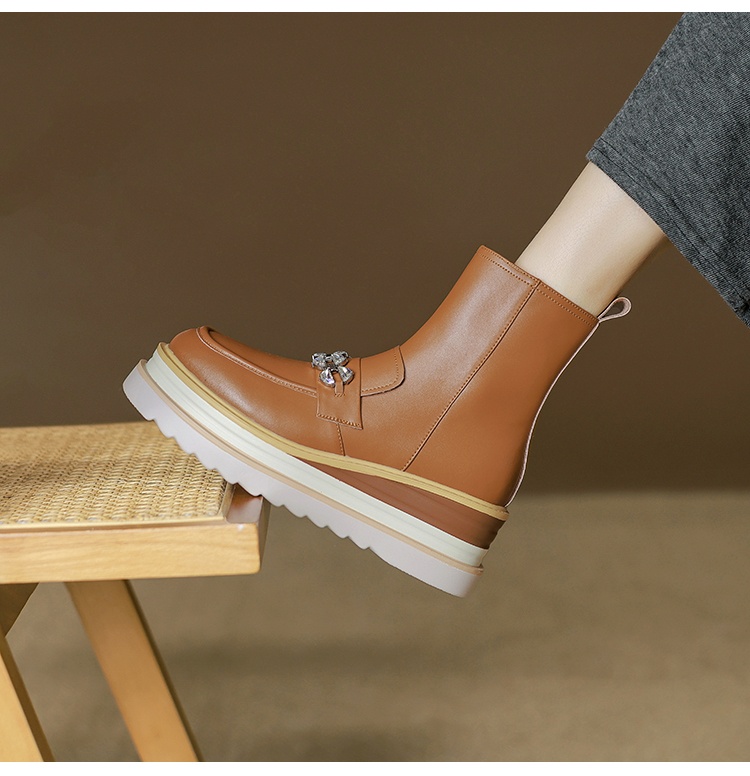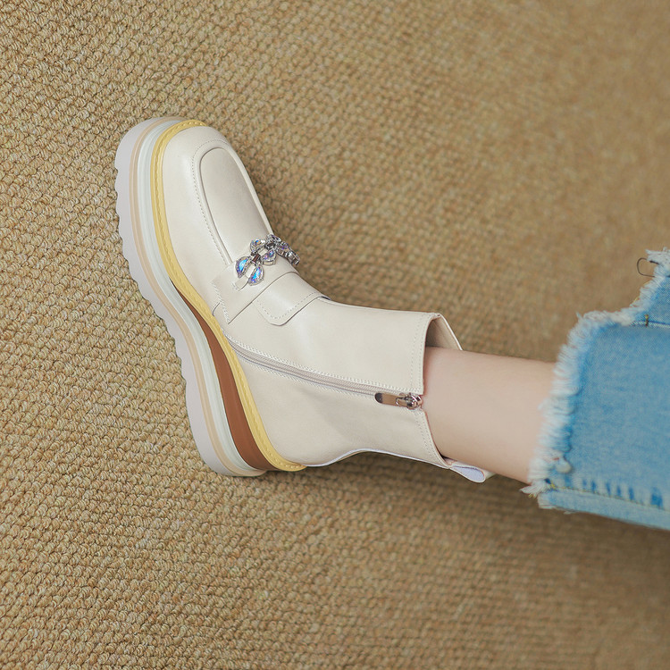【预售5天】英伦风高跟坡跟松糕底短靴女侧拉链秋冬新款加绒马丁靴ZMXY&ZM2583-1