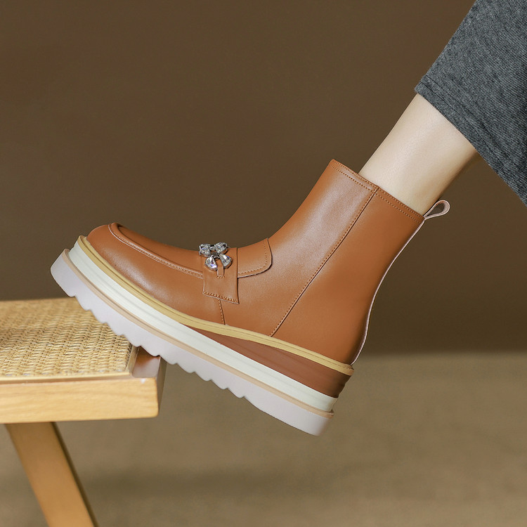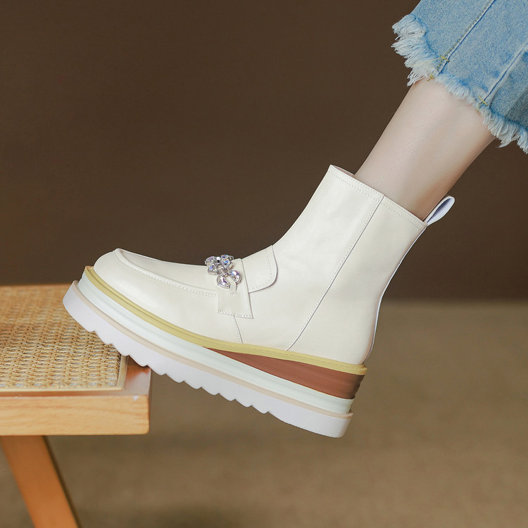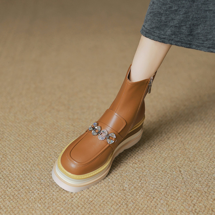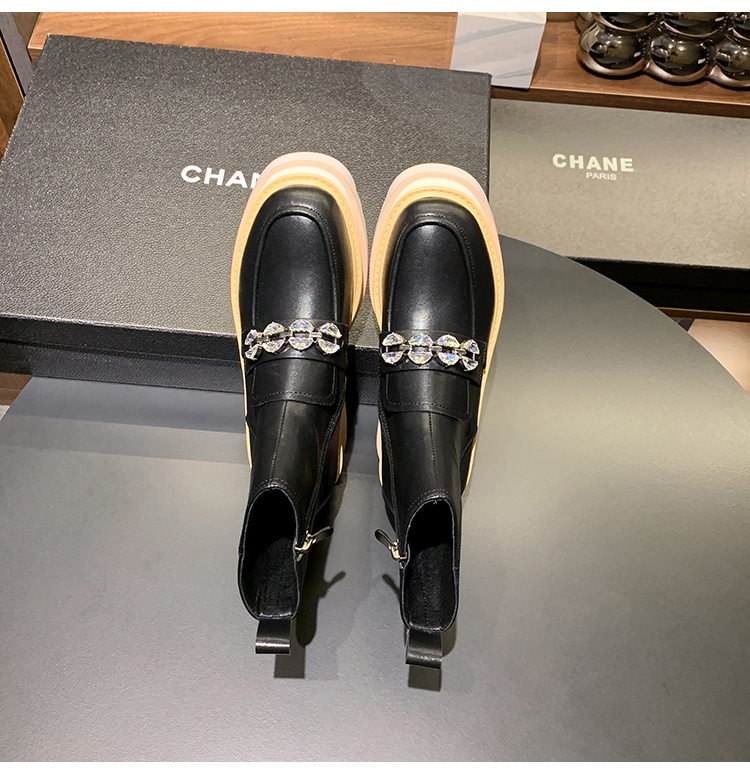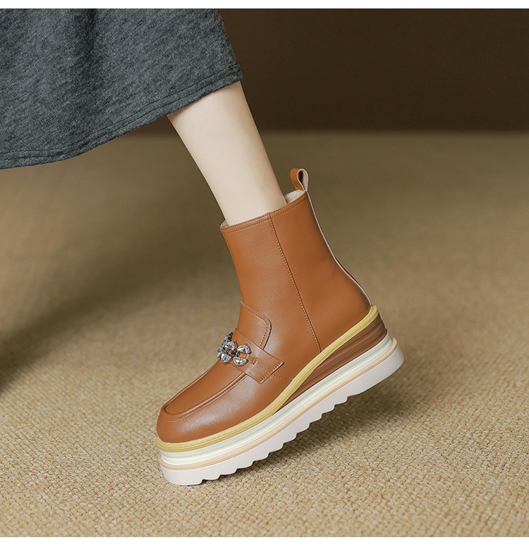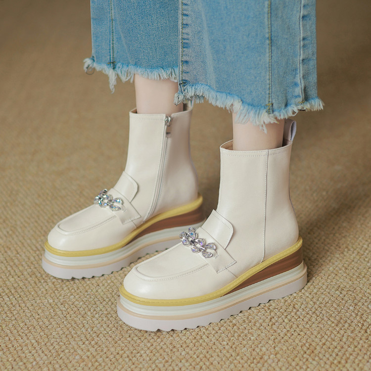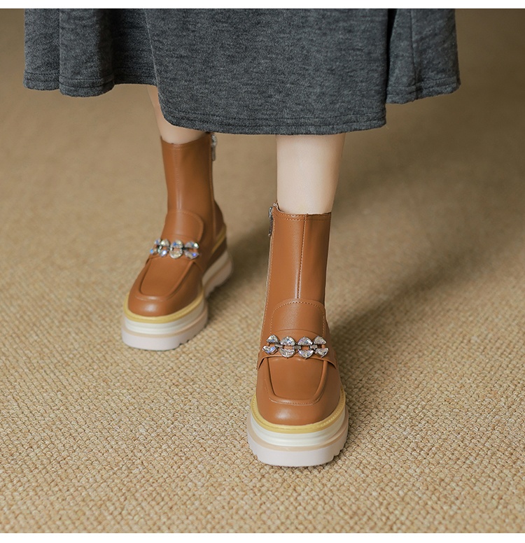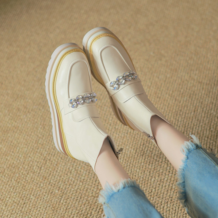 【预售5天】英伦风高跟坡跟松糕底短靴女侧拉链秋冬新款加绒马丁靴ZMXY&ZM2583-1