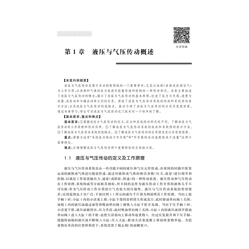 全书分为液压与气压两部分,液压部分有液压气压传动与控制概述、液压传动流体力学基础、液压动力原件、液压执行元件、液压控制阀、液压辅助元件、液压基本回路、液压传动系统实例、液压传动系统的安装调试与故障分析、液压系统的设计计算等章节组成;气压部分的所有知识都放在气压传动一章里面,相对简单一些,内容的安排与液压部分大致相同,并且都有液压与气压实训方面的内容。每个章节都有内容提要,基本要求、重点和难点等,让学者有大致的了解。以“实用、适用、够用”为基本原则,做到重点突出、叙述简洁、易教易学。突出实用性、基础性、先进性,强调基本知识,结合实际应用,理论与实践相结合。