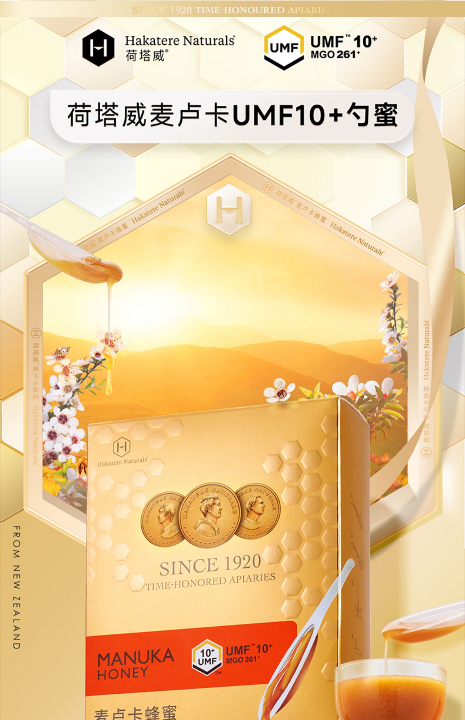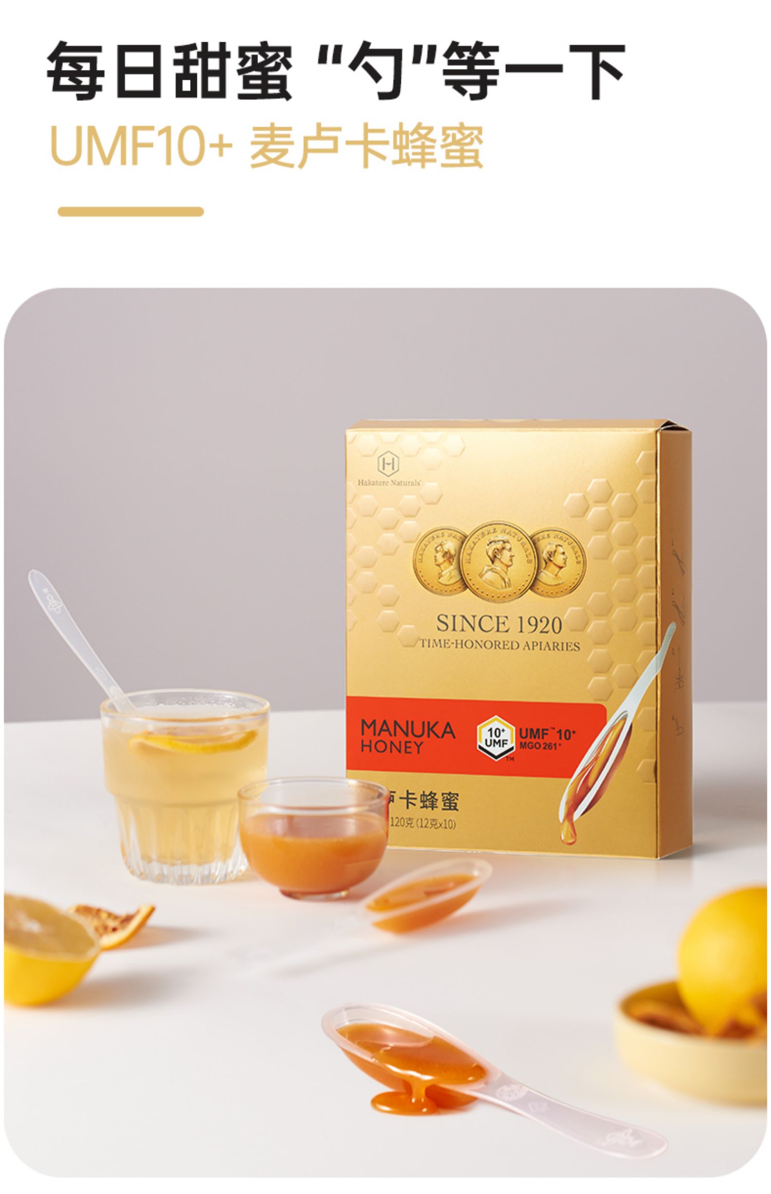 【新鲜市集】荷塔威纯麦卢卡蜂蜜UMF10+独立小包装便捷勺蜜12g*10支新西兰进口