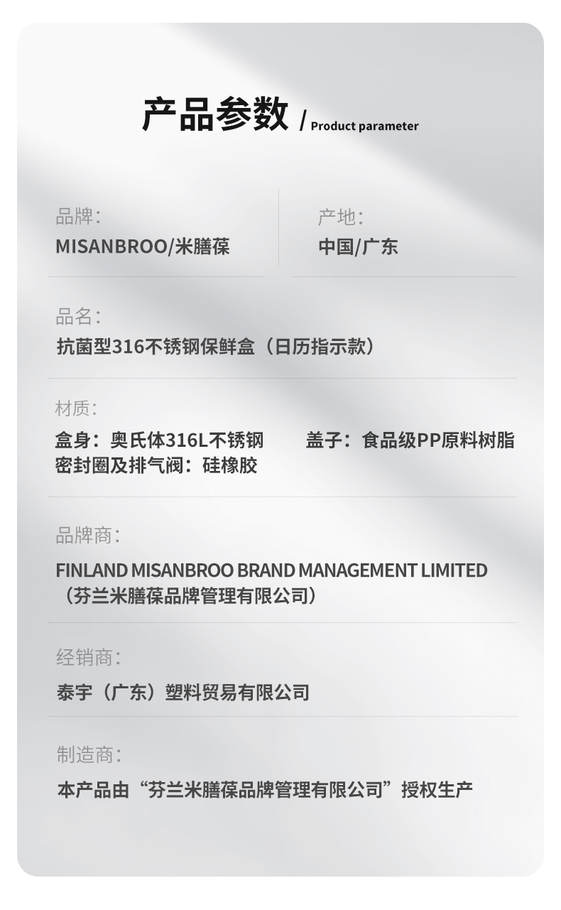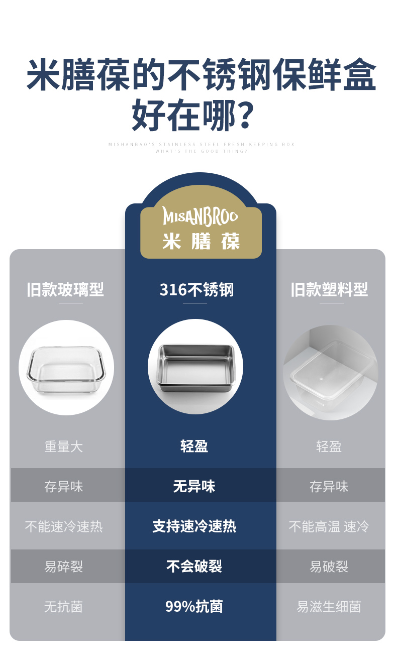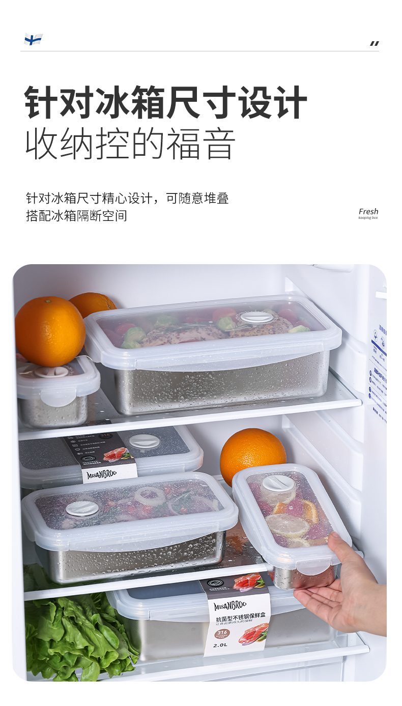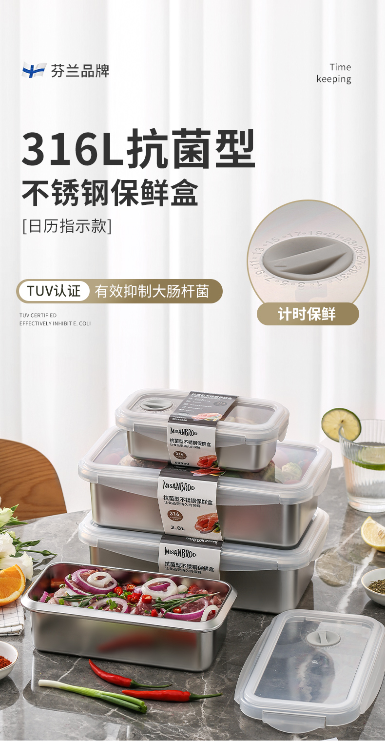 MISANBROO米膳葆 新款316不锈钢保鲜盒 日历指示款/超大容量可沥水款