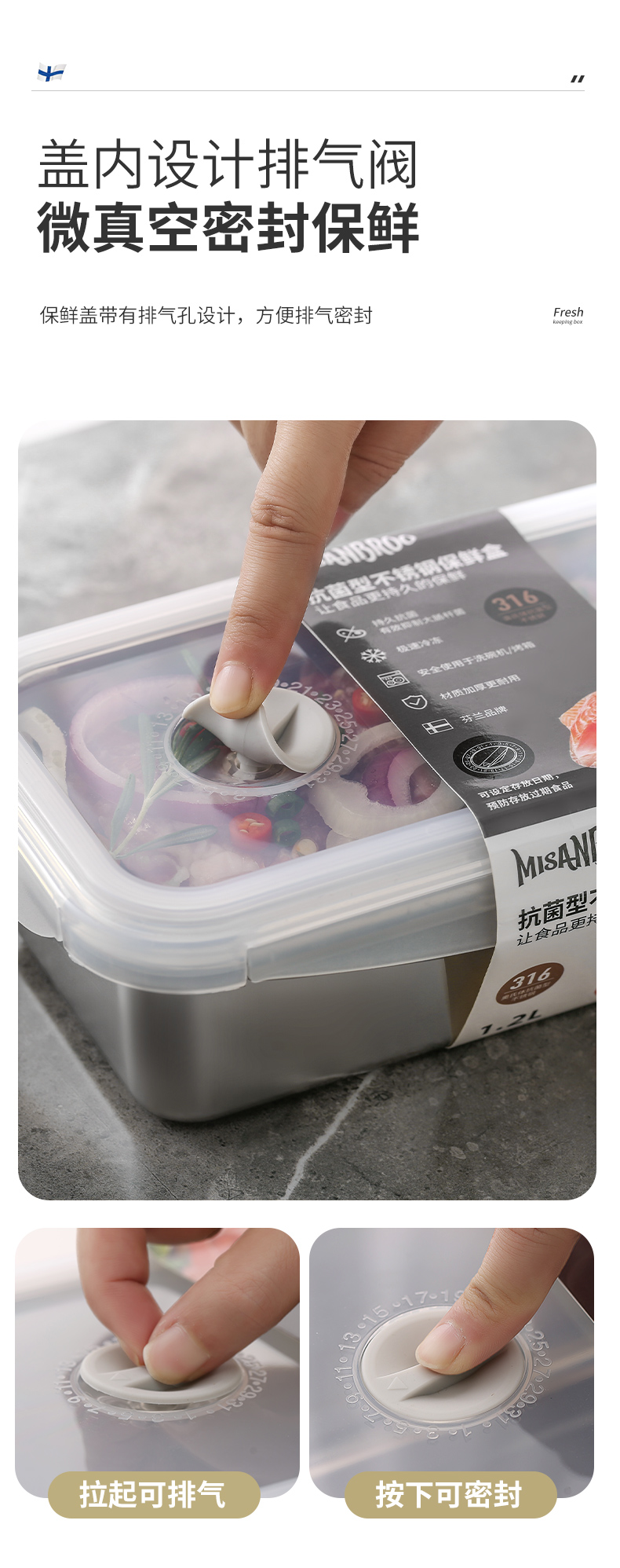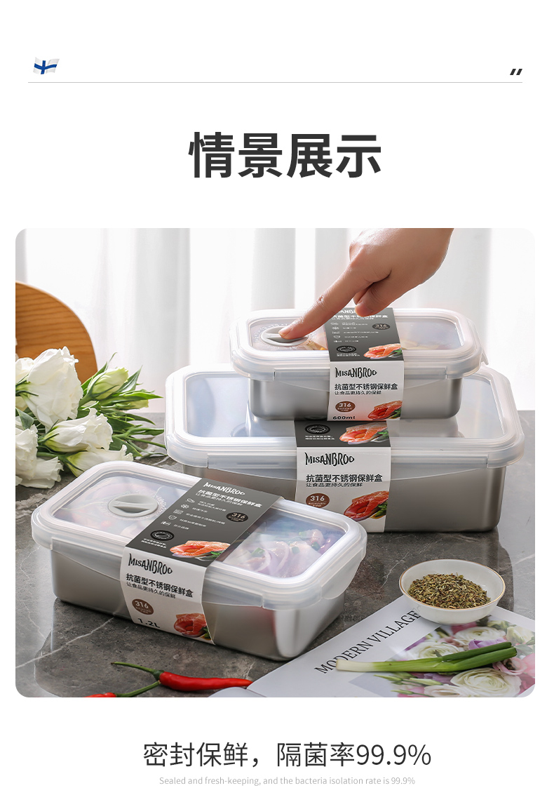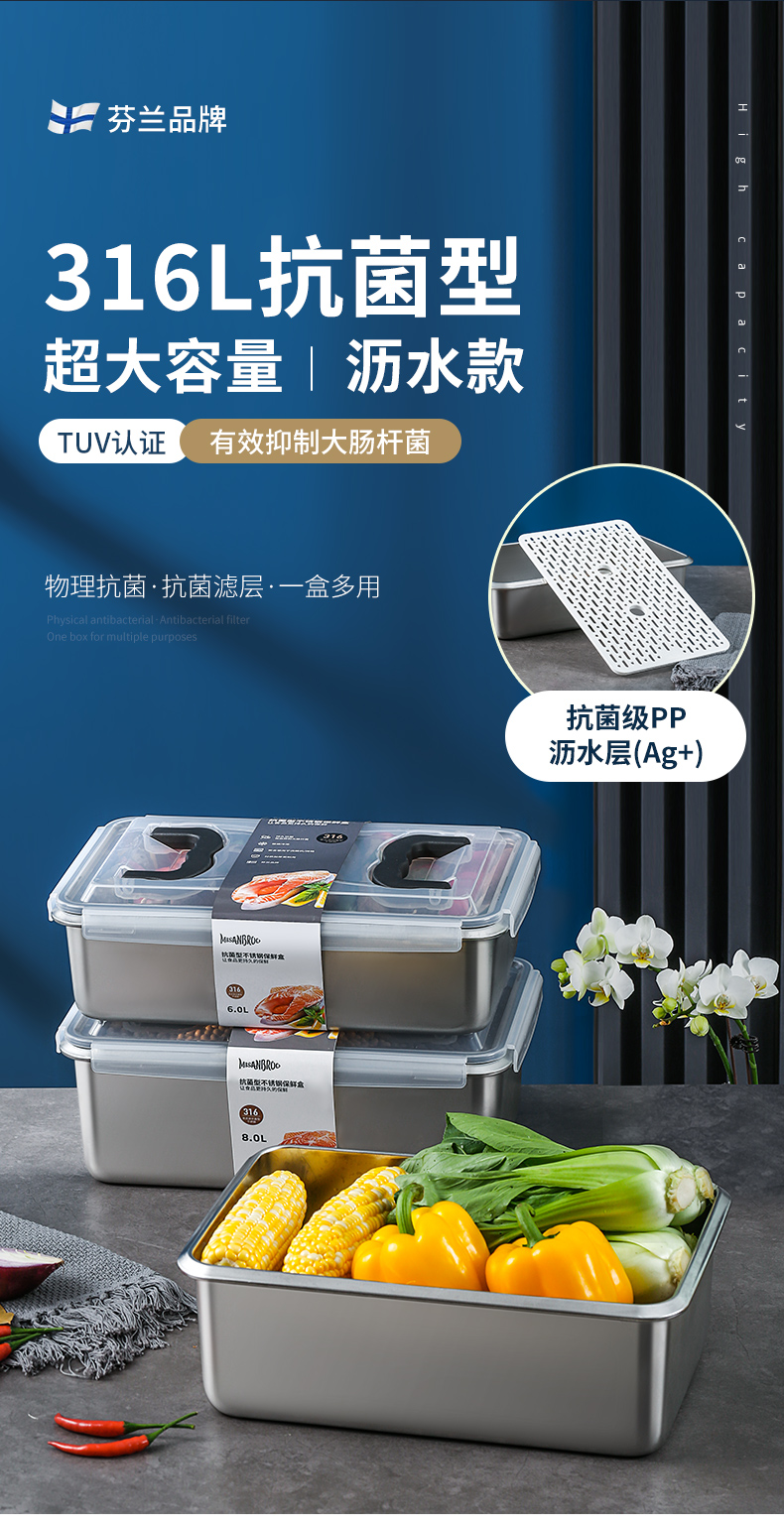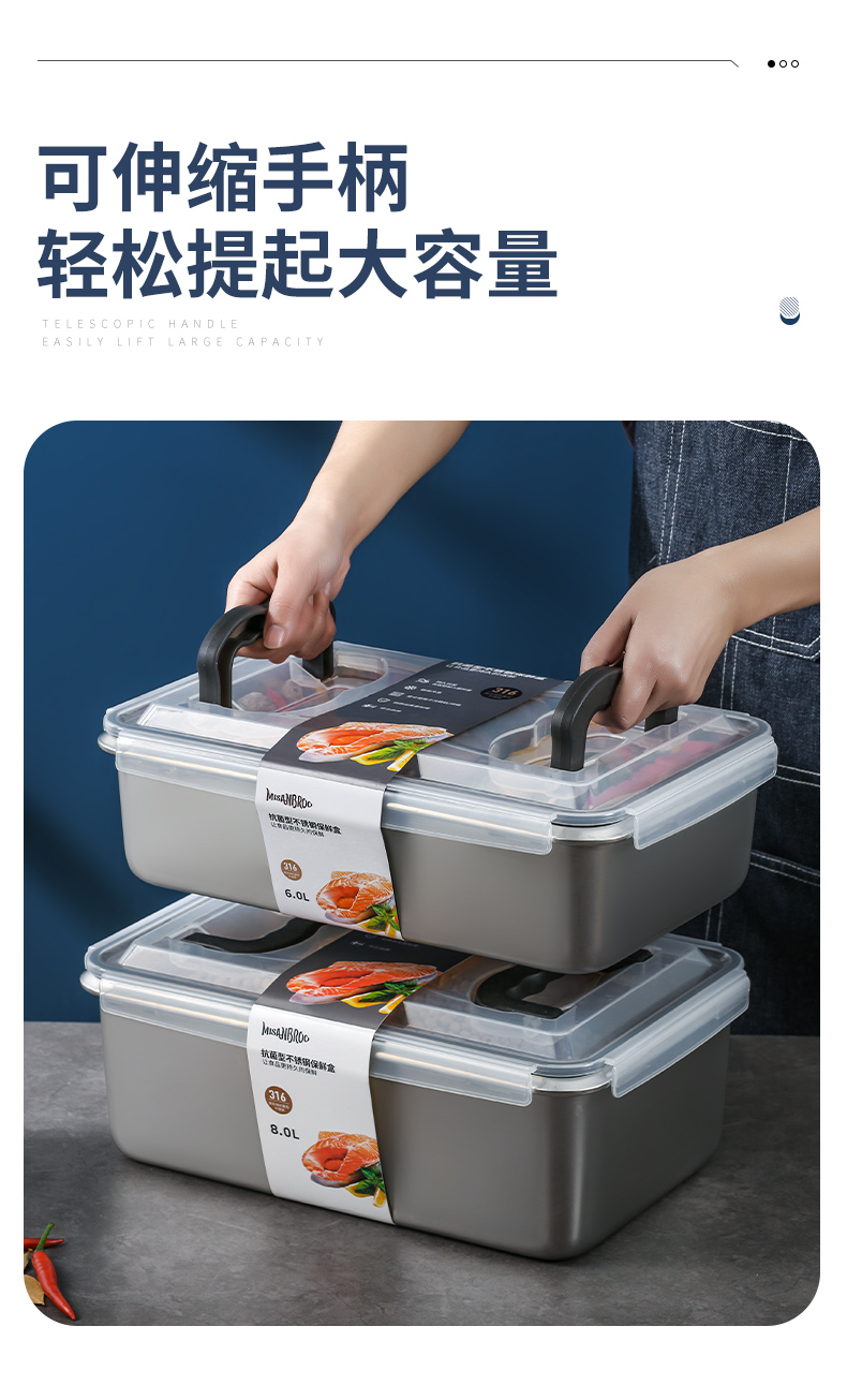 MISANBROO米膳葆 新款316不锈钢保鲜盒 日历指示款/超大容量可沥水款