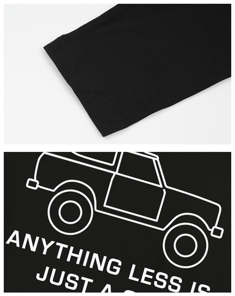 自由基地秋冬新款简约car图案打底长袖T恤经典黑白色团队休闲队服 NMT-1917
