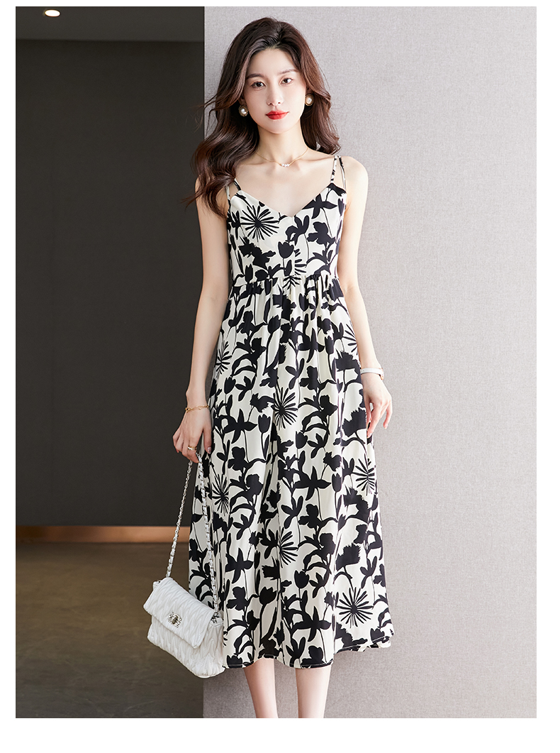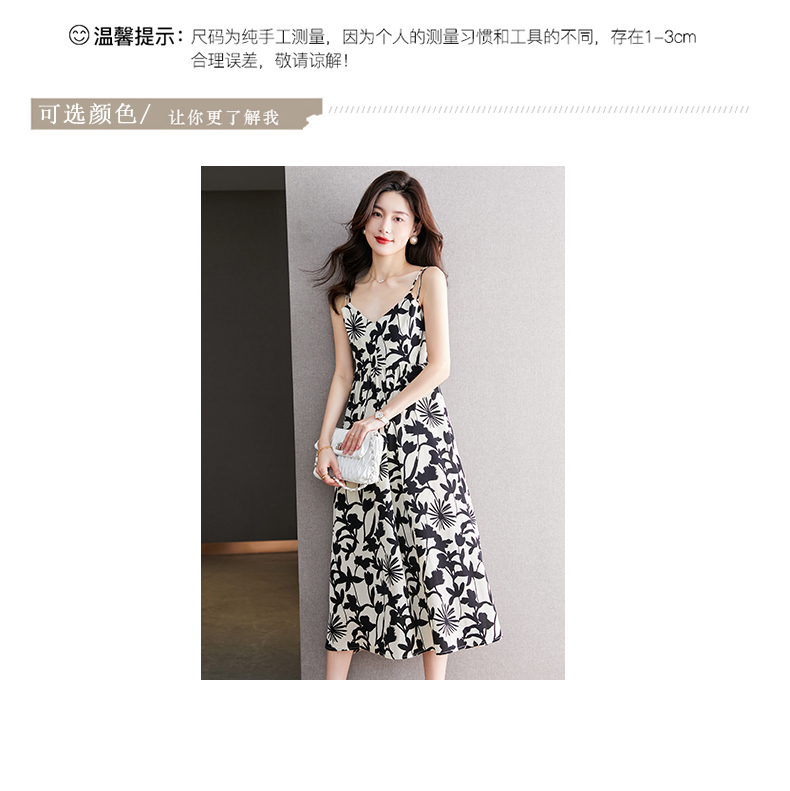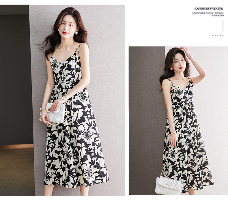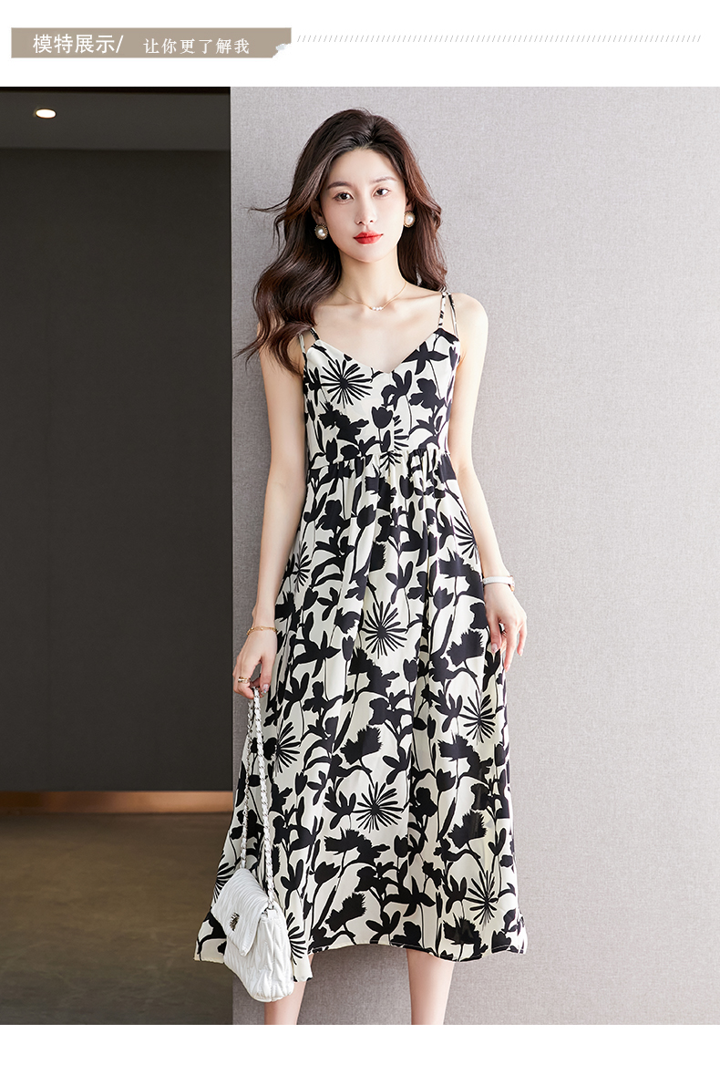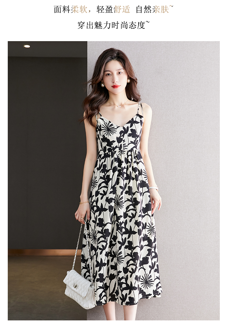 夏季新款,洋气V领吊带中长款雪纺连衣裙成熟风气质宽松裙子女CC-J3439