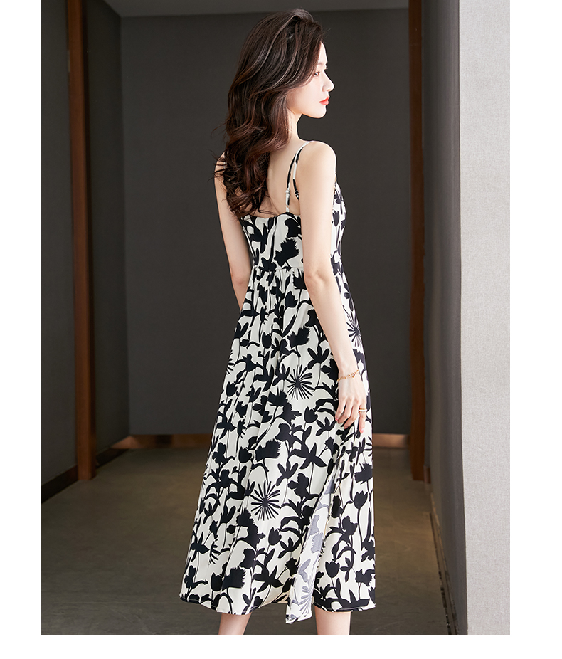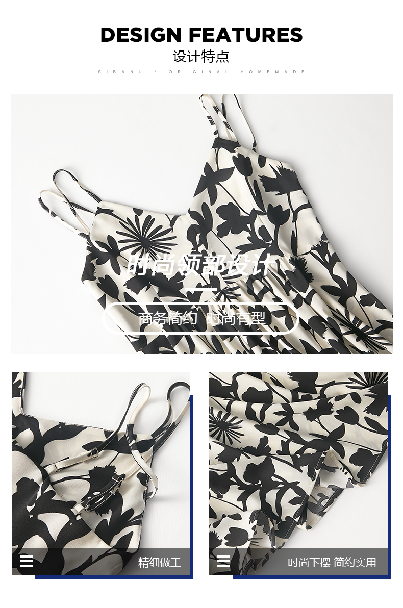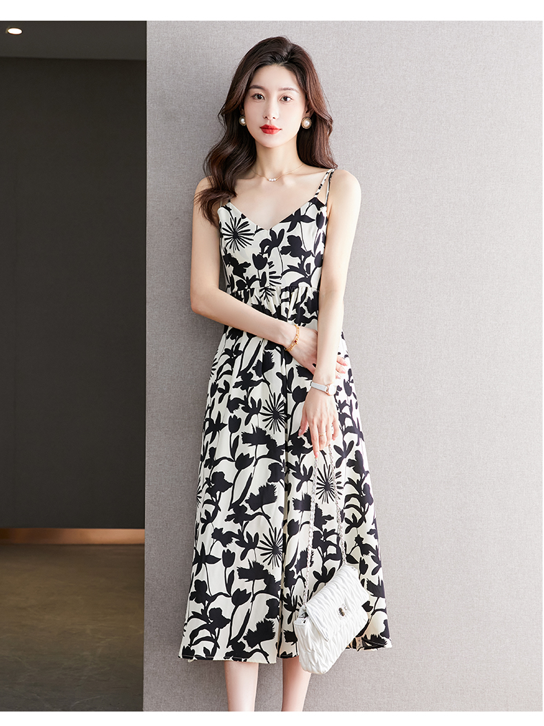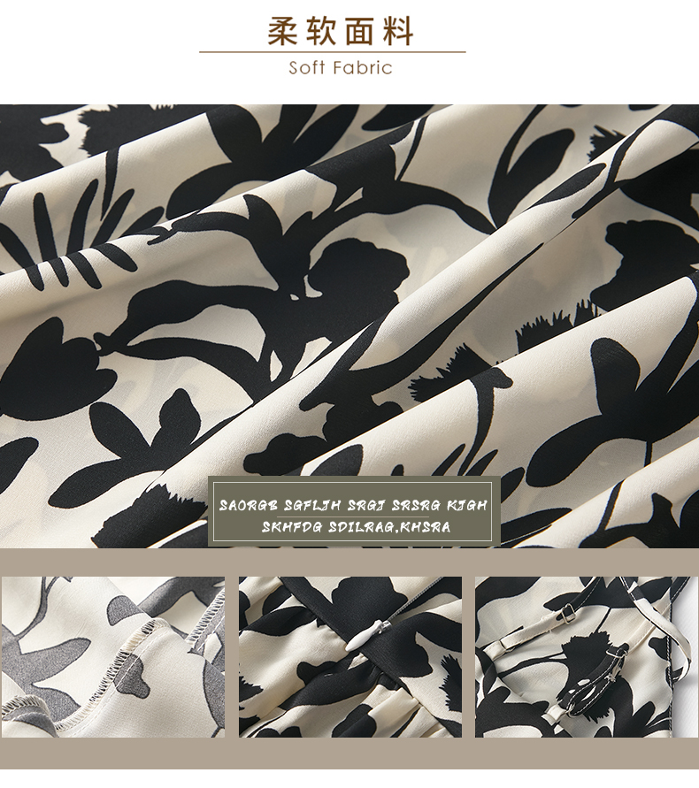 夏季新款,洋气V领吊带中长款雪纺连衣裙成熟风气质宽松裙子女CC-J3439