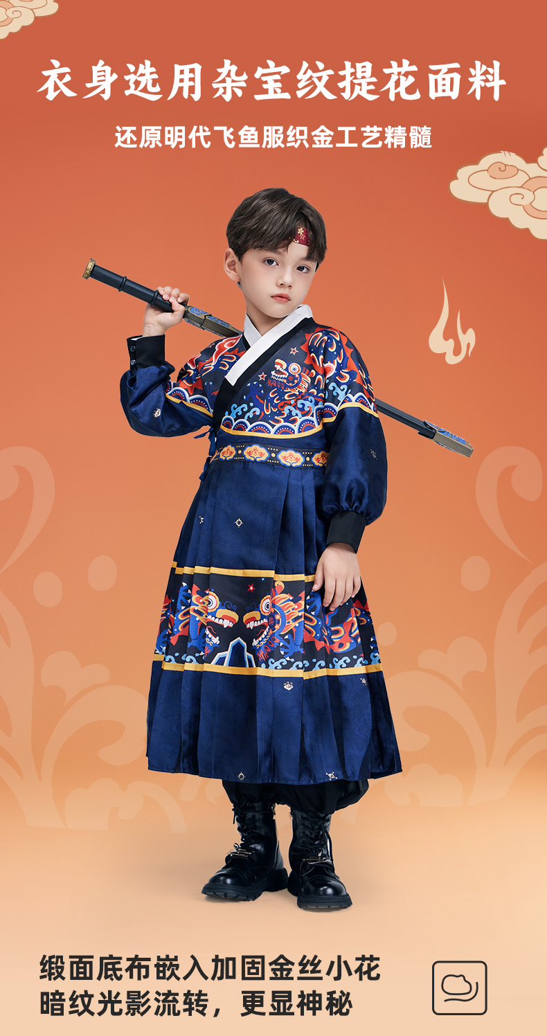 【夜舞鱼龙飞鱼服】年衣童装儿童汉服25秋季新款改良版飞鱼服新中式夜舞鱼龙飞鱼服