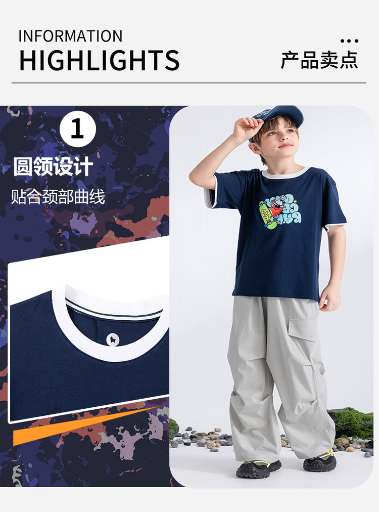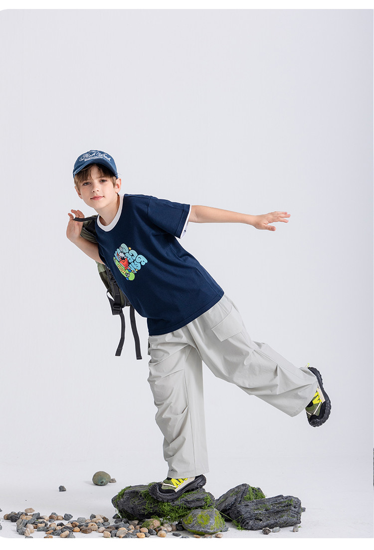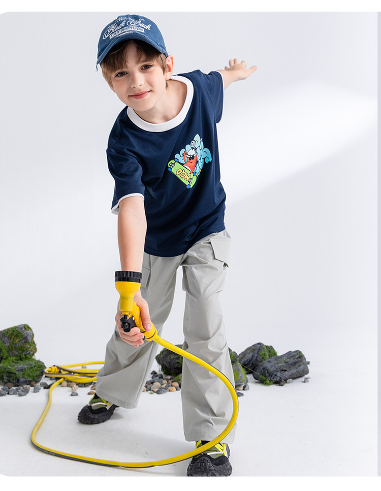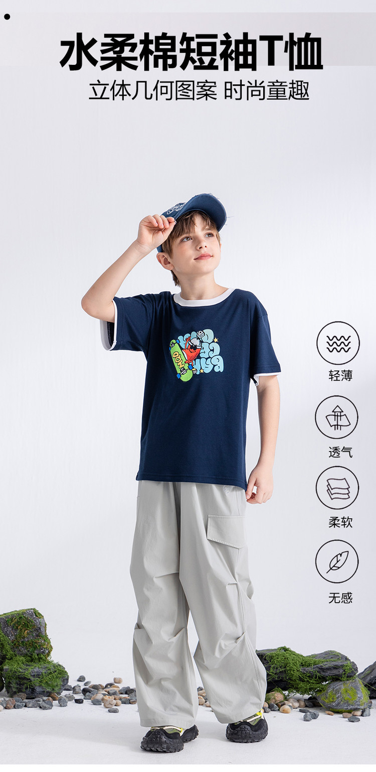 【MQD】童装男大童夏季新品儿童透气柔软棉运动上衣圆领宽松短袖T恤