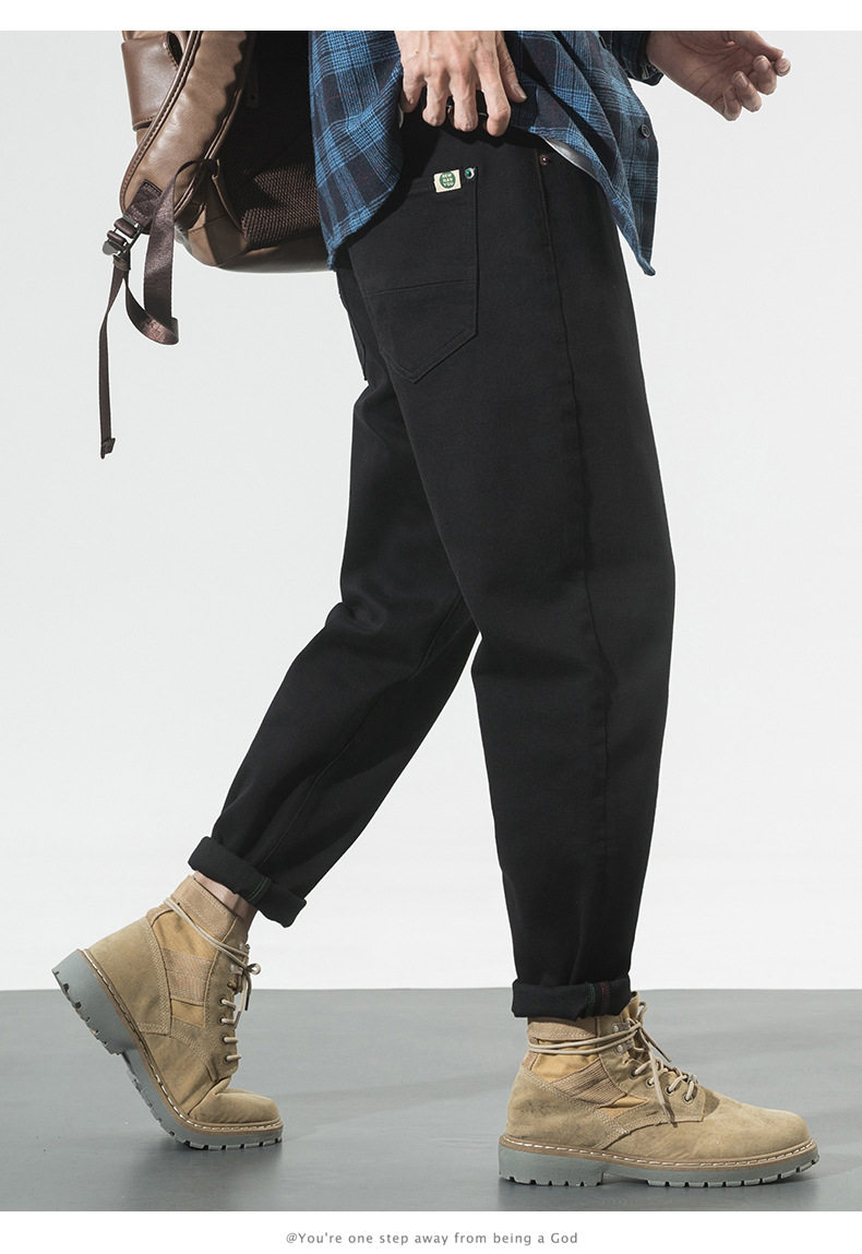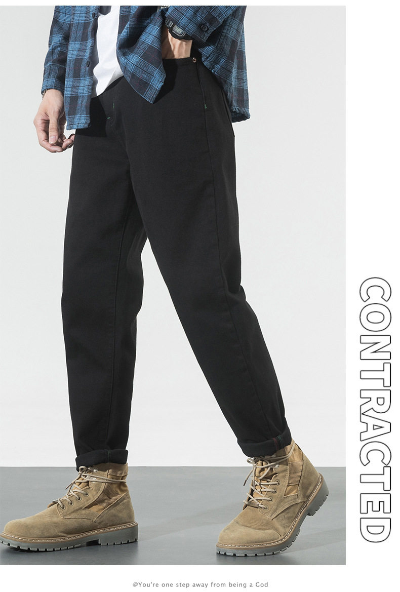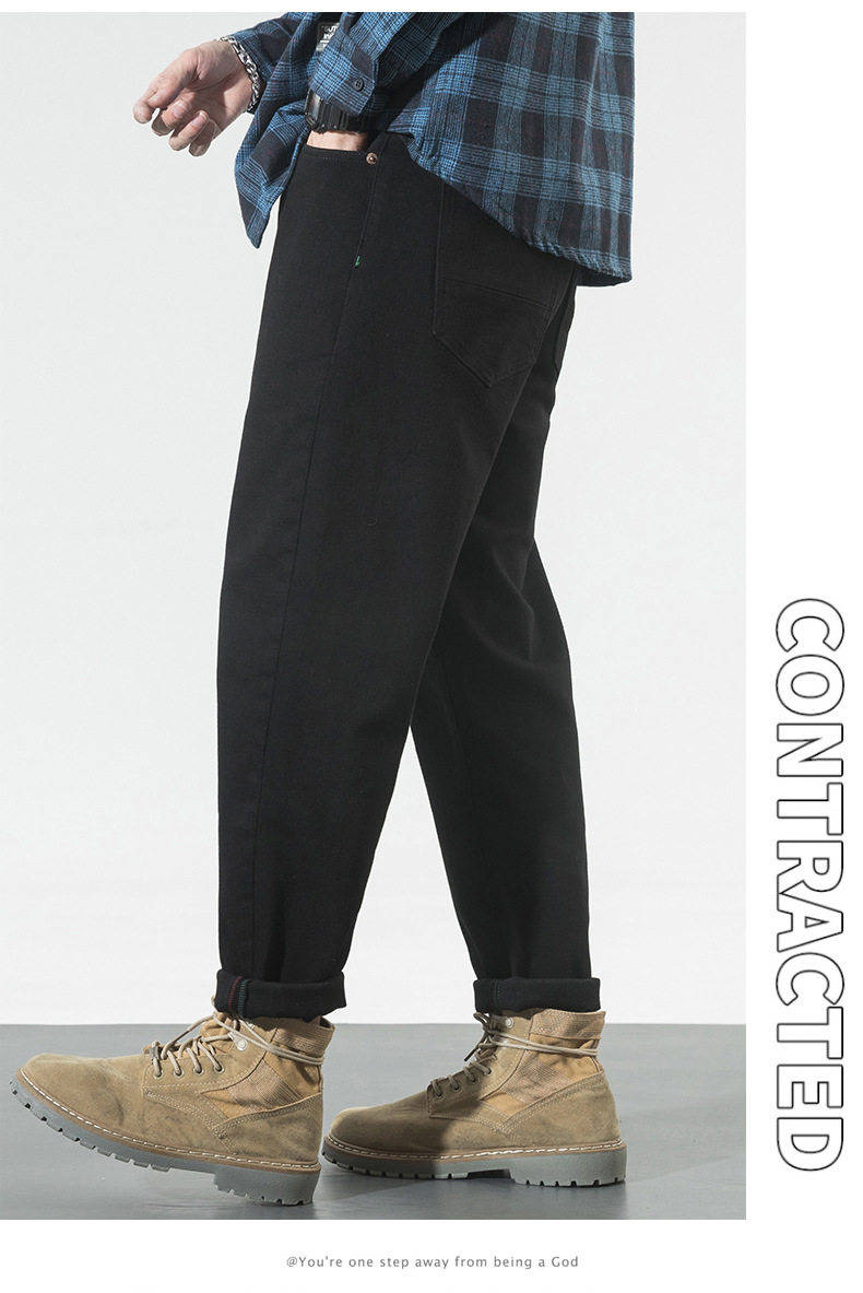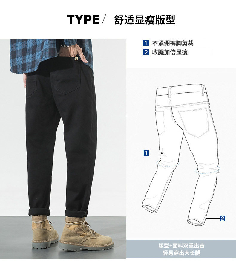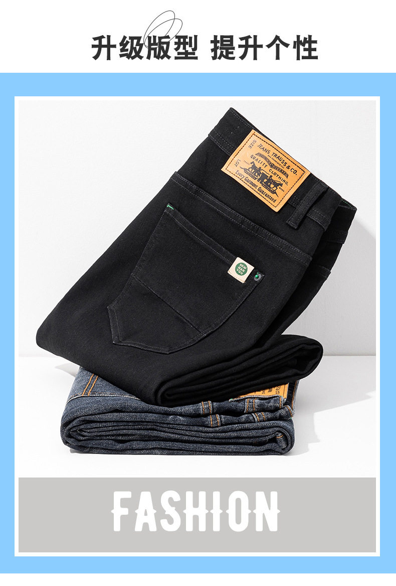【DYG】大依优型大码男装四季款百搭纯色牛仔裤宽松修身棉质长裤小脚裤