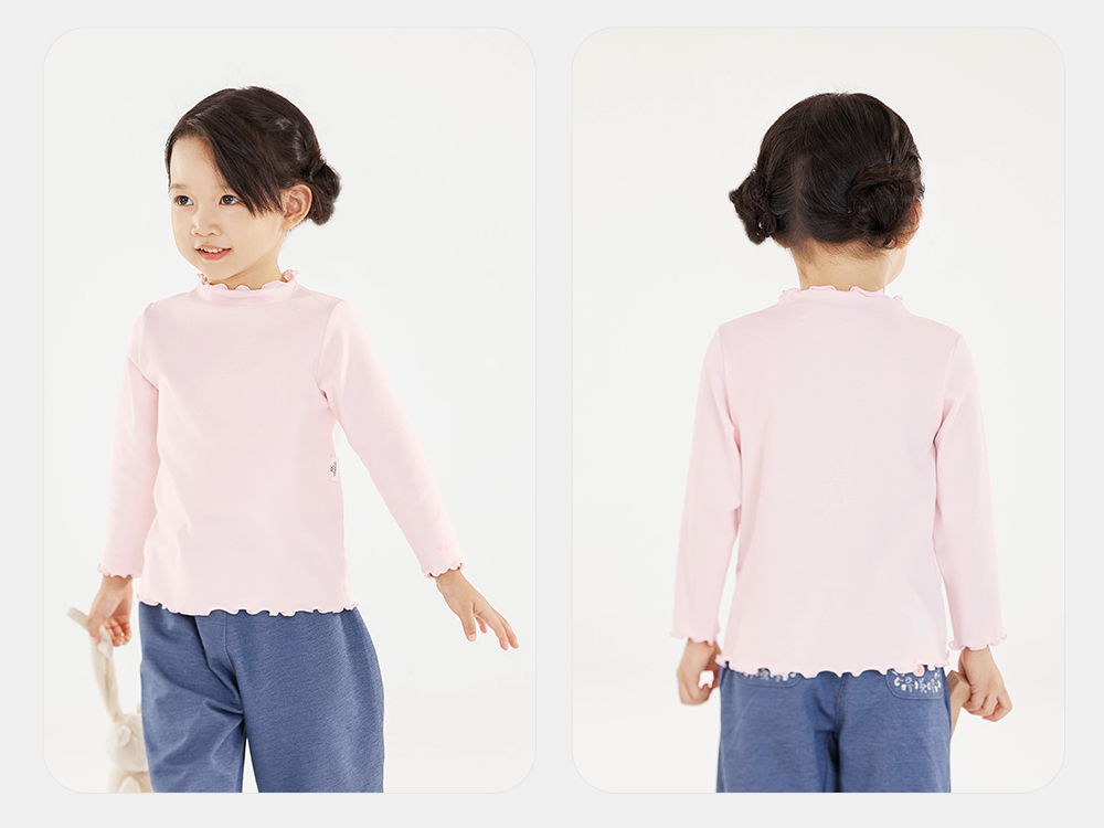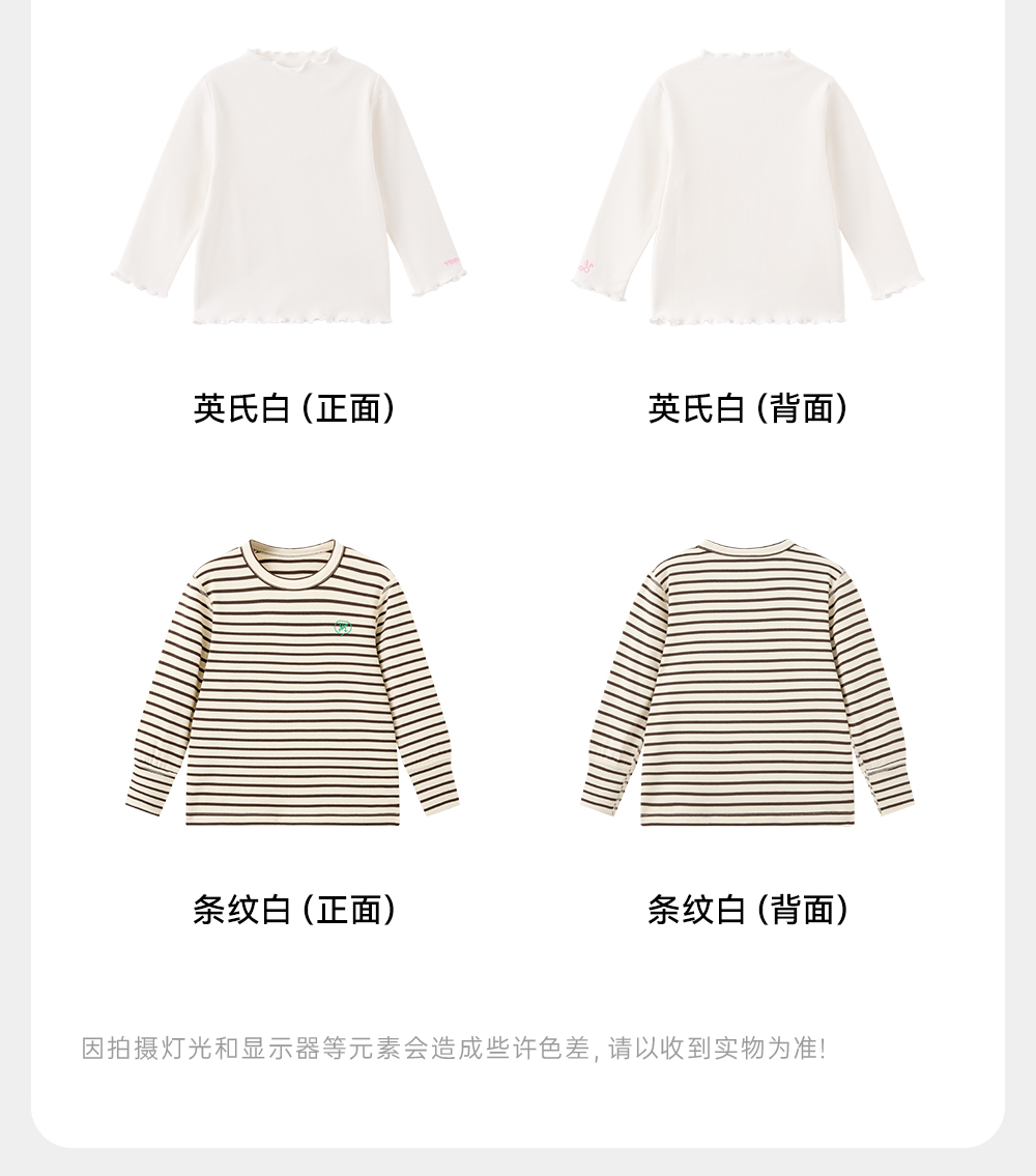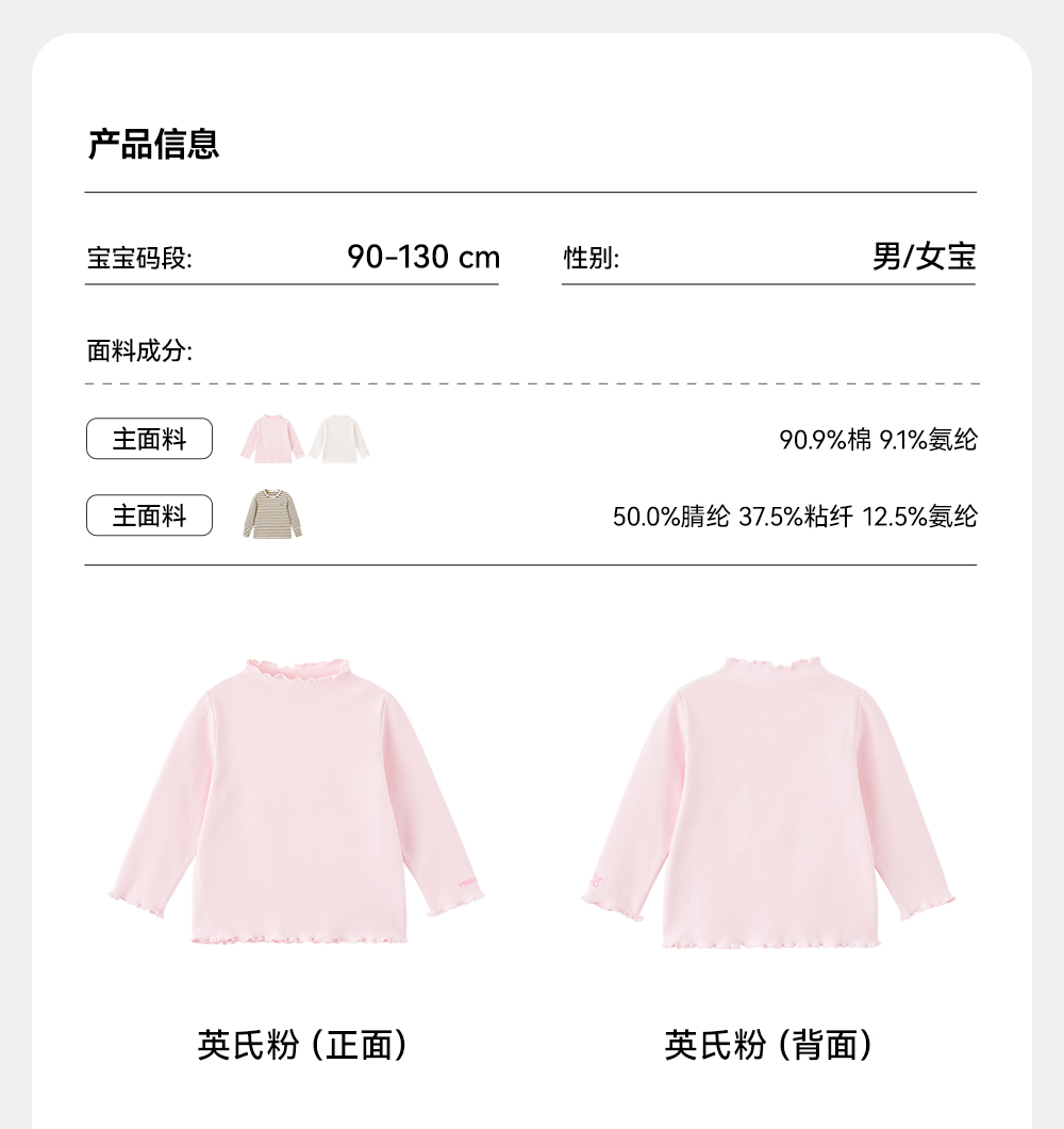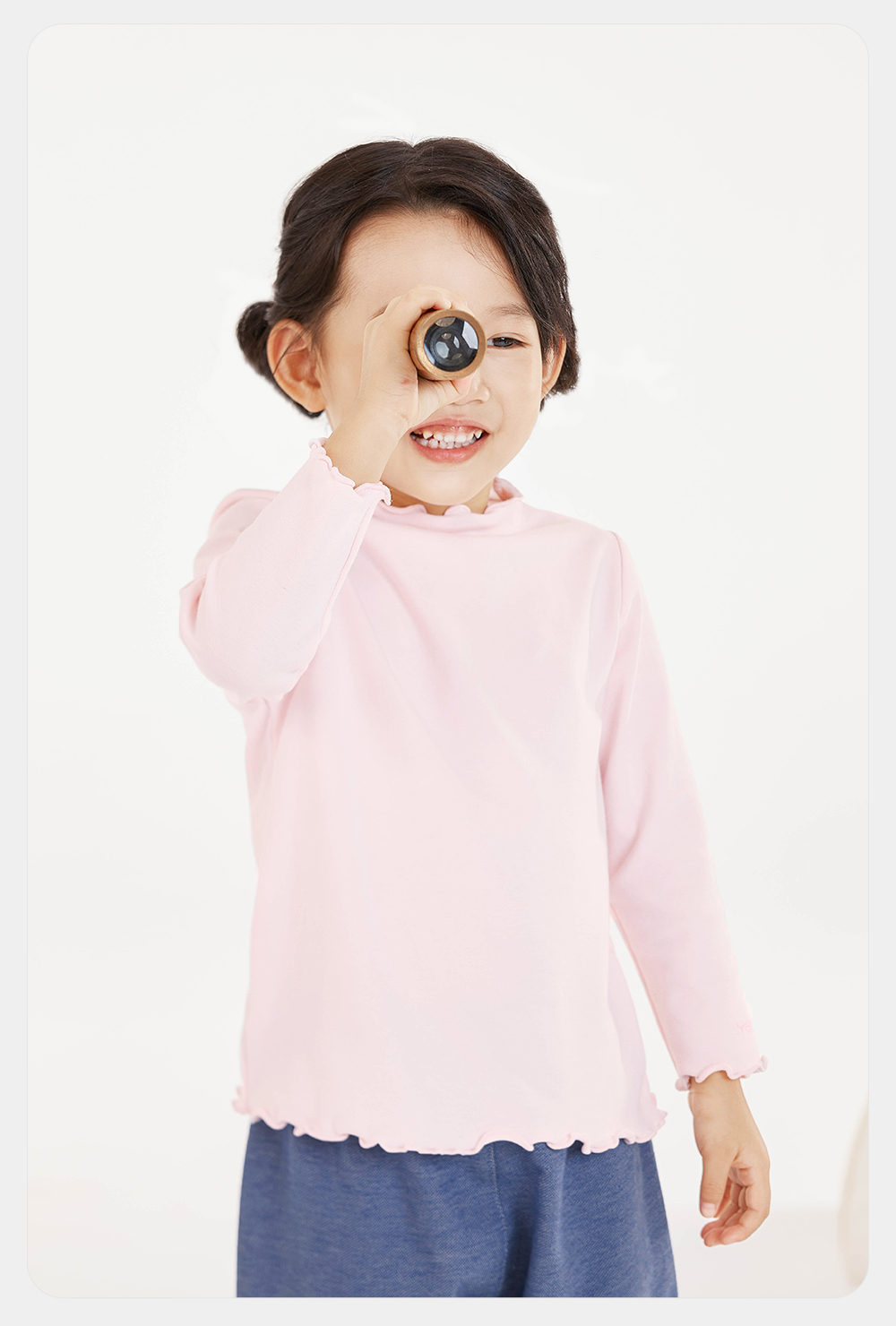 英氏儿童打底衫男女童半高领长袖针织衫纯色秋季打底T恤新款