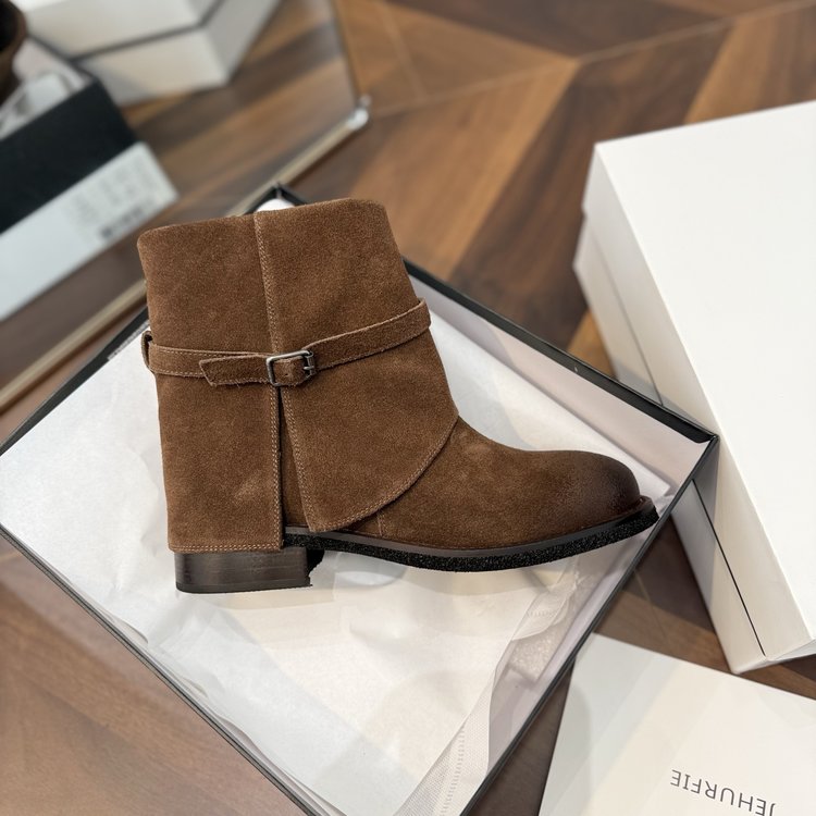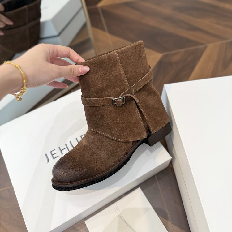 【货号】:AB25531【品牌】:JEHURFIE/纪华菲【产地】:温州【颜色】:咖色、黑色【 材质】:牛绒皮【内里】:肤感内里【脚垫】:牛皮乳胶【鞋底】:橡胶大底【跟高】:3.5CM【筒高】:15CM【筒围】:28CM【重量】:单只净重435g (37码)【款式】:短靴【规格】: 35-40【快递】:极兔 韵达圆通随机【发货地】:温州 【加运费地区】新疆 西藏 +27【不发地区】 港澳台地区暂不发