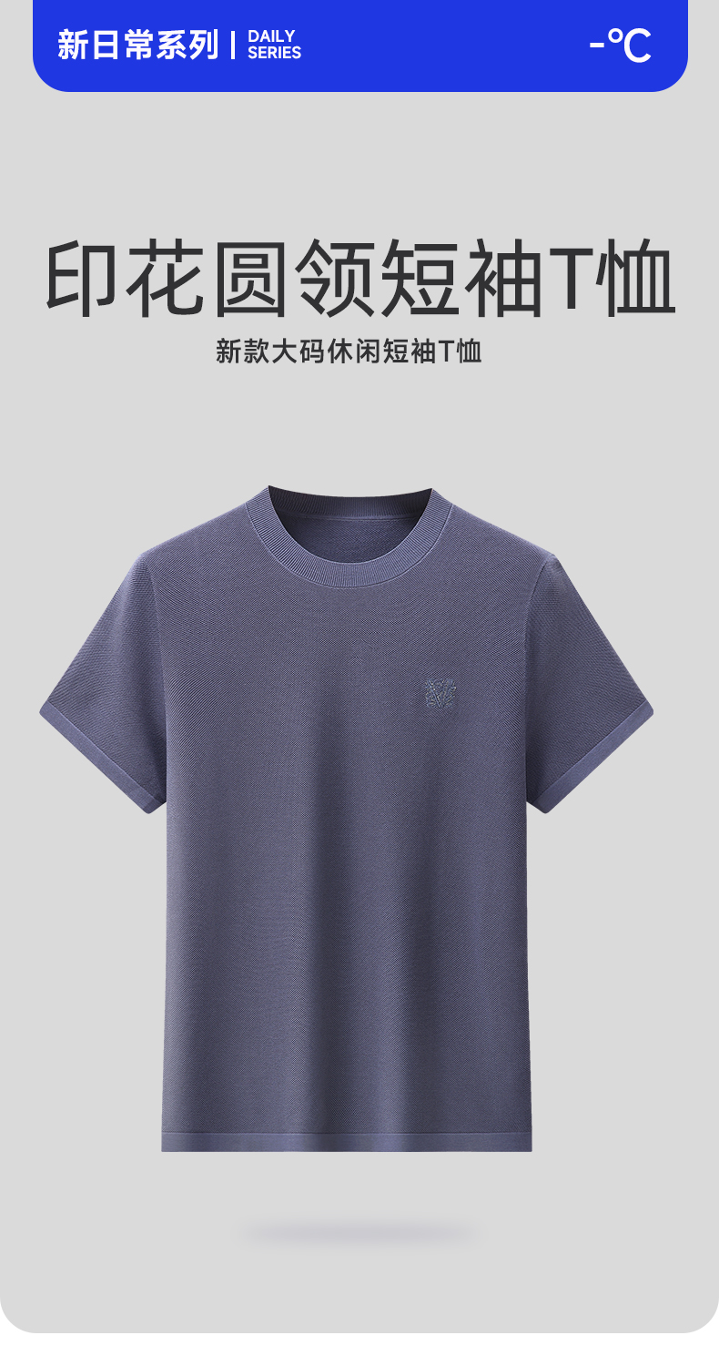 【新款DWP】大依优型大码针织超细纱全棉圆领短袖T恤加肥加大弹力透气宽松休闲男装半袖上衣